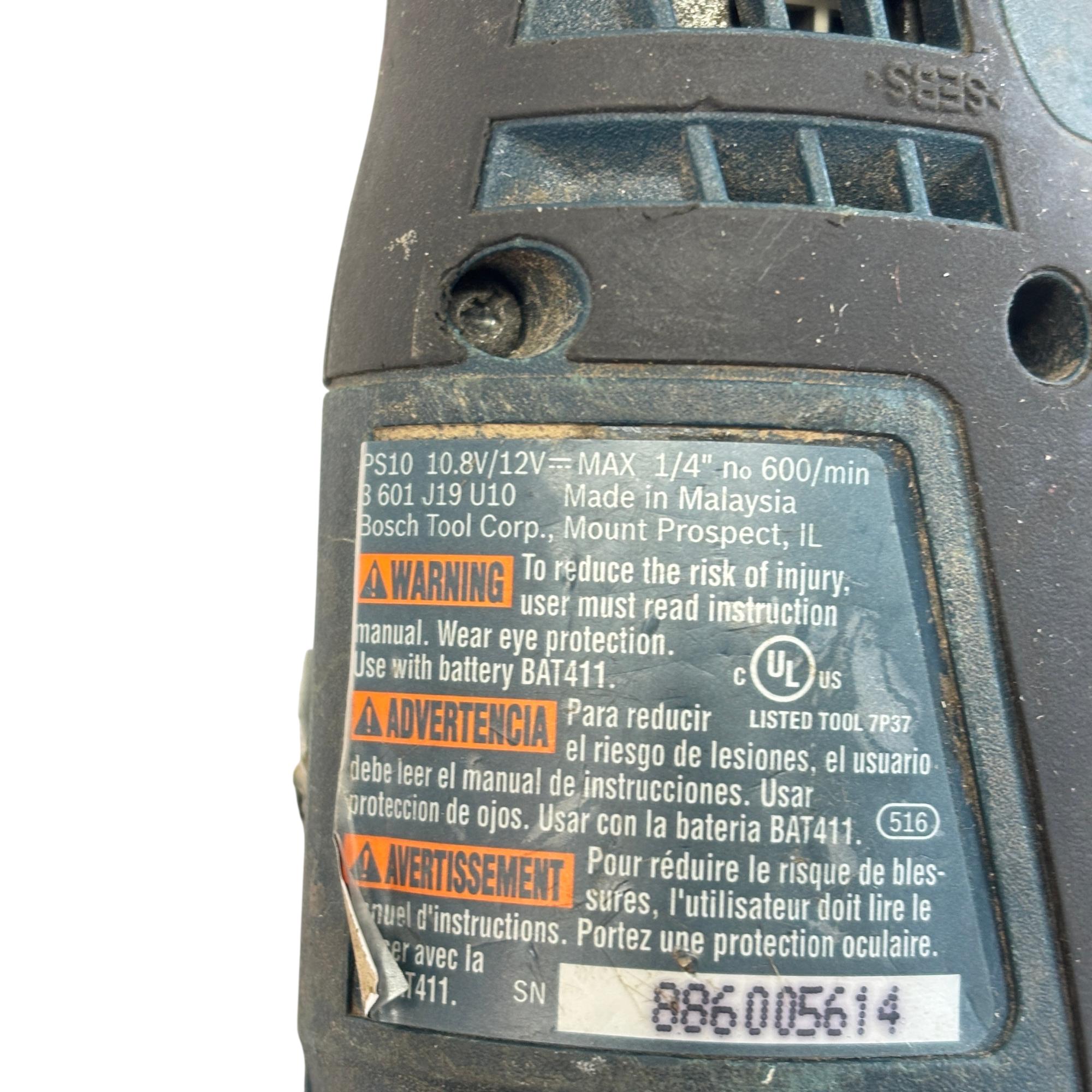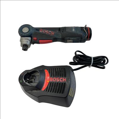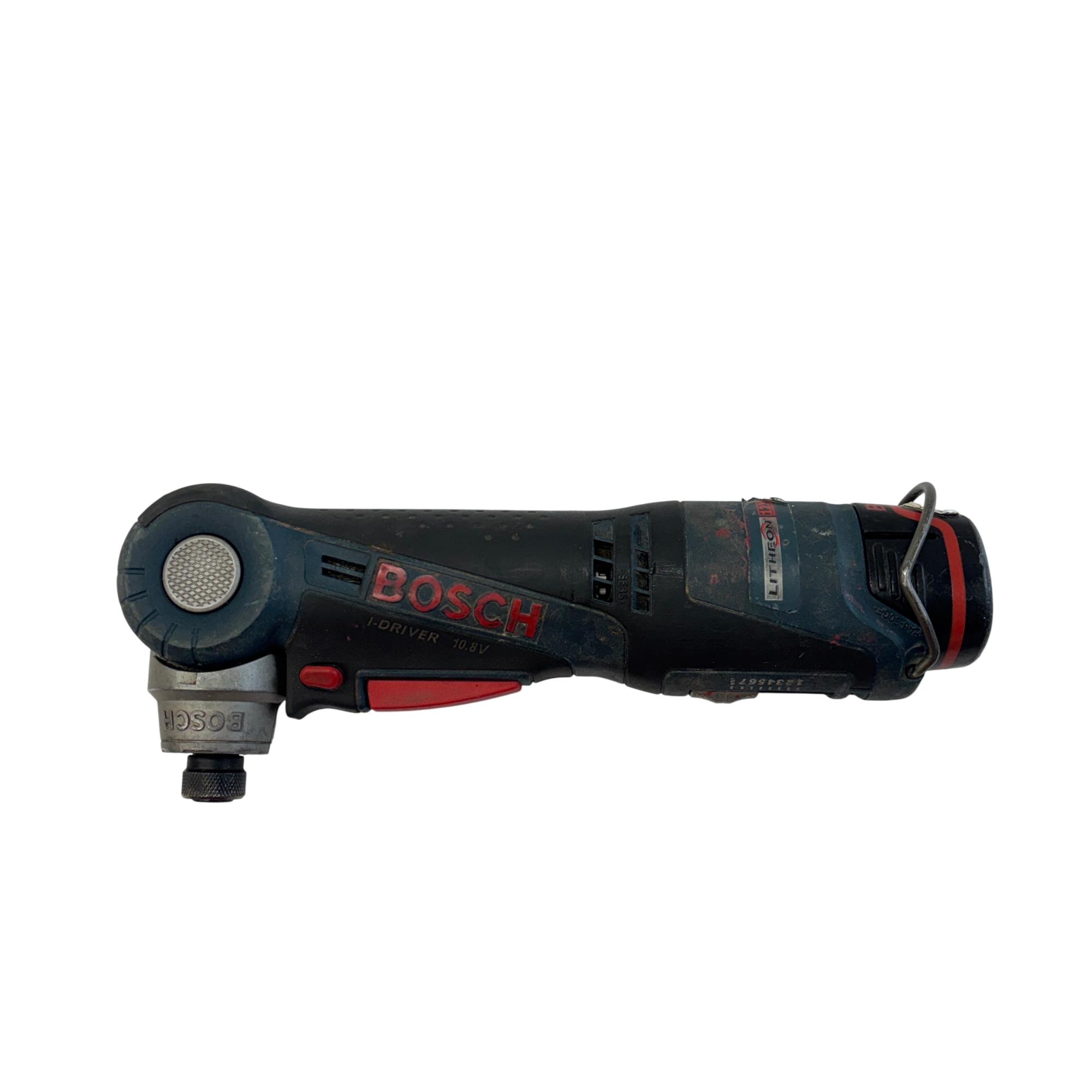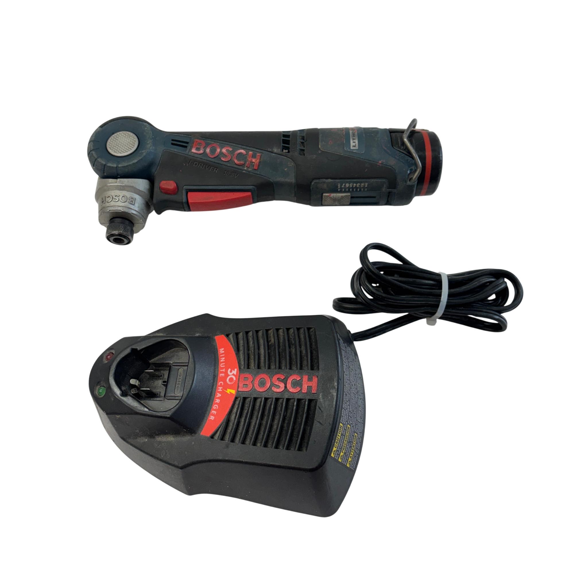 Bosch PS10 10.8V/12V Max I-Driver Right Angle Cordless Drill offers precise control in a compact design, ideal for tight spaces and detailed work. Featuring a versatile 1/4 inch chuck, this power tool delivers reliable performance with its robust motor and ergonomic build, suitable for various drilling and driving applications.