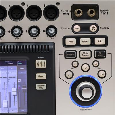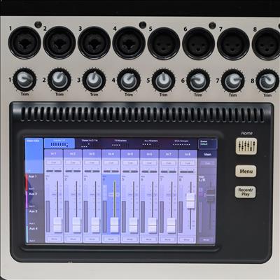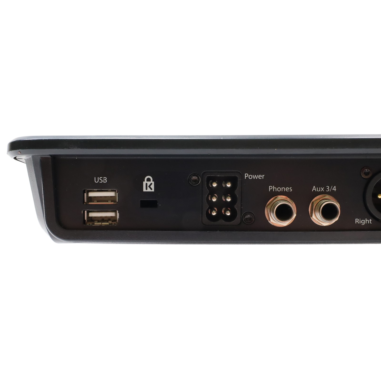 A 14-channel digital sound mixer designed for live sound and recording applications, featuring 8 mic/line inputs, 4 line inputs, and a stereo USB channel, along with 6 outputs for flexible signal routing. It includes class-A microphone preamps, Anti-Feedback and Room Tuning Wizards, a real-time analyzer (RTA), and the ability to record all 14 channels directly to an external storage device. The compact, portable design incorporates a touchscreen interface and tools like Wizards and Presets to simplify setup for both experienced engineers and beginners, offering professional-grade functionality in a travel-friendly form factor.