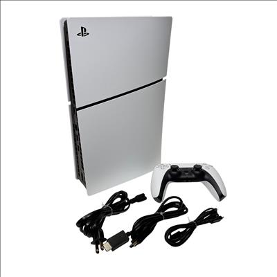 Sony PlayStation 5 Slim CFI-2015 Disc Edition 1TB Console with DualSense Controller delivers next-generation gaming with a sleek, compact design. Featuring a 1TB PCIe SSD for fast load times, this console supports 4K resolution and HDR for stunning visuals and immersive gameplay. Equipped with multiple connectivity options including HDMI and LAN, it offers enhanced performance in a stylish form factor optimized for modern entertainment setups.
