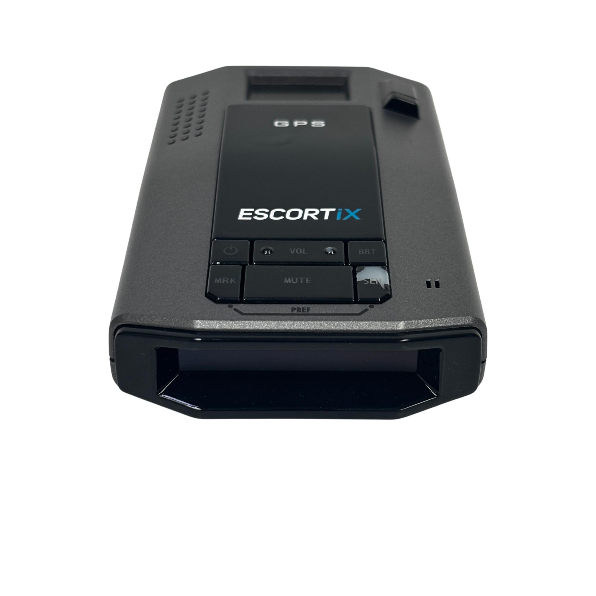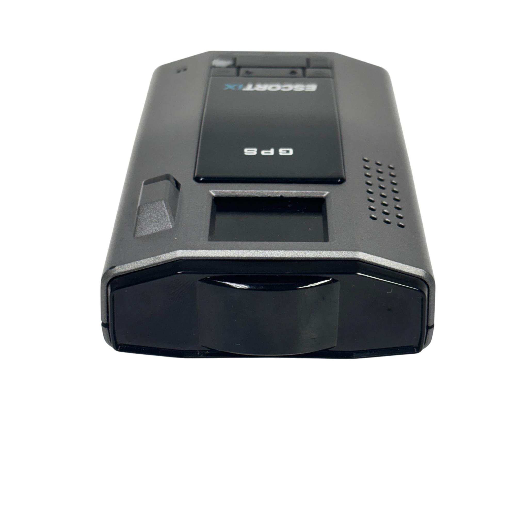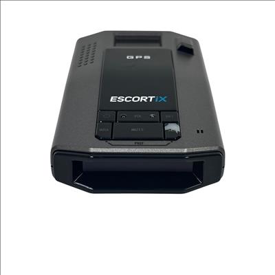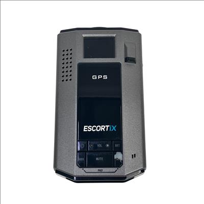 This Escort iX Radar and Laser Detector with GPS offers advanced detection capabilities with a clear black design featuring an intuitive keypad and multiple function buttons for volume, mute, and preset controls. This compact electronic device integrates GPS technology to enhance radar and laser signal identification, ensuring reliable performance and real-time updates for improved driving safety.