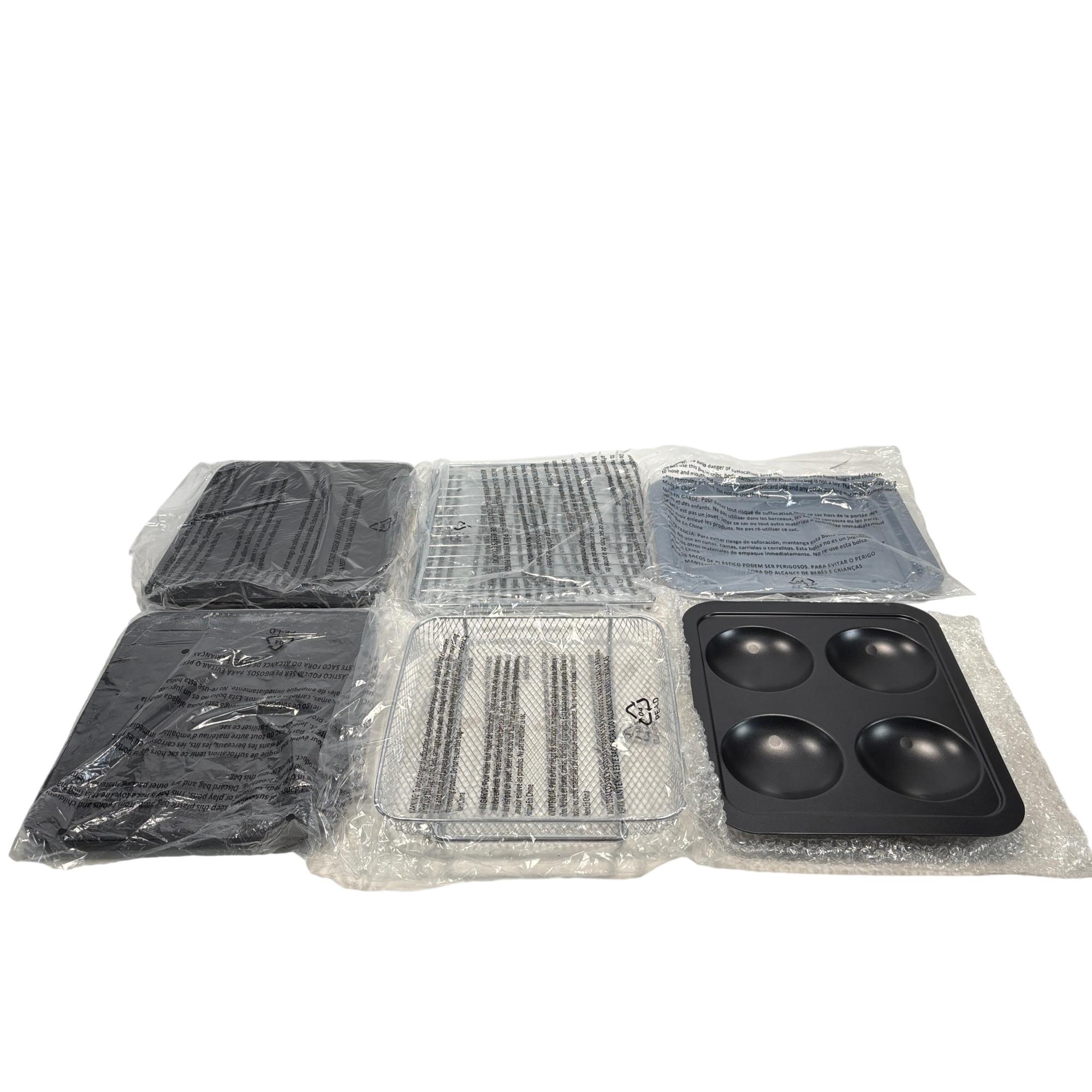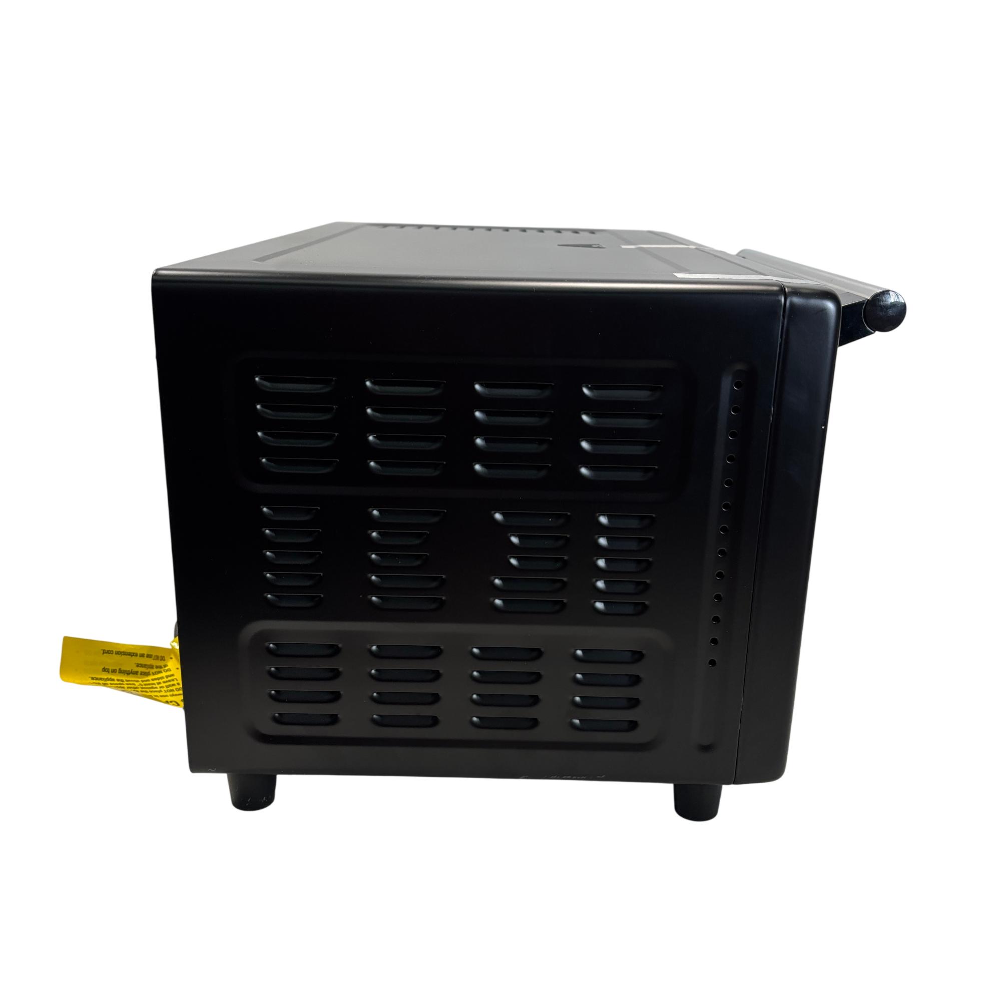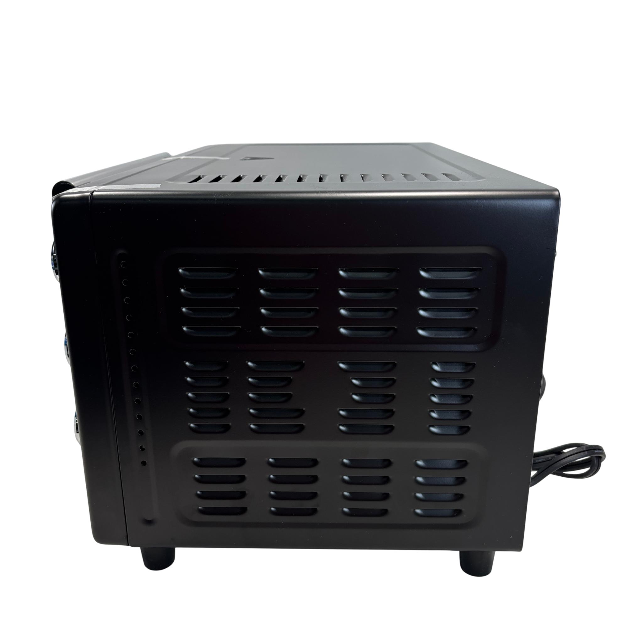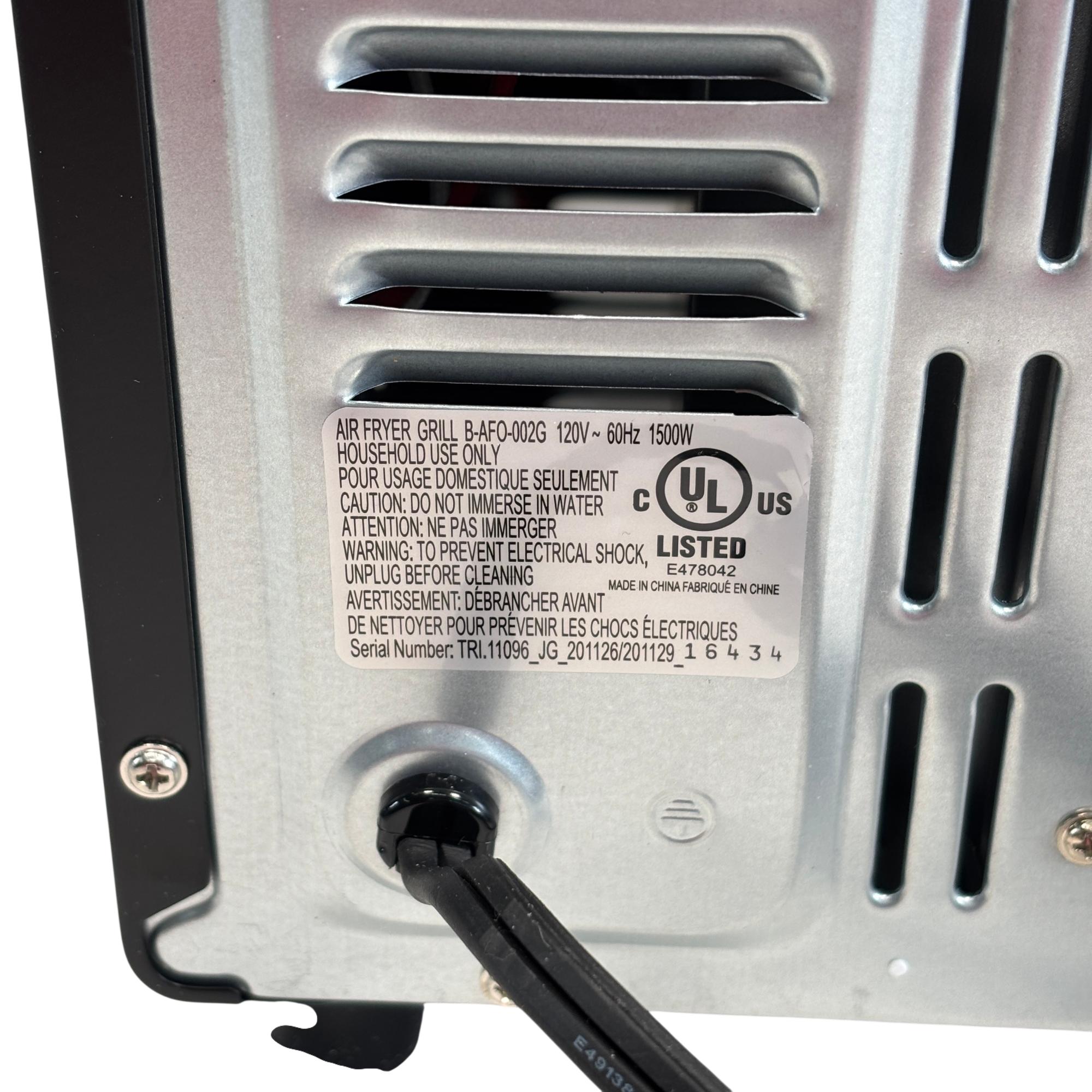 The PowerXL Air Fryer Toaster Oven Grill B-AFO-002G is a versatile kitchen appliance designed for roasting, baking, and grilling with convection technology. Featuring a sleek black design with multiple vented surfaces for optimal heat circulation, it combines the functionality of an air fryer and toaster oven into one compact machine. This appliance enhances cooking efficiency for a variety of meals while maintaining a modern and practical aesthetic.