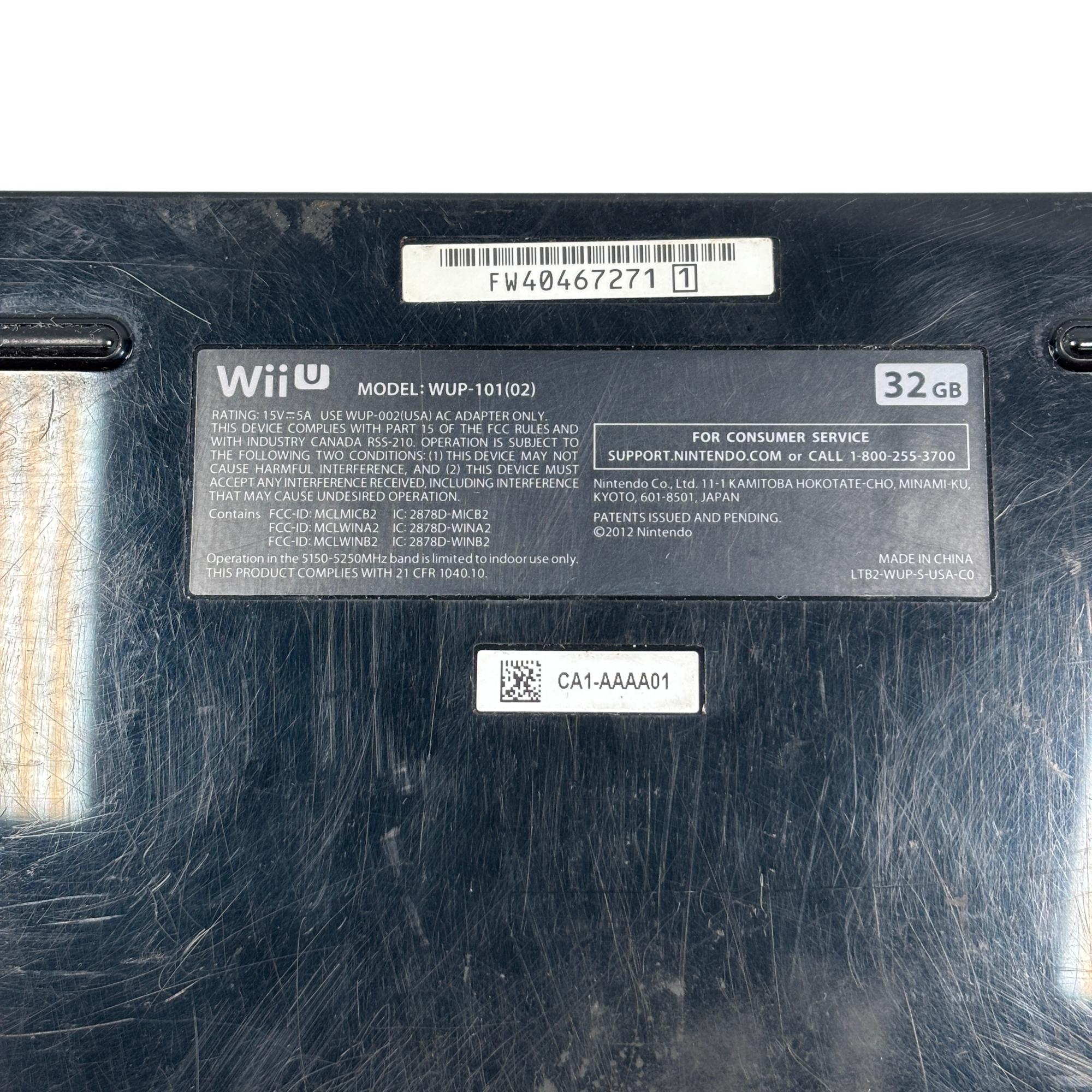 The Nintendo Wii U WUP-101(02) offers a sleek design featuring a black rectangular body with multiple ports for connectivity. This gaming console provides 32GB of storage and is recognized for its innovative gameplay experience and support for a wide range of Wii U titles.