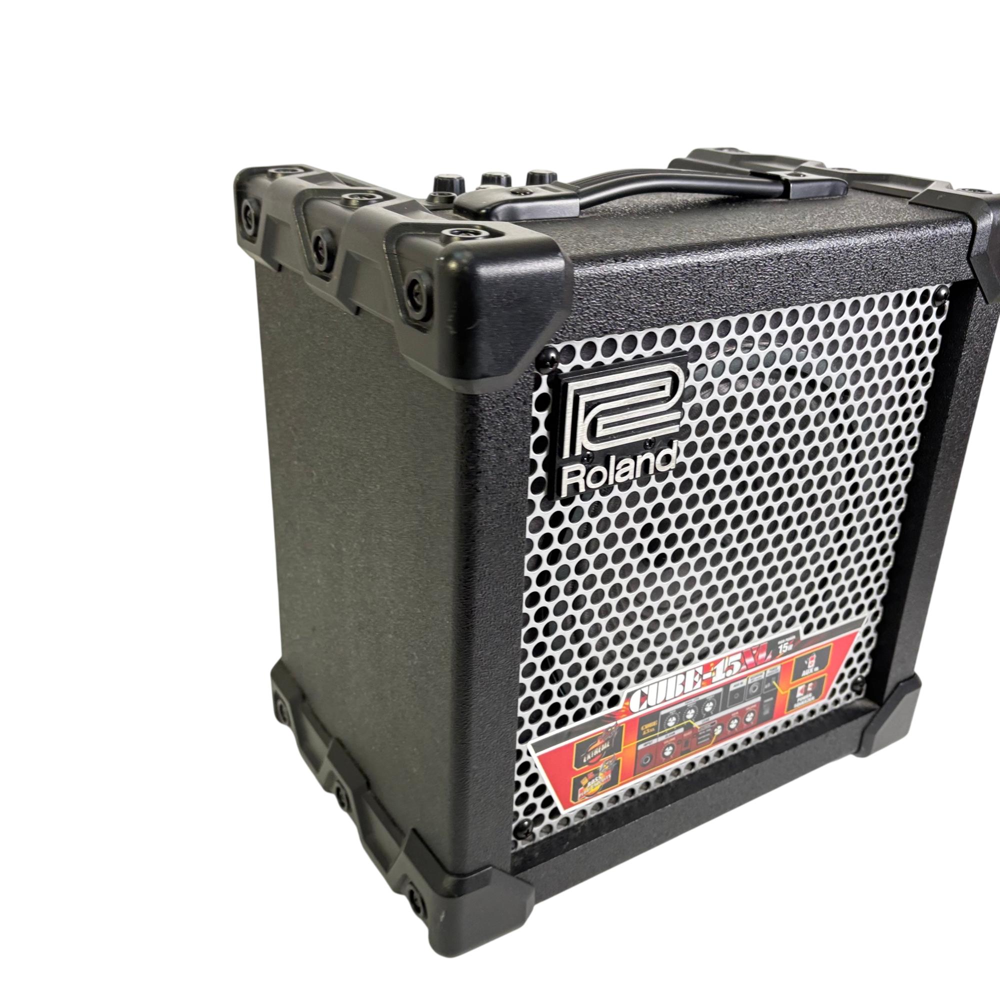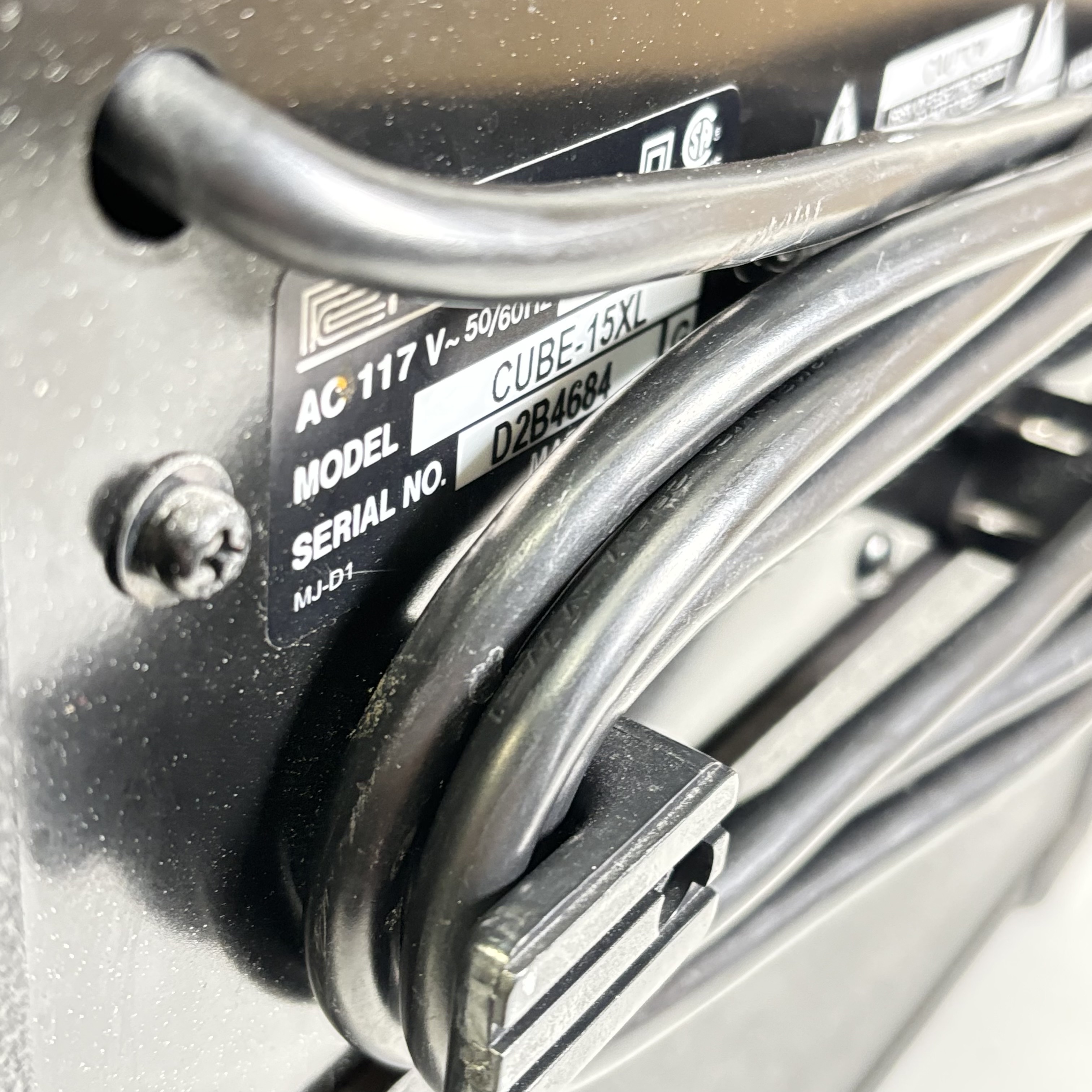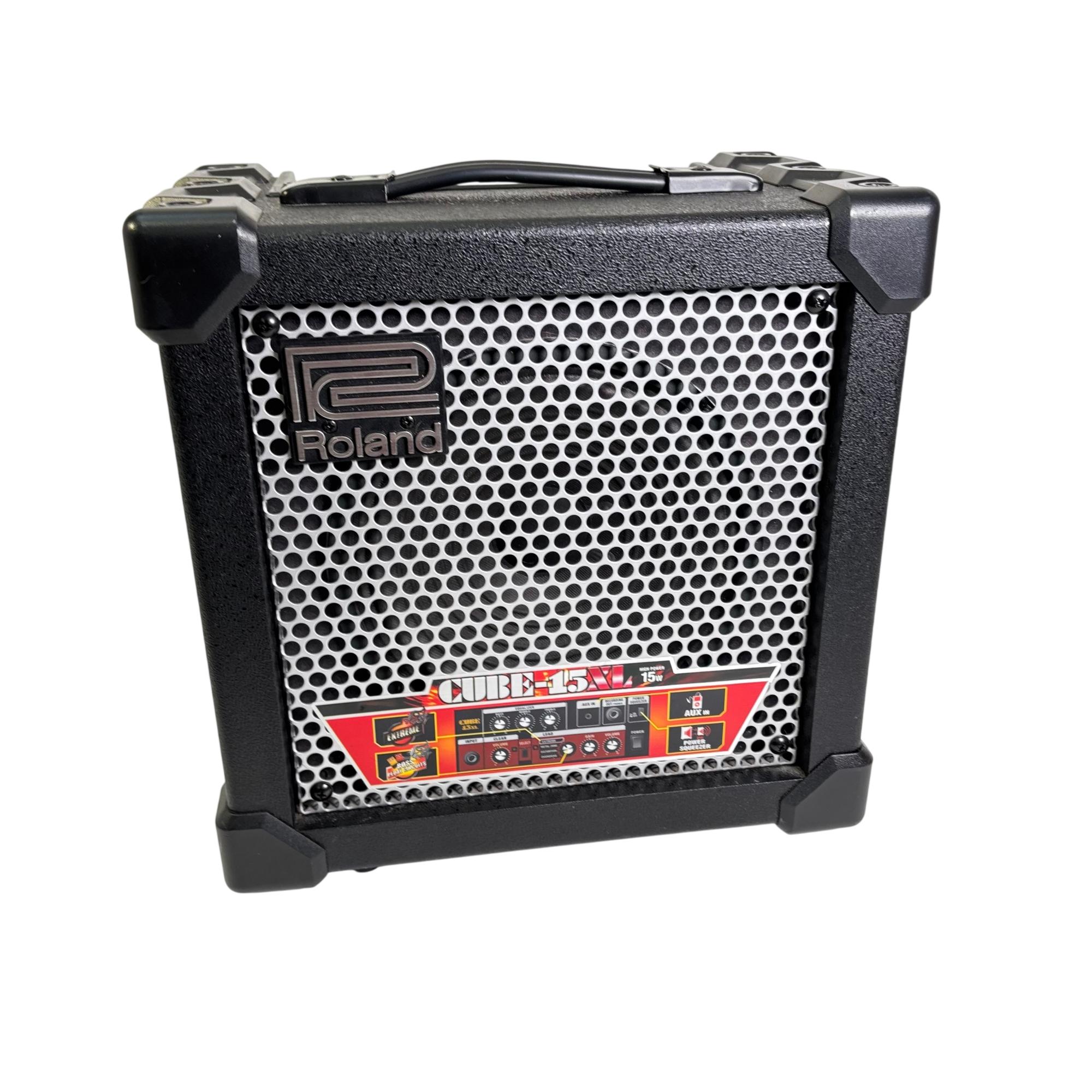 Roland CUBE-15XL 15-Watt 1x8 Guitar Combo Amplifier delivers powerful solid-state amplification with versatile tone-shaping controls including gain, equalizer, and distortion settings. This compact amplifier features a durable design with a black and silver finish, ideal for guitarists seeking rich sound and portability in a practice amp or small performance setting.
