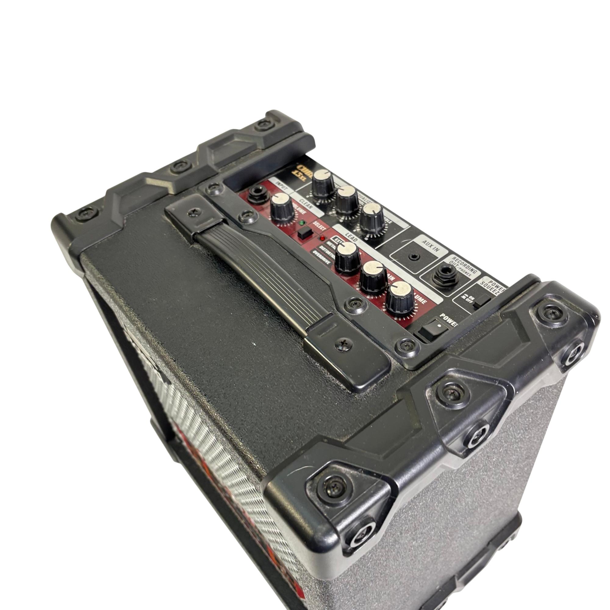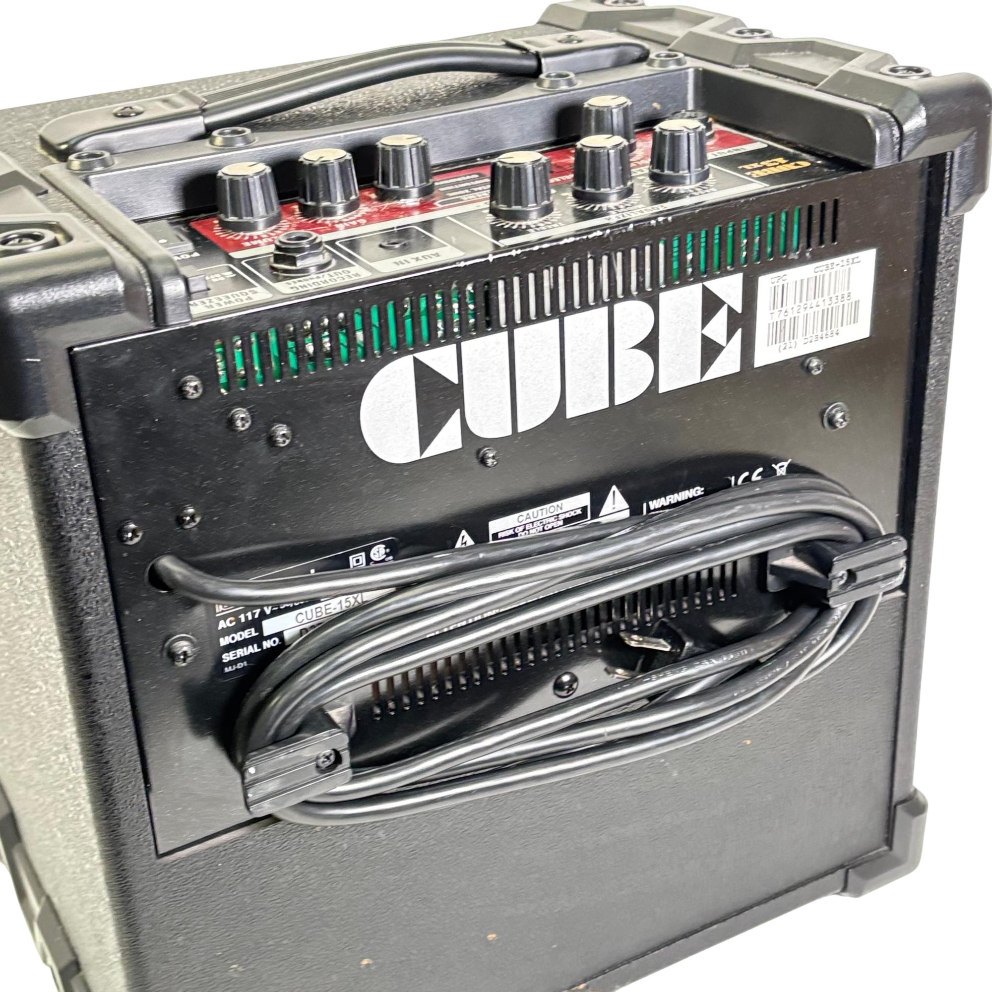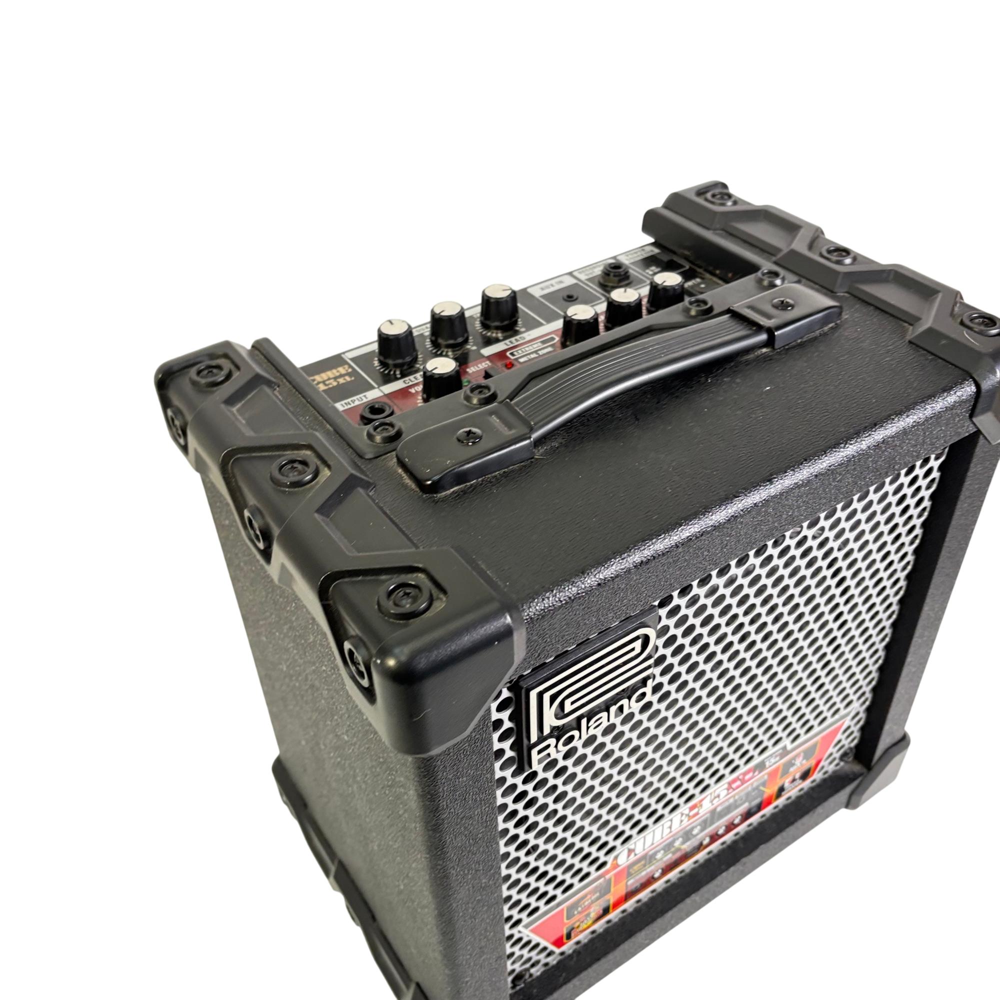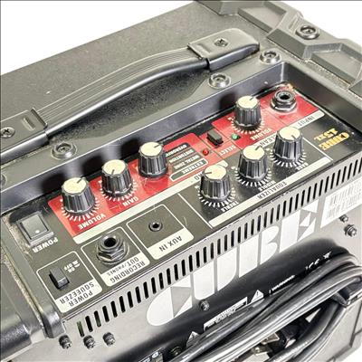 Roland CUBE-15XL 15-Watt 1x8 Guitar Combo Amplifier delivers powerful solid-state amplification with versatile tone-shaping controls including gain, equalizer, and distortion settings. This compact amplifier features a durable design with a black and silver finish, ideal for guitarists seeking rich sound and portability in a practice amp or small performance setting.