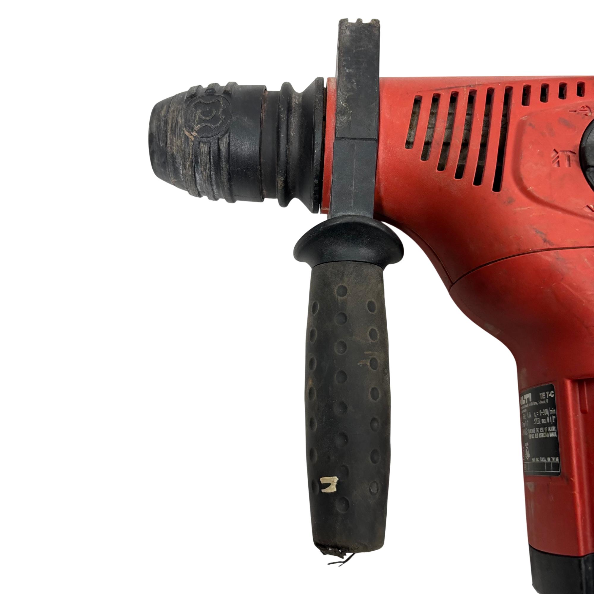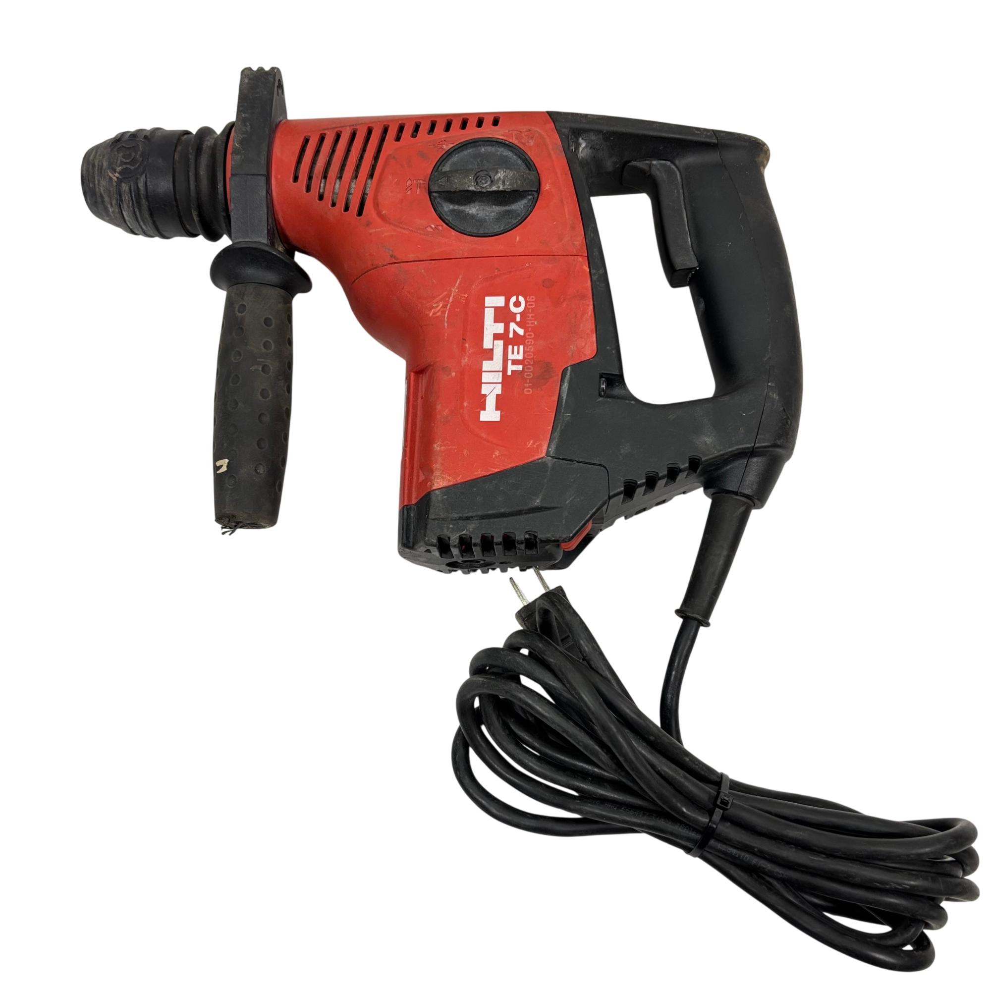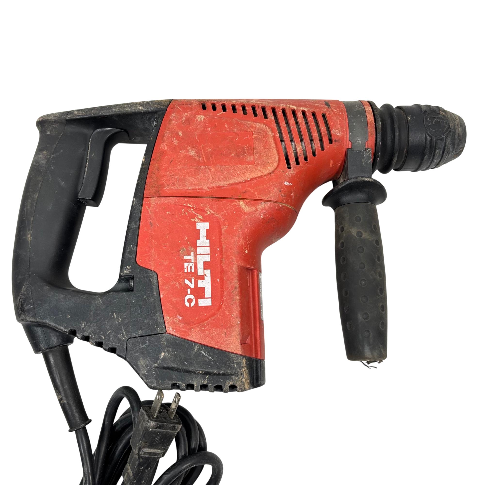 The Hilti TE 7-C Corded Rotary Hammer Drill is a powerful and durable tool designed for heavy-duty drilling and chiseling in concrete and masonry. Featuring an ergonomic design and a robust motor, it delivers high impact energy with precise control for demanding construction tasks. This rotary hammer drill is ideal for professionals seeking reliable performance and efficiency on job sites.
