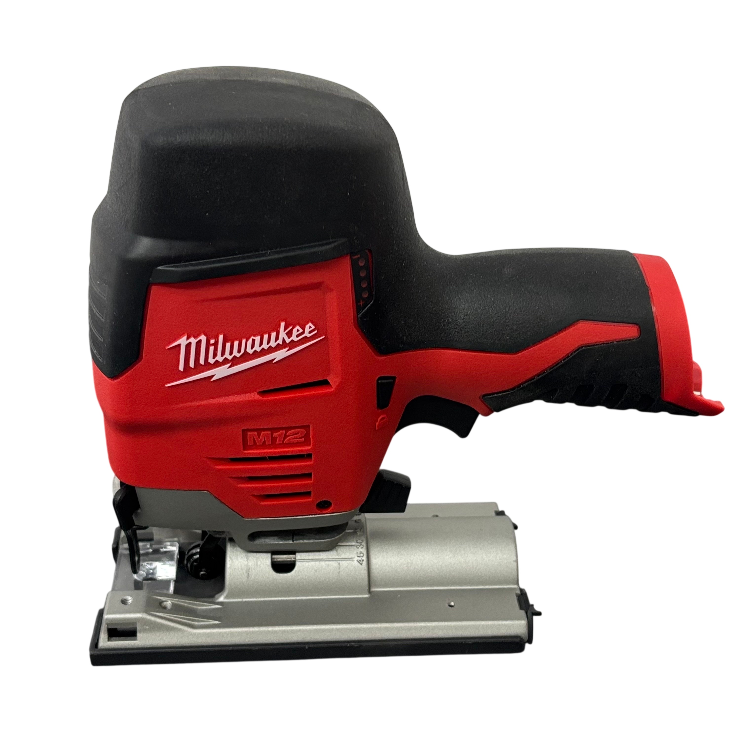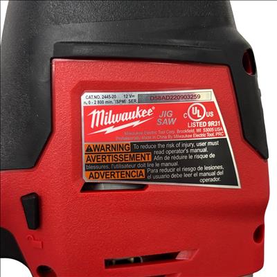 Milwaukee 2445-20 Jigsaw features a compact design and is powered by a 12V lithium-ion battery, making it ideal for precise cuts in tight spaces. This cordless jigsaw includes a battery and charger, ensuring you have everything needed for immediate use. The tool-free blade change and variable speed control enhance its versatility, making it perfect for both professional and DIY projects.