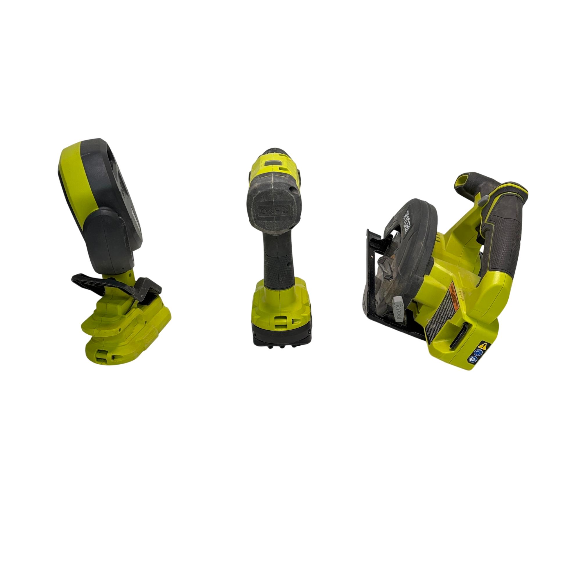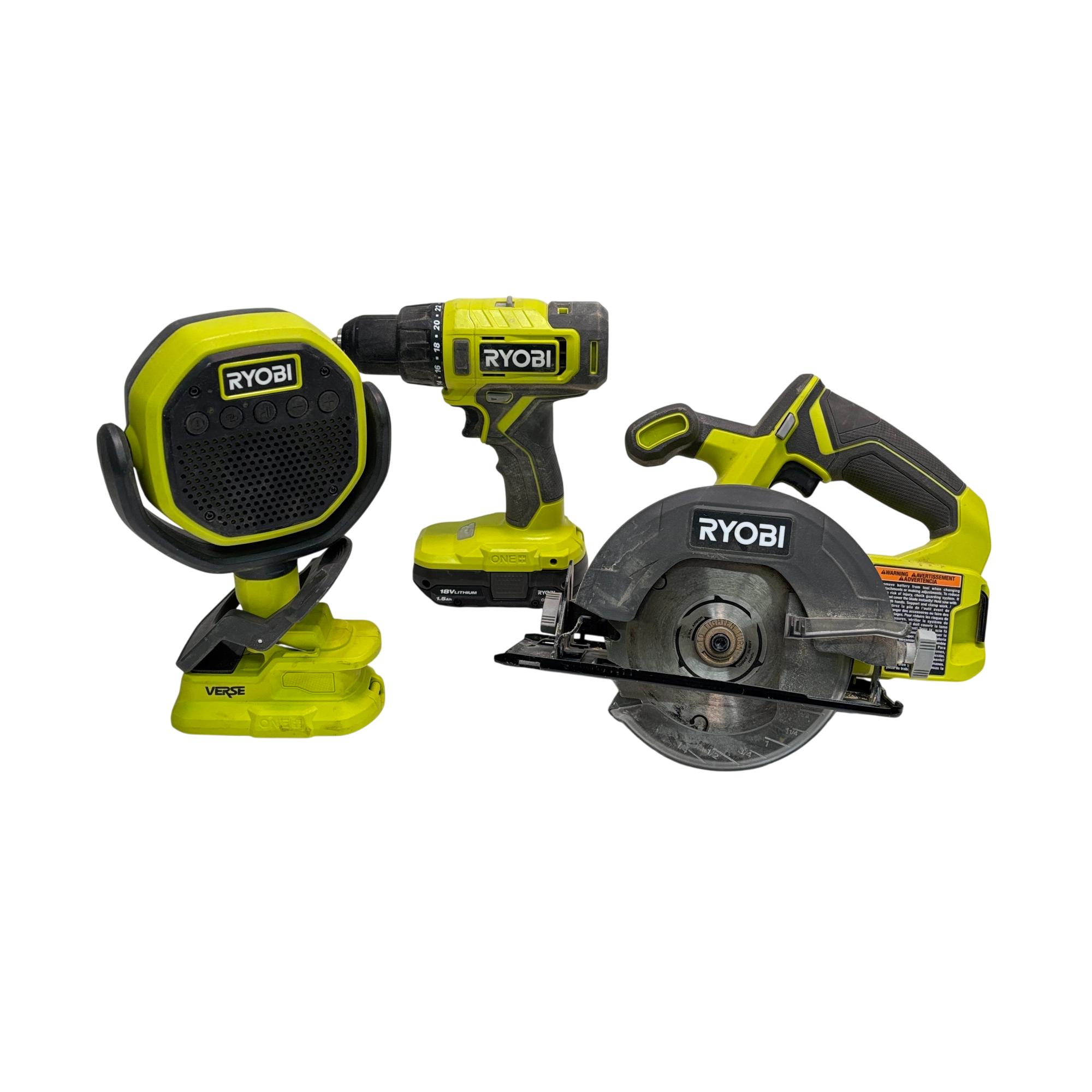 Ryobi ONE+ 18V Cordless Power Tool Combo Set delivers versatile performance with an 18-volt drill, a circular saw, and a wireless Verse clamp speaker. Each tool is designed with ergonomic features and powerful lithium-ion battery compatibility for efficient cordless operation. Ideal for both professional tasks and DIY projects, this set combines reliable cutting, drilling, and audio capabilities in a compact, portable design optimized for convenience.