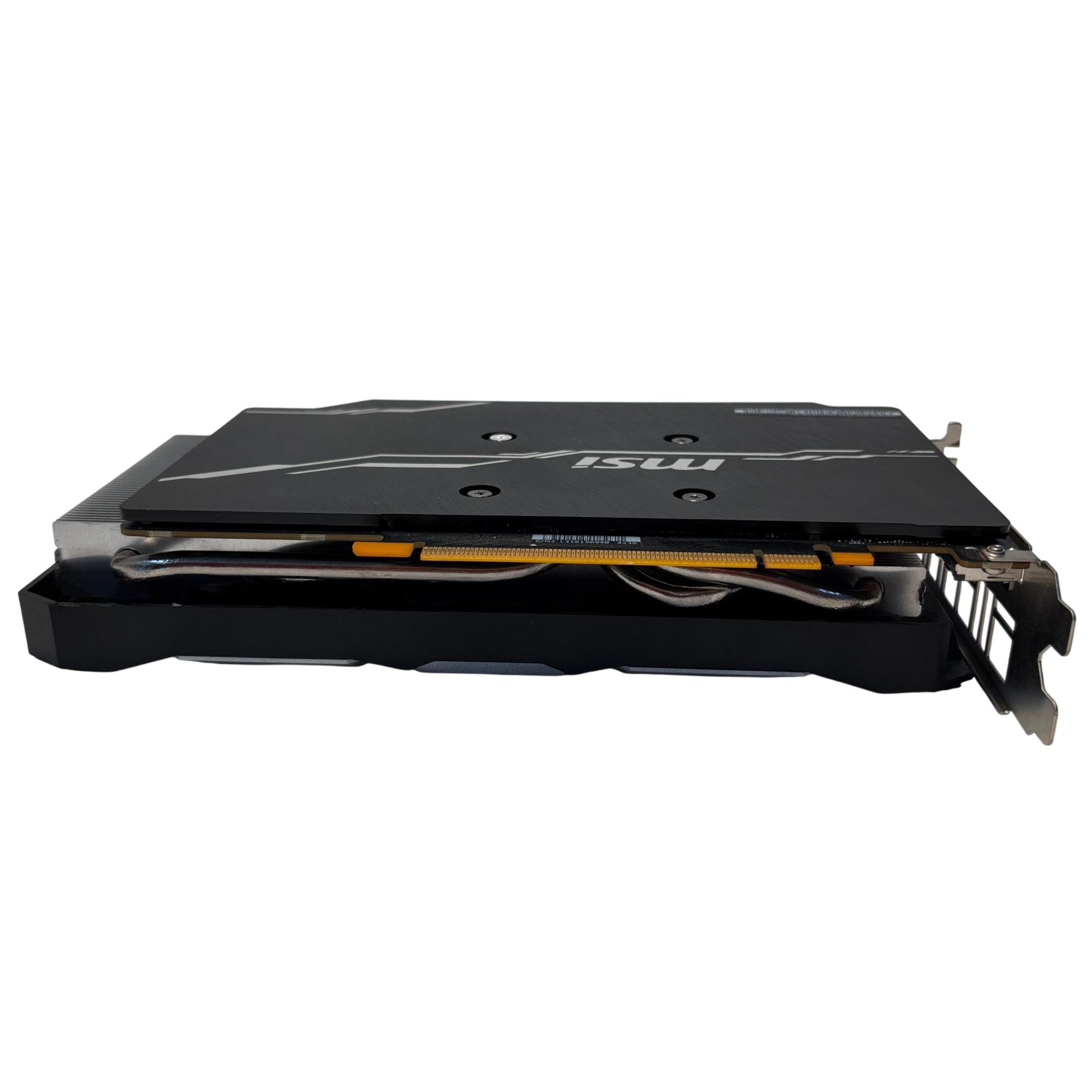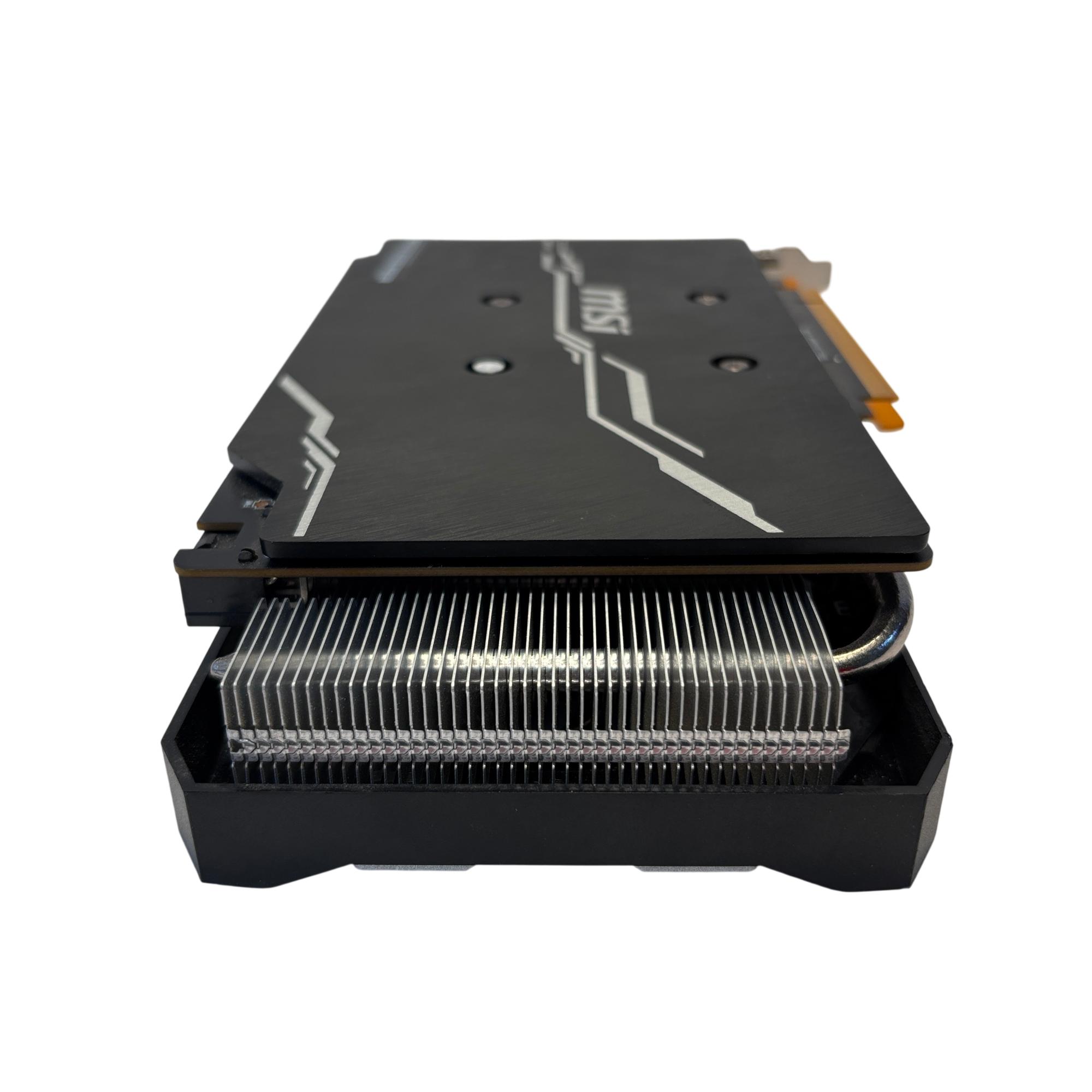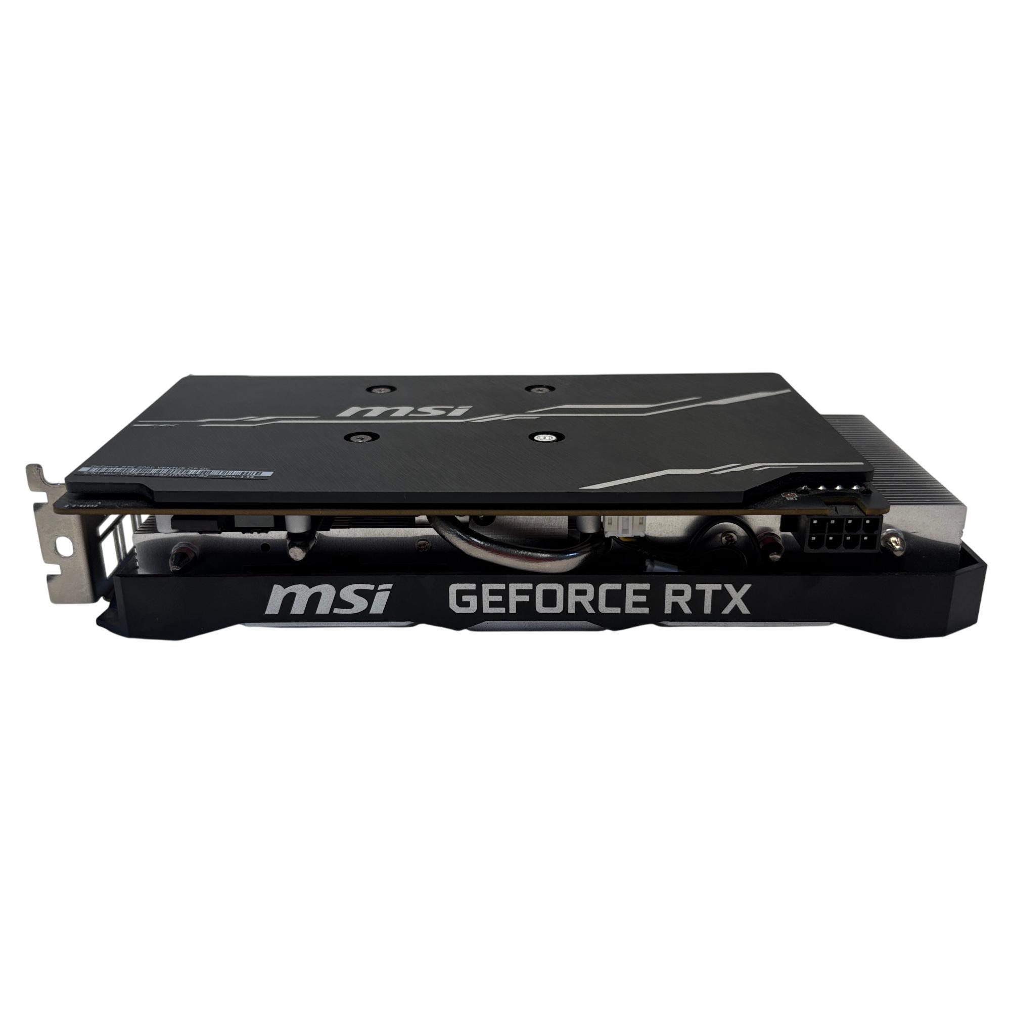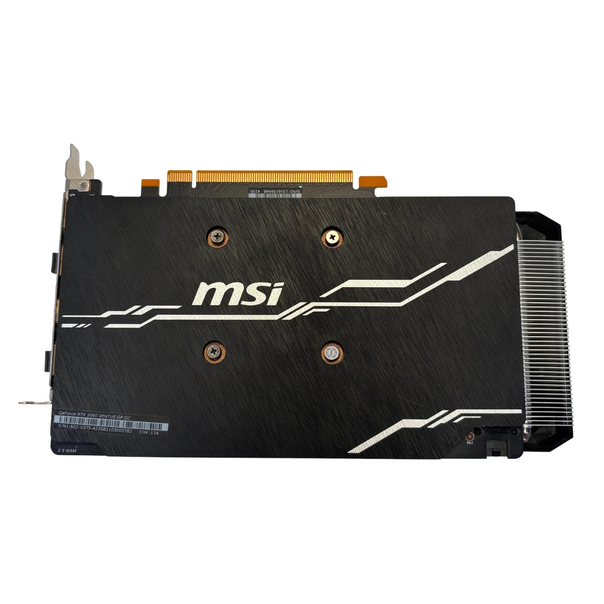 The MSI GeForce RTX 2060 SUPER VENTUS GP OC Graphics Card delivers powerful performance with advanced cooling featuring a metal radiator design. It is equipped with 8GB of GDDR6 memory, optimized for high-speed gaming and demanding graphic applications. This black rectangular card combines efficient heat dissipation and a sleek design to support immersive, high-resolution gameplay.