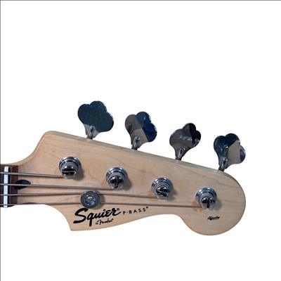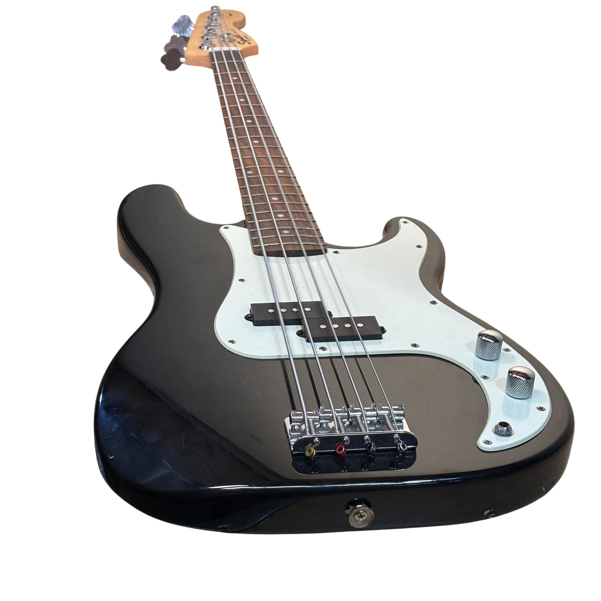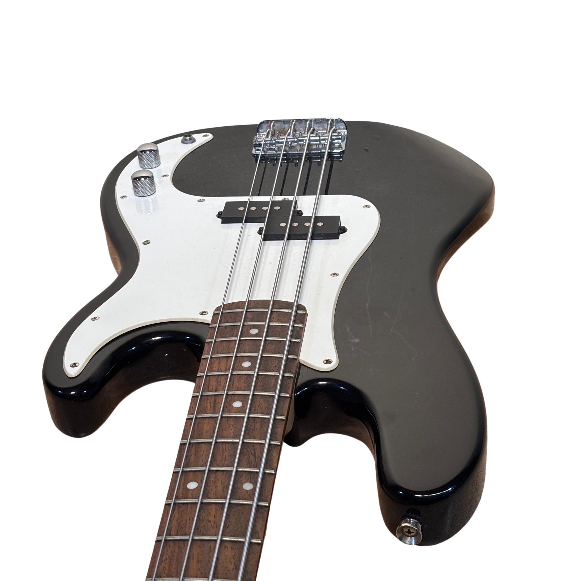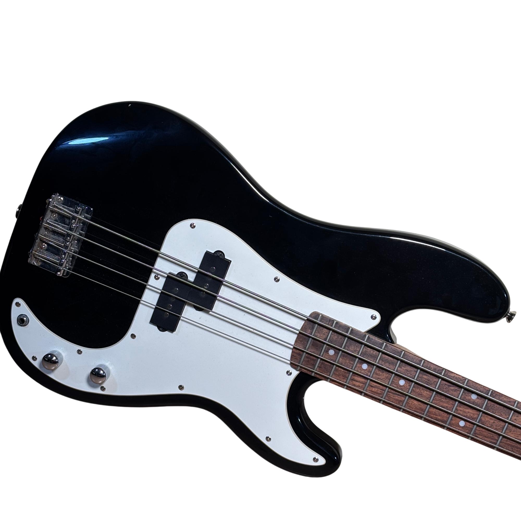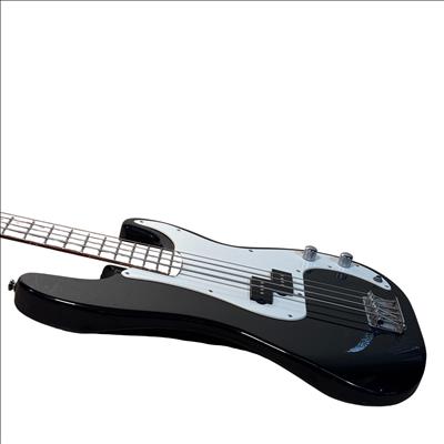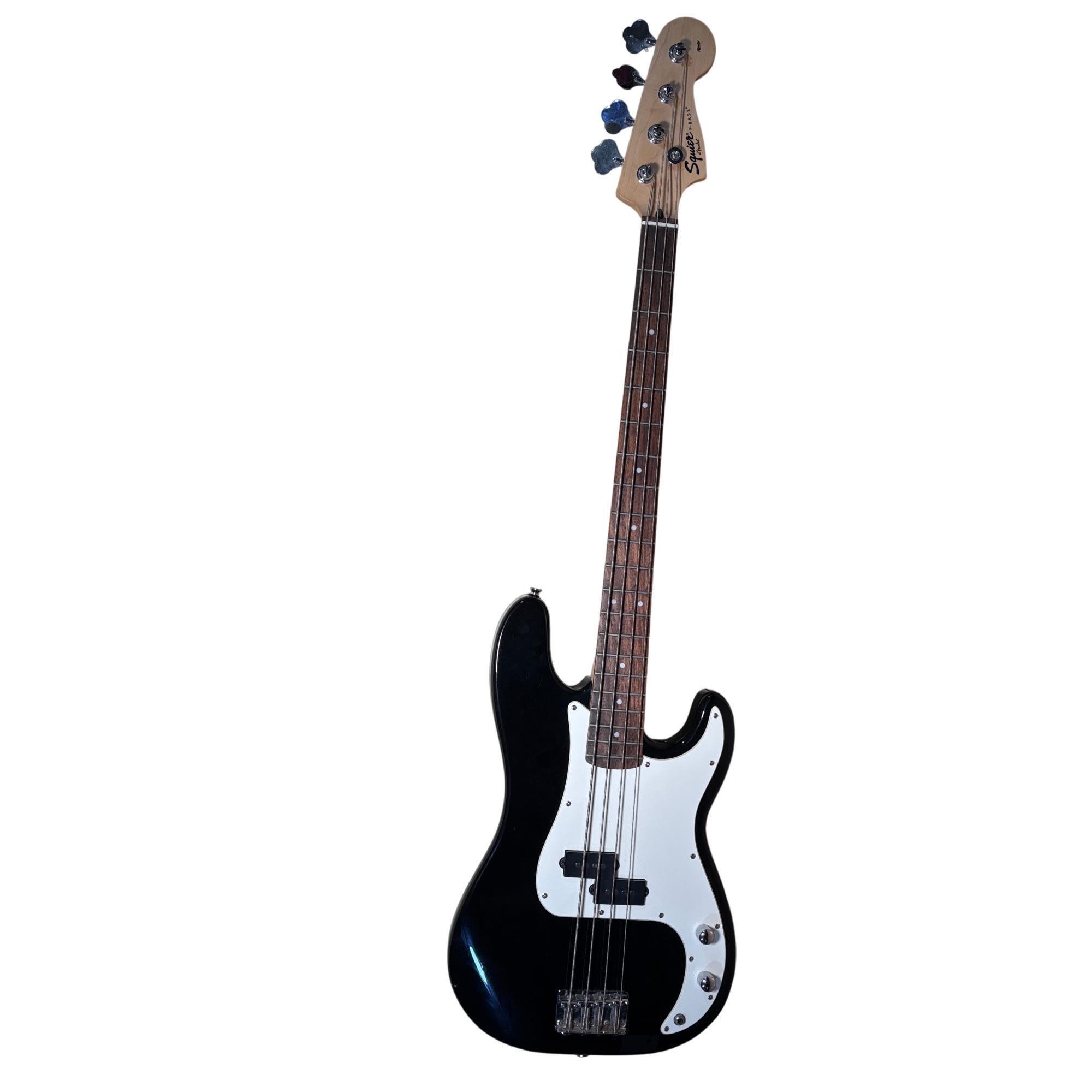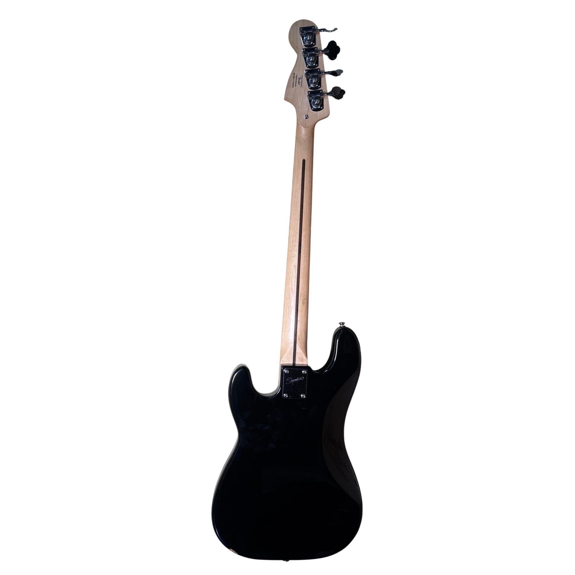 Squier Affinity Series Precision Bass (P-Bass) in Black features a classic design with a laurel fingerboard that provides a smooth playing experience. This electric bass guitar is known for its solid construction and traditional split-coil pickup, delivering warm, punchy tones ideal for various music styles. Its sleek black finish and comfortable neck make it a reliable choice for both beginners and experienced players seeking an affordable precision bass.
