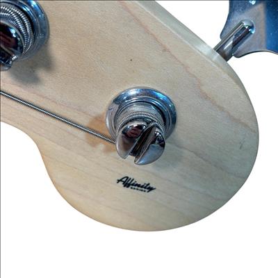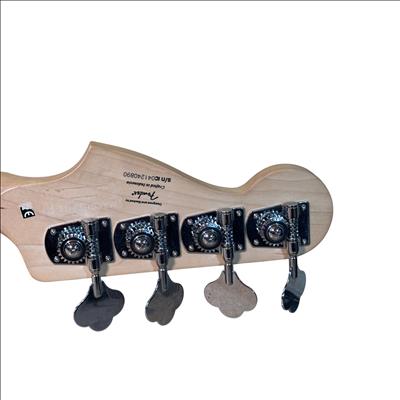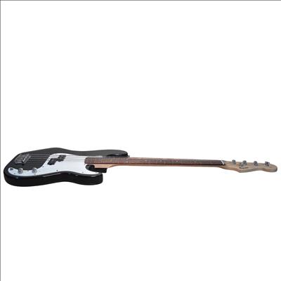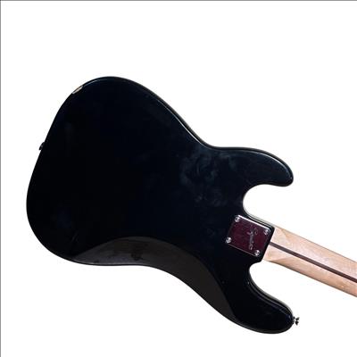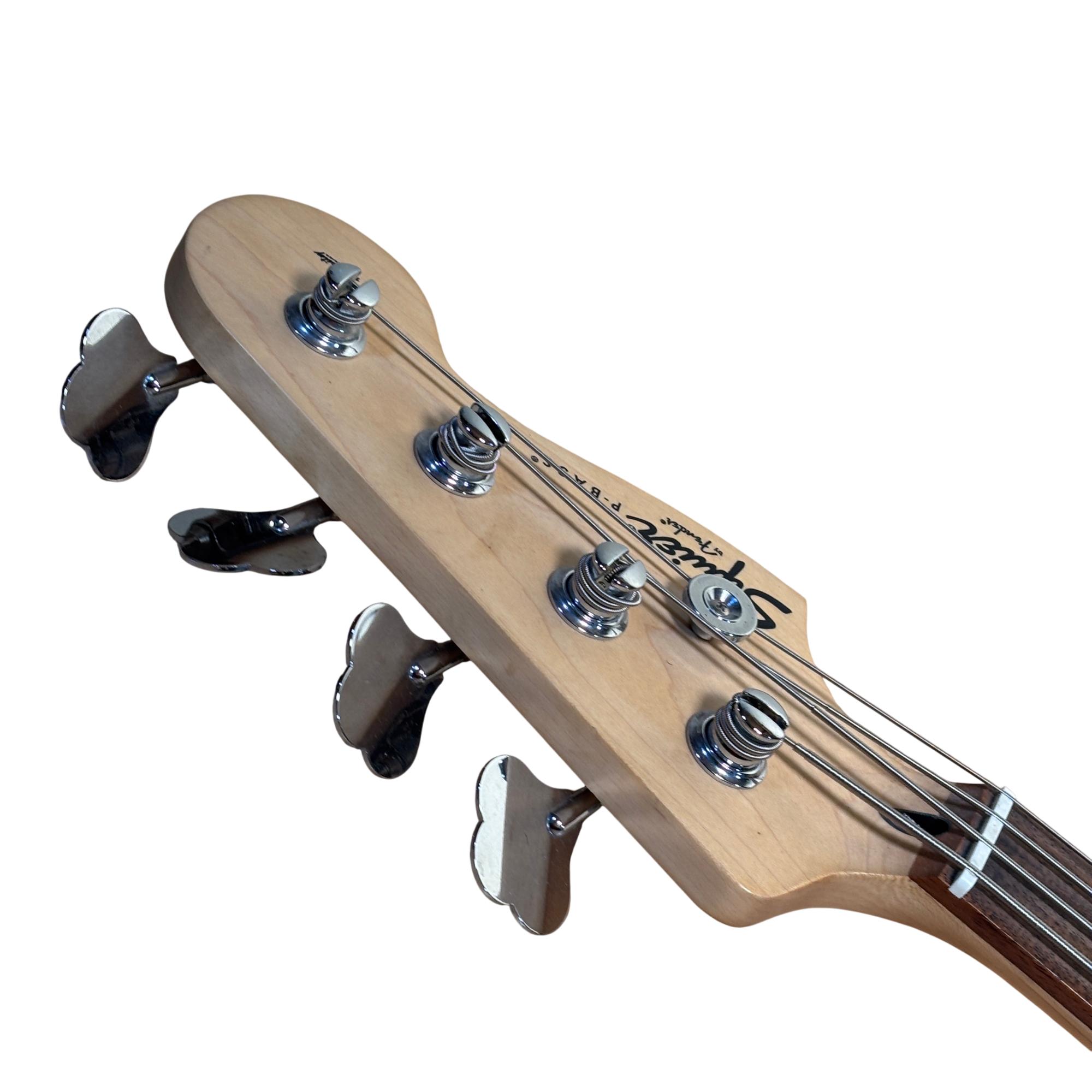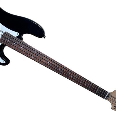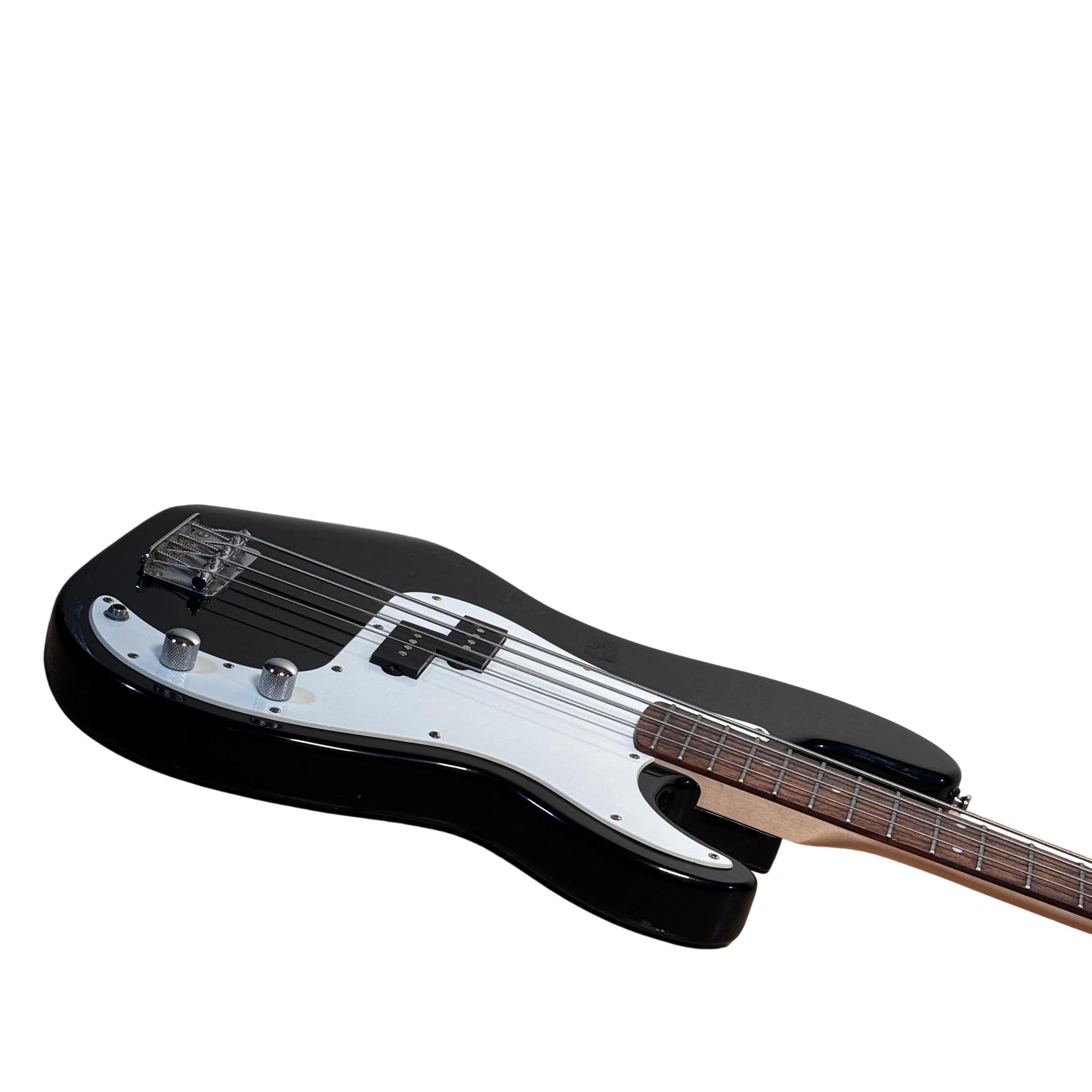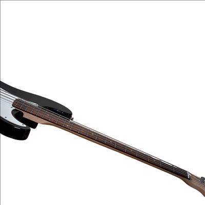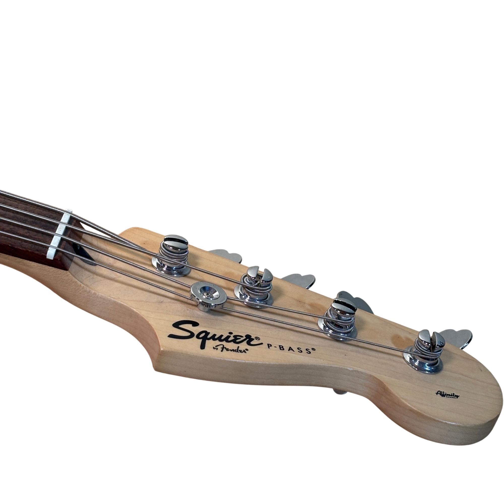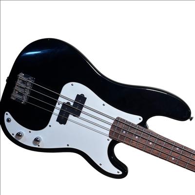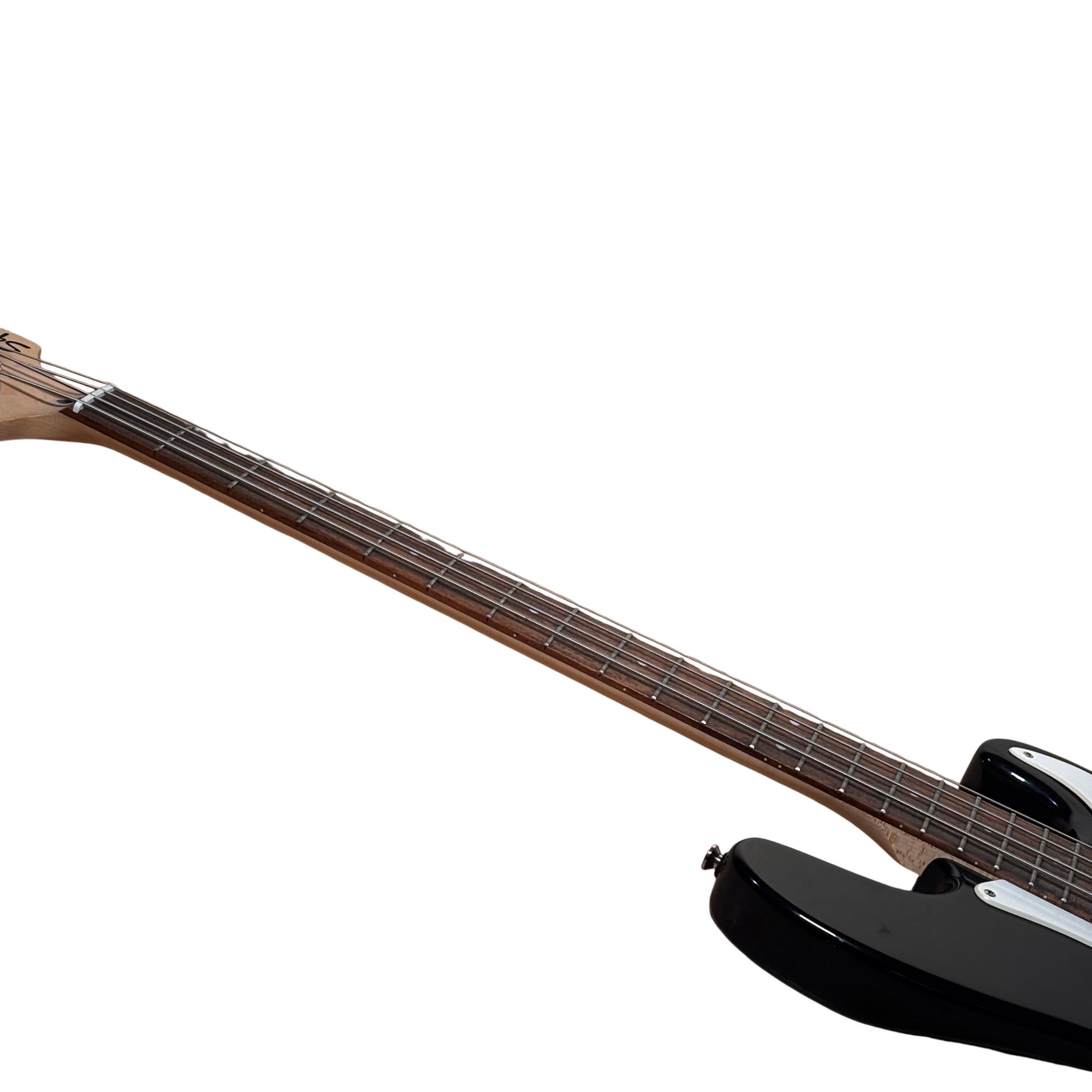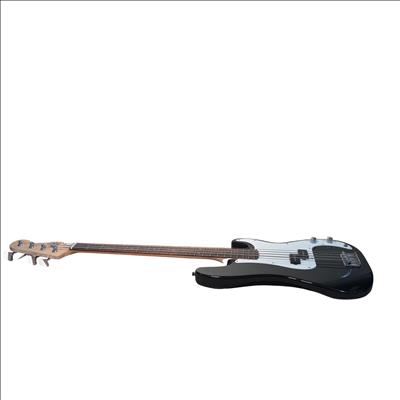 Squier Affinity Series Precision Bass (P-Bass) in Black features a classic design with a laurel fingerboard that provides a smooth playing experience. This electric bass guitar is known for its solid construction and traditional split-coil pickup, delivering warm, punchy tones ideal for various music styles. Its sleek black finish and comfortable neck make it a reliable choice for both beginners and experienced players seeking an affordable precision bass.