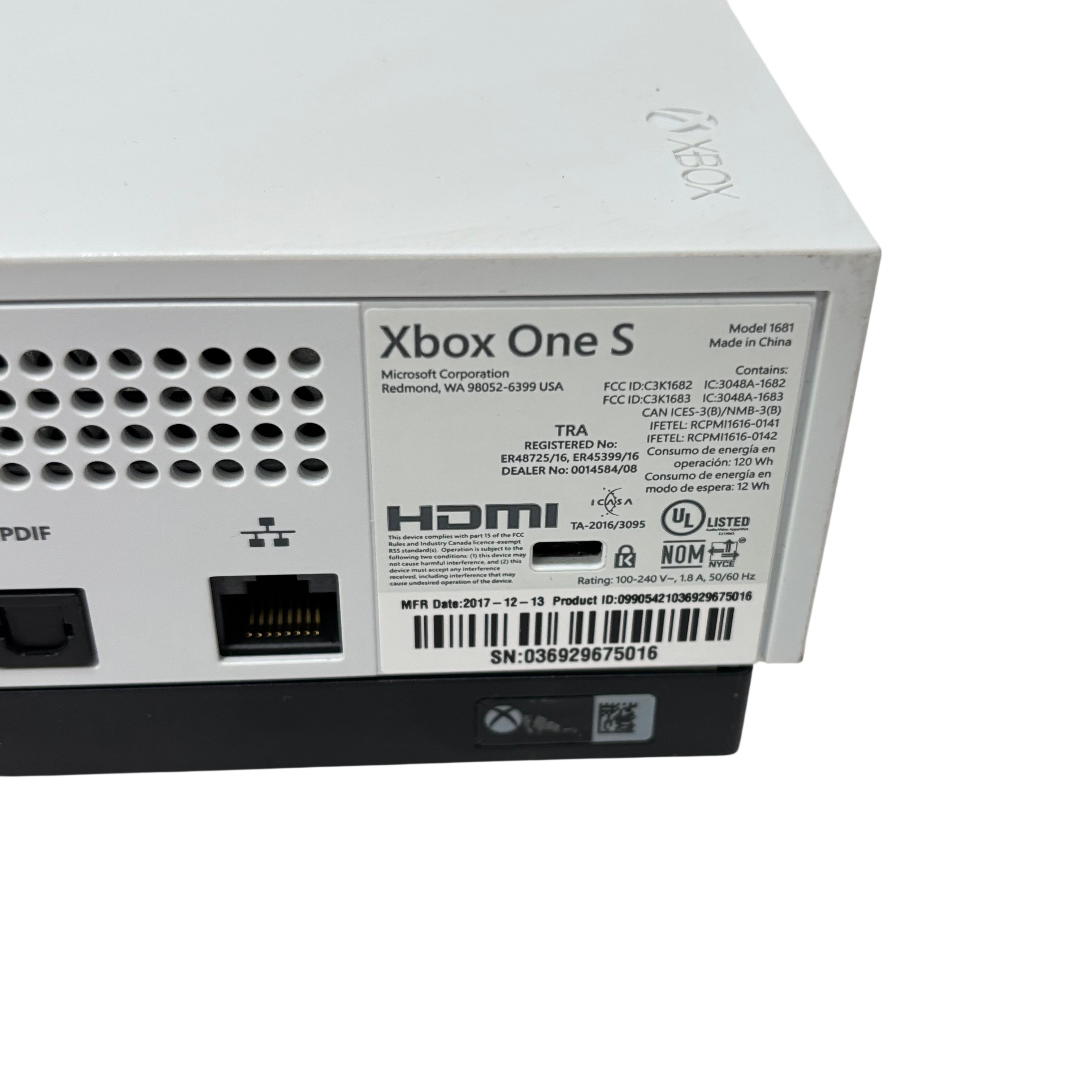 The Microsoft Xbox One S 1TB in white delivers powerful entertainment and gaming in one sleek console. Enjoy 4K Ultra HD streaming and Blu-ray playback with vibrant HDR visuals. Store and play your favorite titles with 1TB of storage, and experience smooth online multiplayer with Xbox Live. Compatible with a wide library of games from Xbox One, Xbox 360, and the original Xbox, the Xbox One S offers a versatile gaming experience for players and media lovers alike.