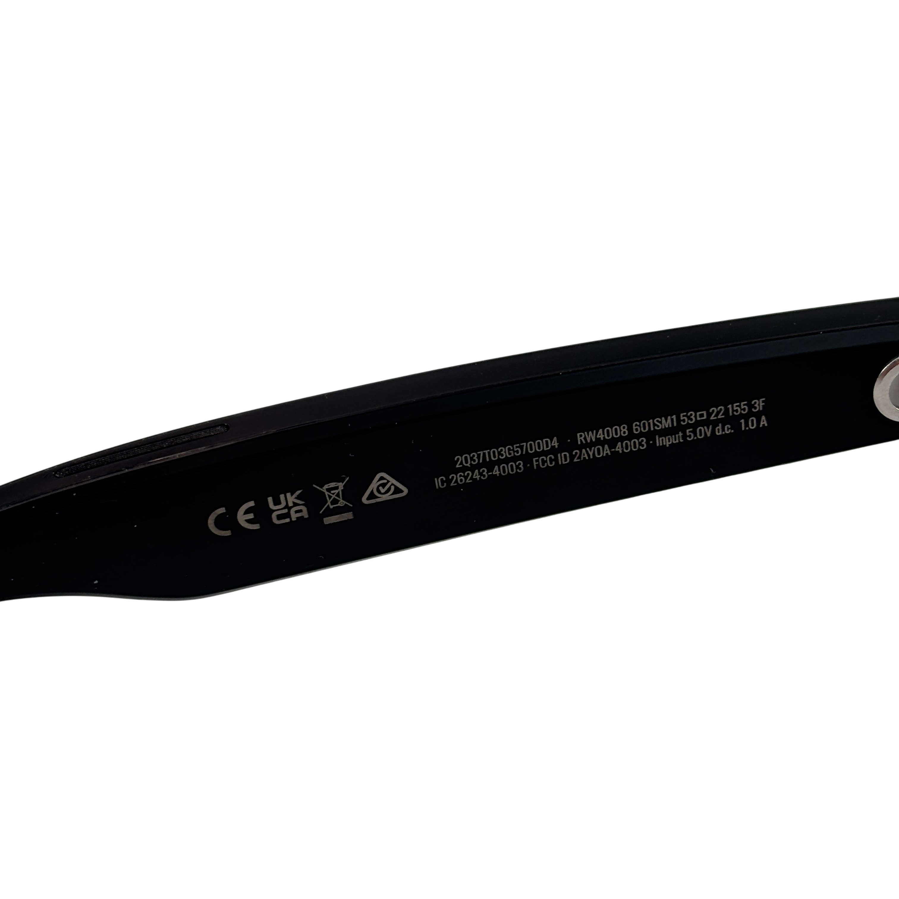 These smart glasses blend cutting-edge tech with everyday wearability. With Meta AI built-in, you can ask questions, translate signs, get outfit ideas, or send voice messages—all hands-free. A 12MP ultra-wide camera and 5-mic system capture crisp photos, immersive video, and clear audio for sharing or live streaming. Open-ear speakers deliver rich sound with privacy-enhancing directional audio. Control features with voice commands, a touchpad, or capture button. The companion Meta AI app helps you manage settings, media, and updates. Includes Wi-Fi 6, Bluetooth 5.2, and 32GB storage for 500+ photos or 100+ short videos. Matte black square frames feature Transitions lenses in clear/graphite green, with a 53–22–155mm size and high bridge fit. Compatible with iOS 14.4+ and Android 10+.