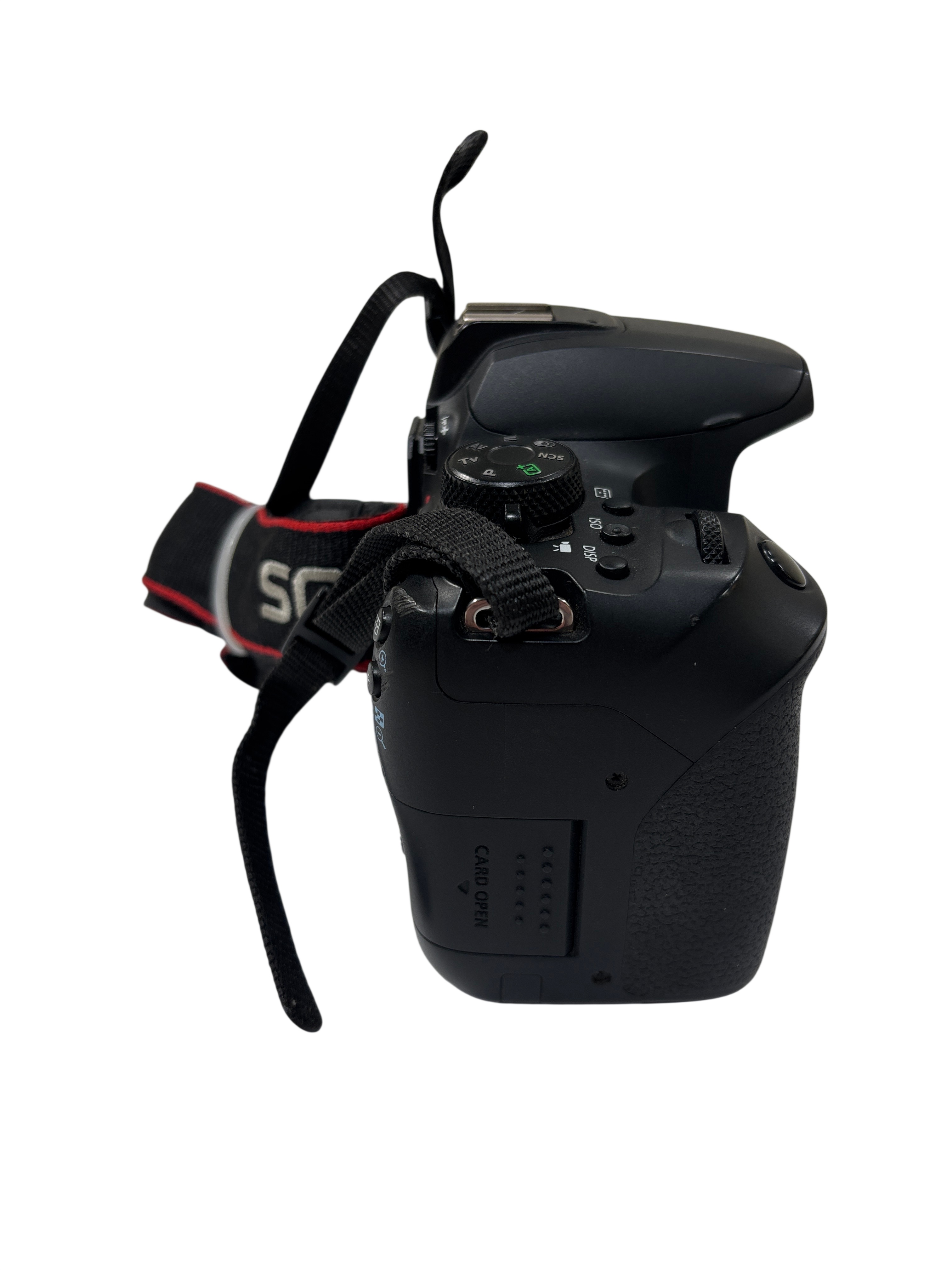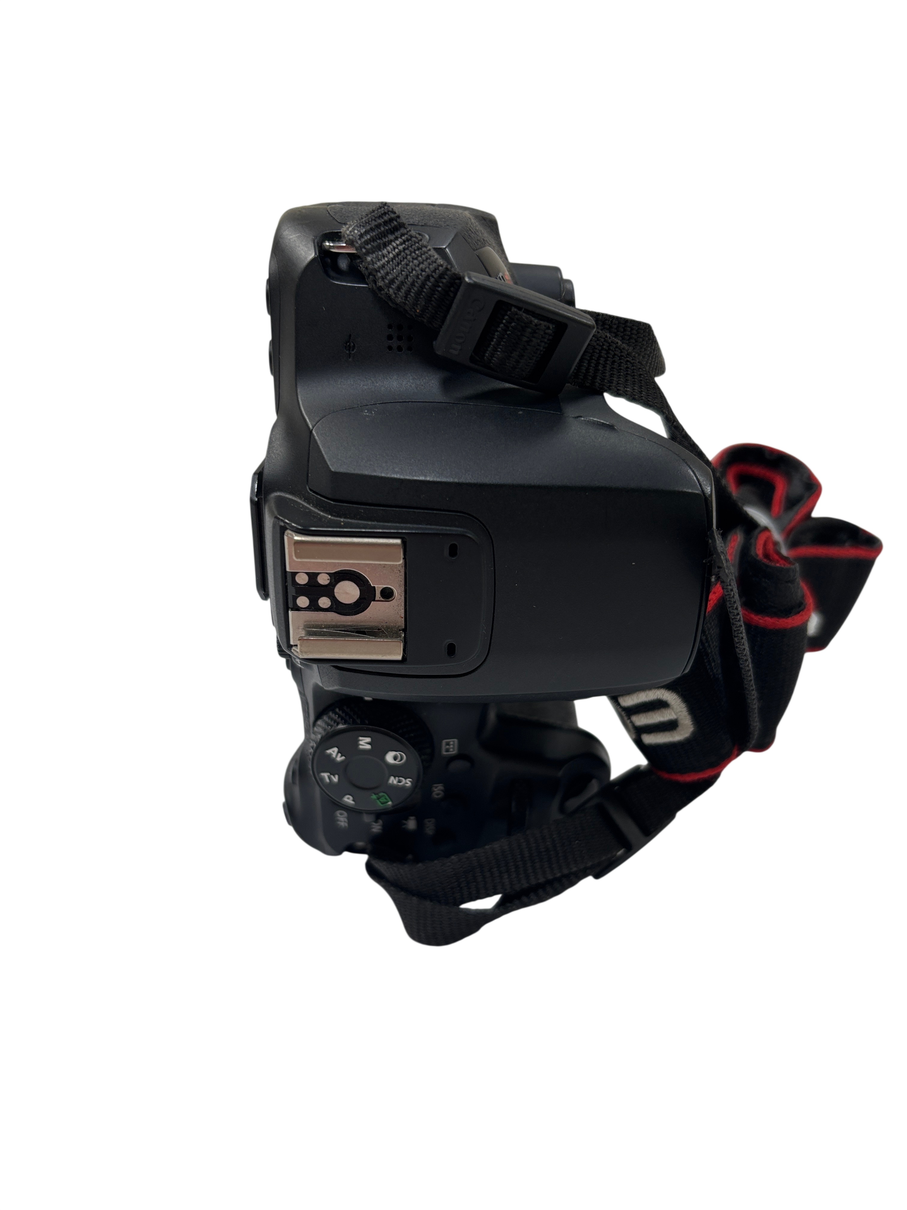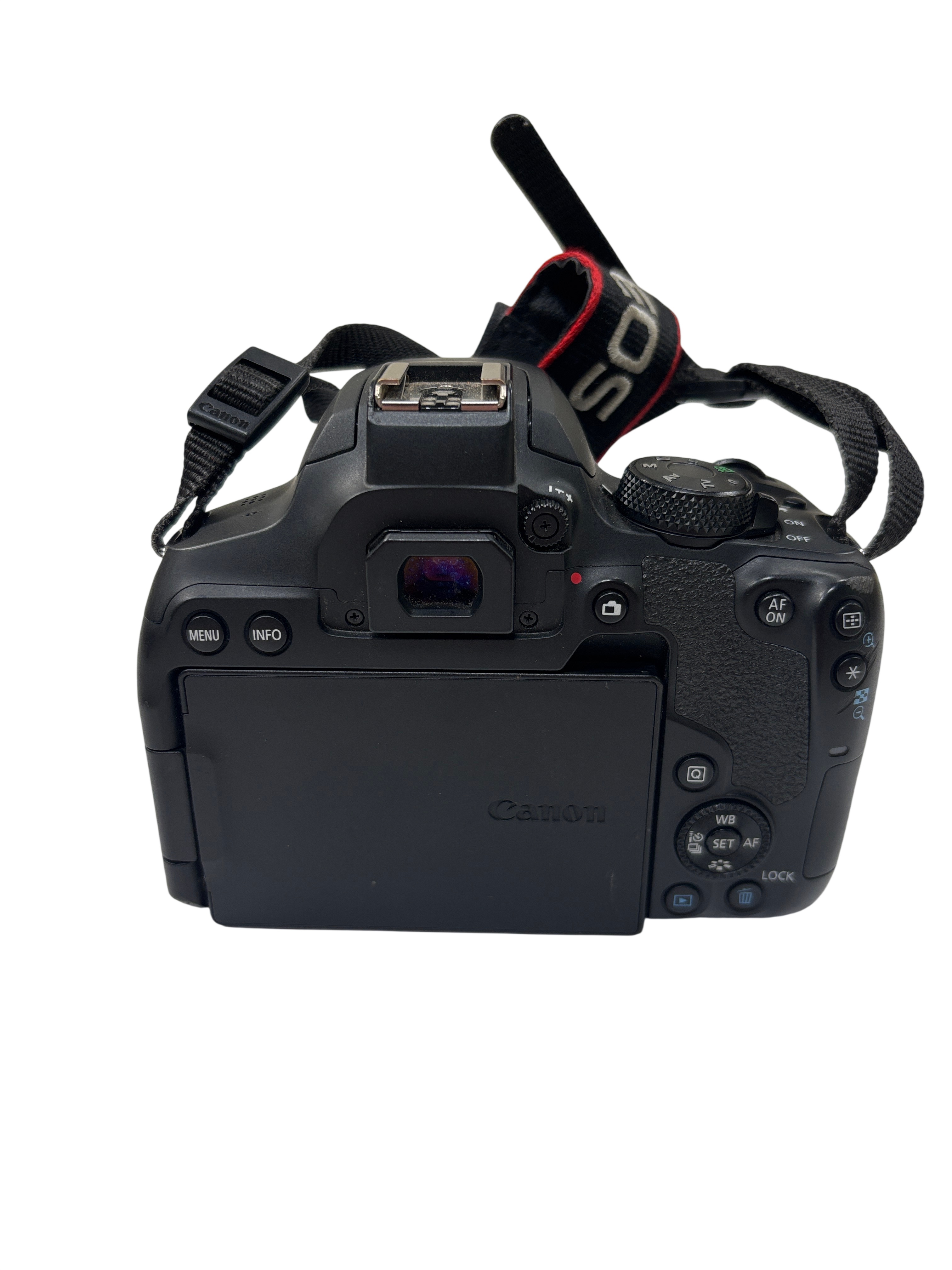 Equipped with an APS-C CMOS sensor and DIGIC 8 image processor, delivering high-resolution stills and UHD 4K video recording. It features a 45-point all cross-type phase-detection autofocus system and Dual Pixel CMOS AF with eye detection, providing fast and accurate focusing for both photos and videos. The camera supports a wide ISO range of 100-25600 and continuous shooting at up to 7 fps. Its design includes a 3.0" vari-angle touchscreen for flexible viewing angles and built-in Wi-Fi and Bluetooth for easy image sharing and remote control via mobile devices. The camera also supports vertical video output, has a 220,000-pixel AE sensor for precise exposure metering, and includes an external microphone jack for enhanced audio recording.