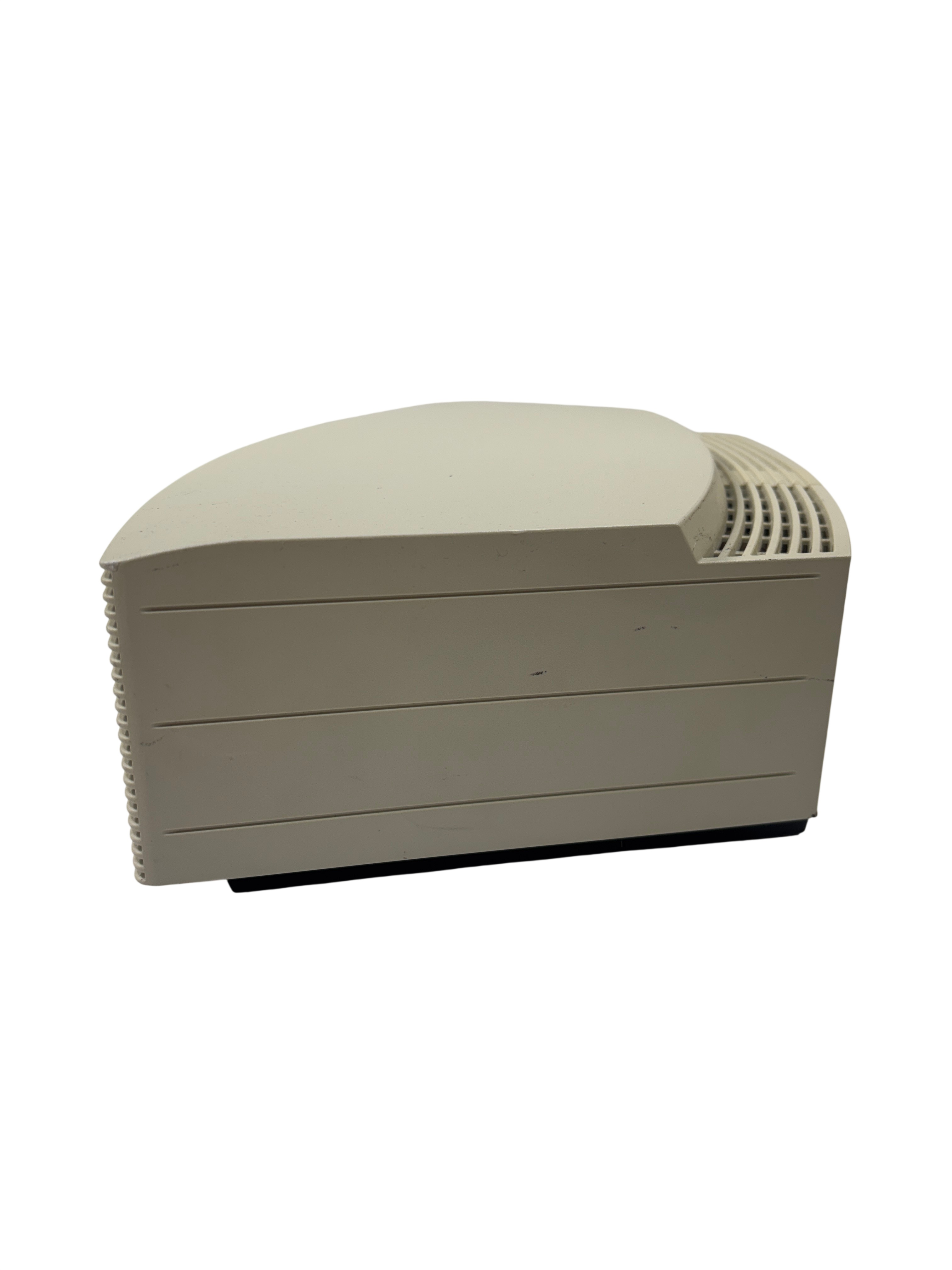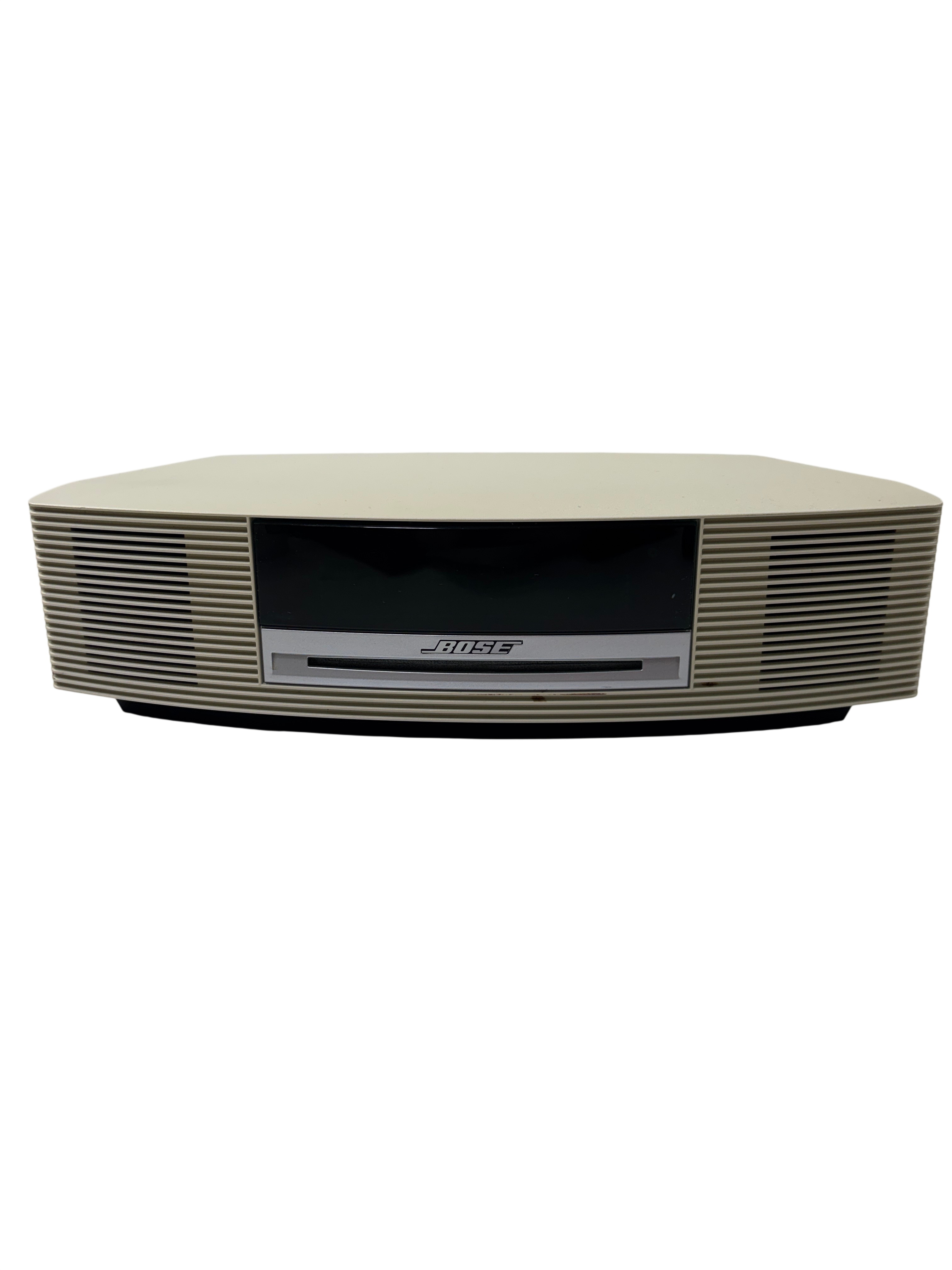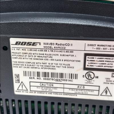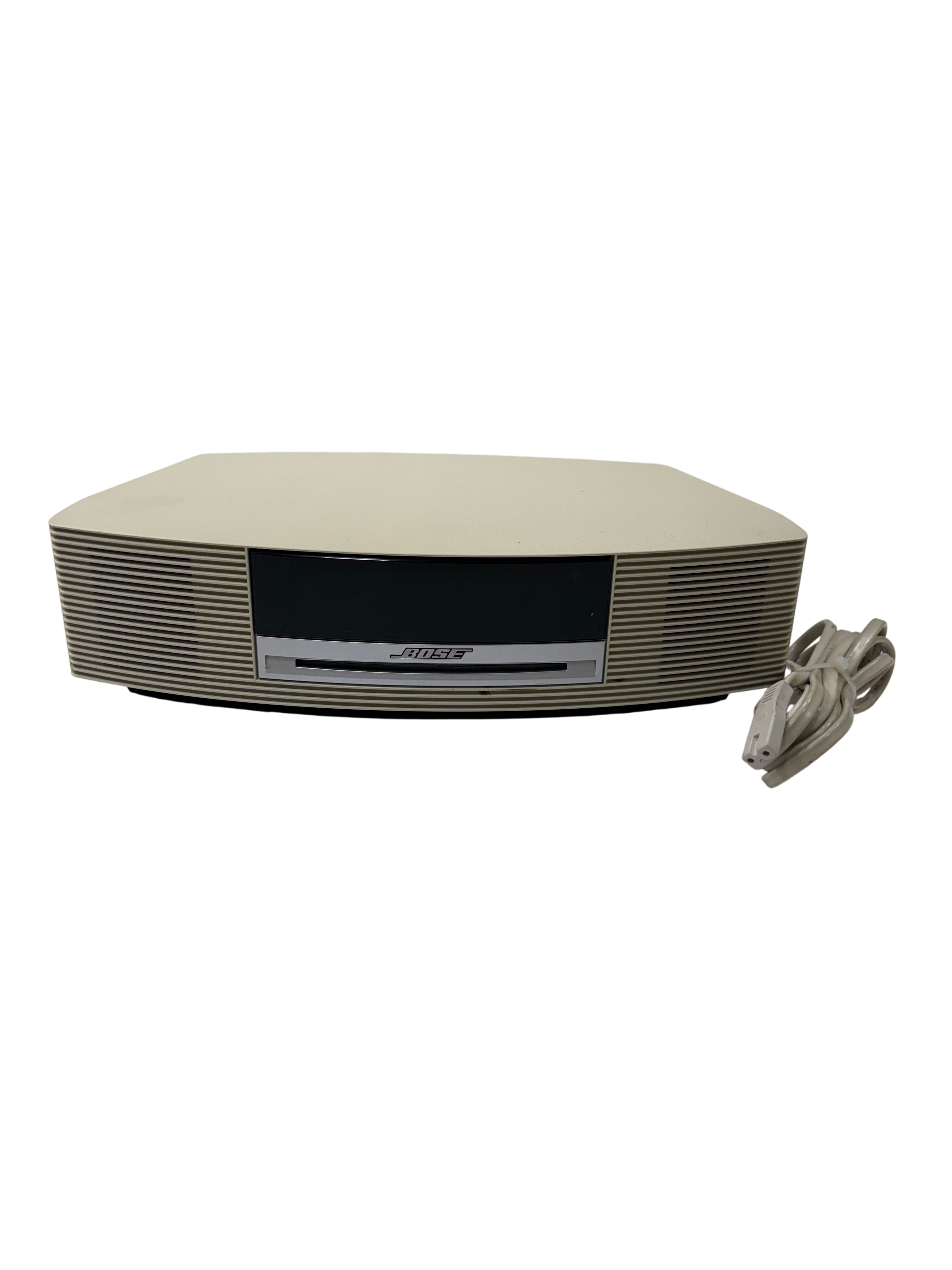 The Bose Wave Music System AWRCC2 is a compact home audio unit with a sleek, slot-loaded CD design and simple remote-controlled operation. It delivers clear, room-filling sound through its AM/FM, AUX, and CD playback options, and supports MP3 CDs for extended listening. The streamlined interface and elegant styling make it a refined addition to any space.