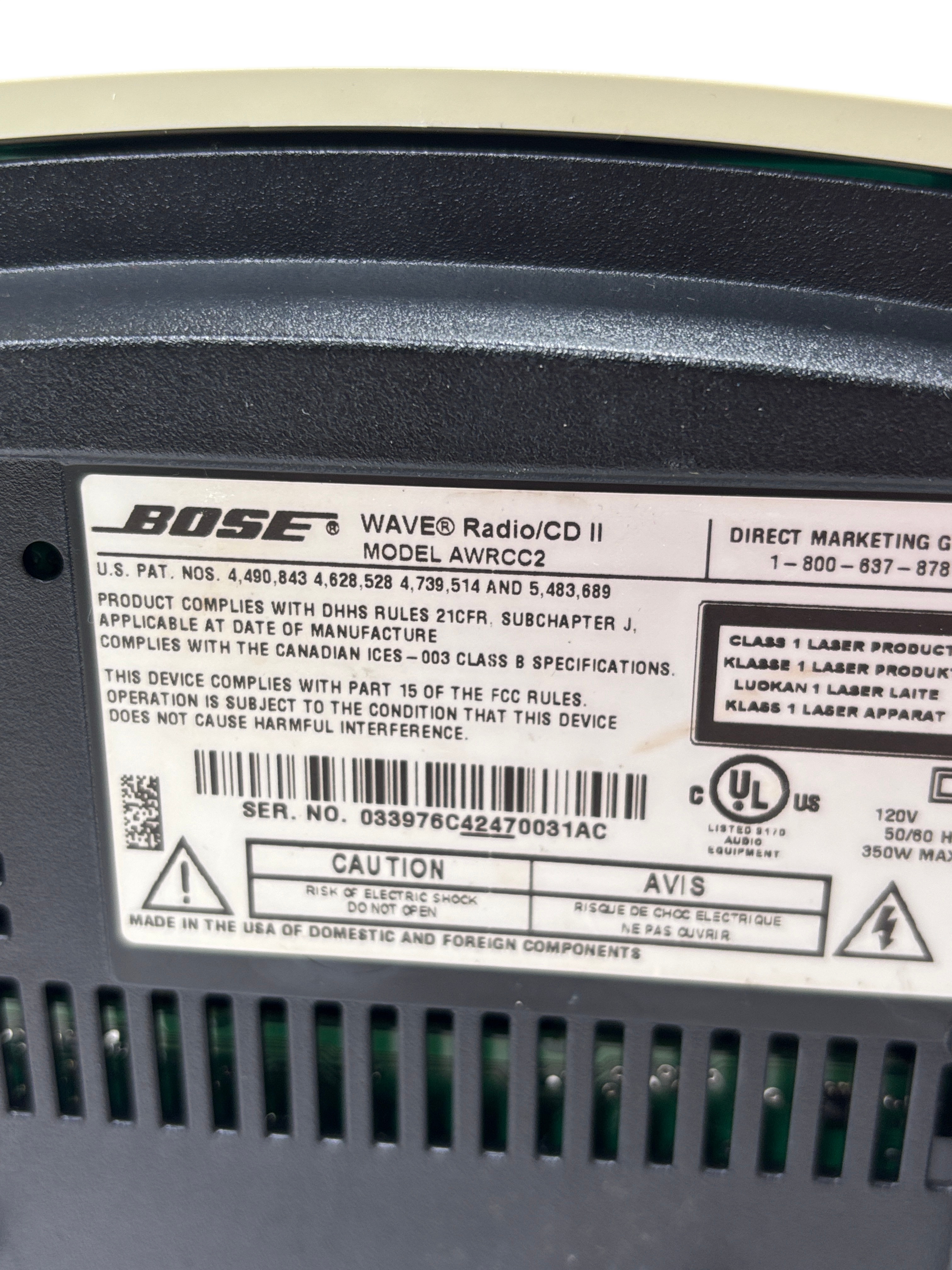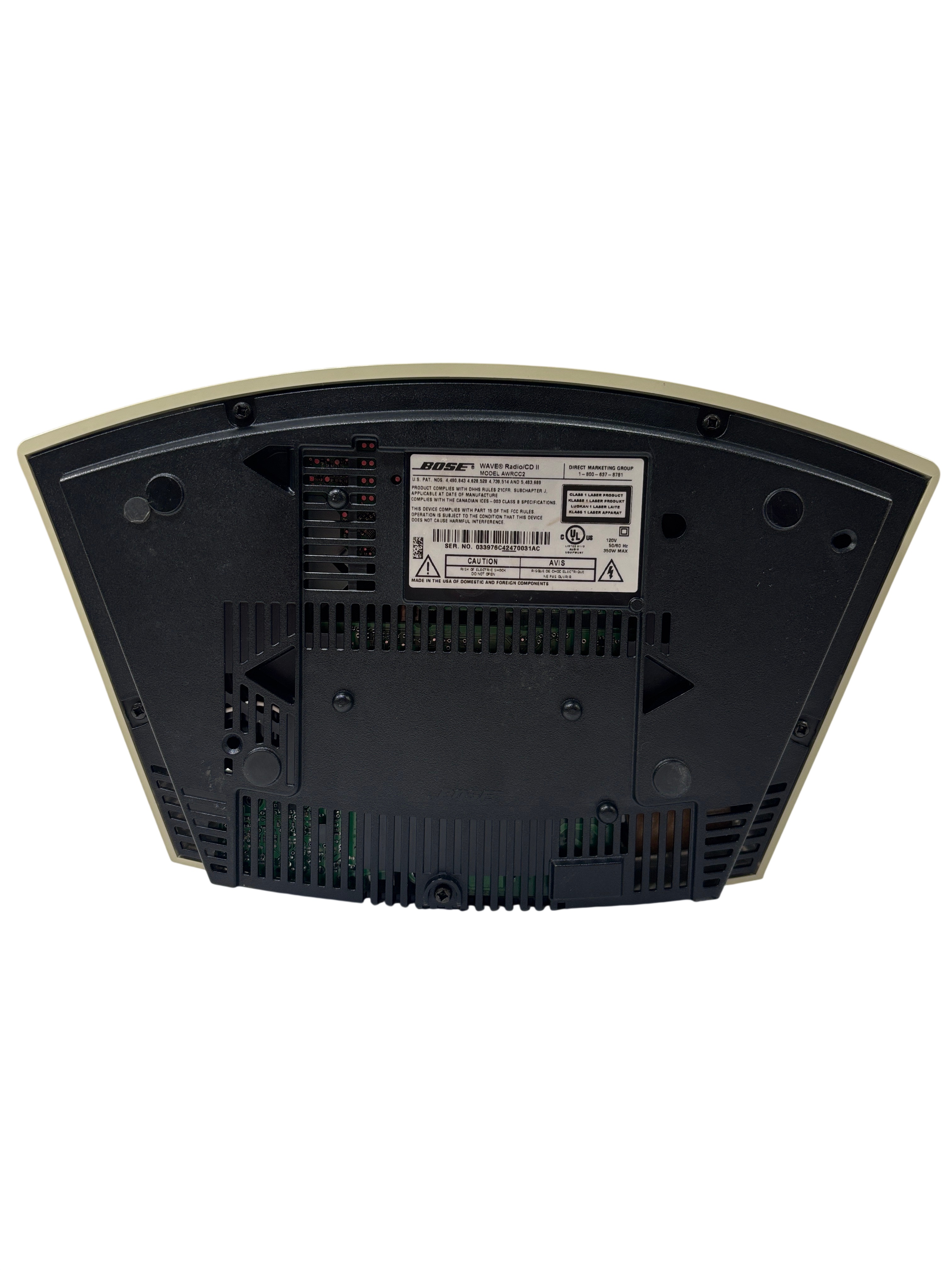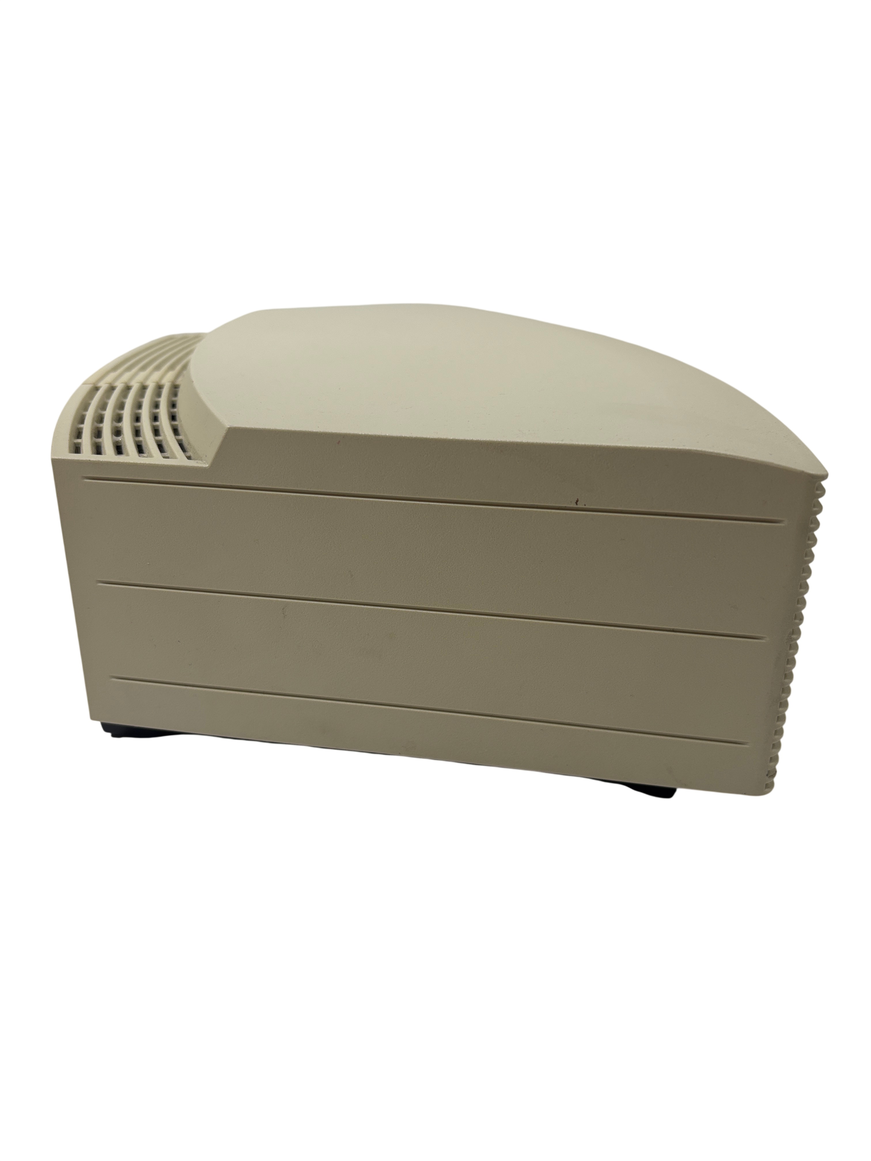The Bose Wave Music System AWRCC2 is a compact home audio unit with a sleek, slot-loaded CD design and simple remote-controlled operation. It delivers clear, room-filling sound through its AM/FM, AUX, and CD playback options, and supports MP3 CDs for extended listening. The streamlined interface and elegant styling make it a refined addition to any space.