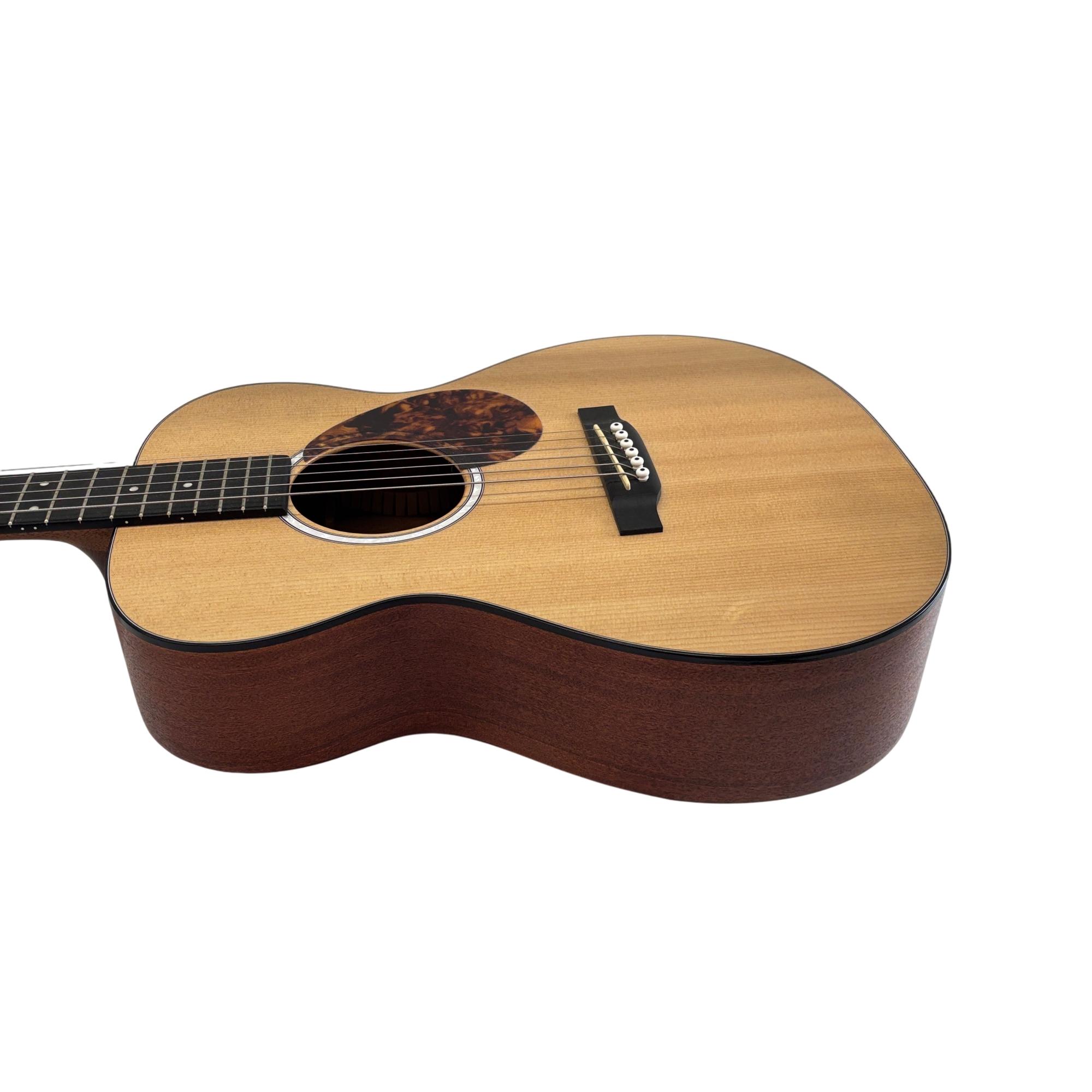 Martin & Co 000 Junior Acoustic Guitar with Case - Sustainable Wood Series features a compact 000-size body crafted from sustainably sourced tonewoods, delivering rich, balanced sound ideal for both beginners and seasoned players. Its high-quality craftsmanship ensures excellent resonance and playability, making it a versatile acoustic guitar suited for various musical styles.