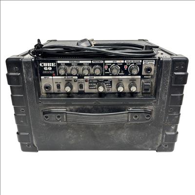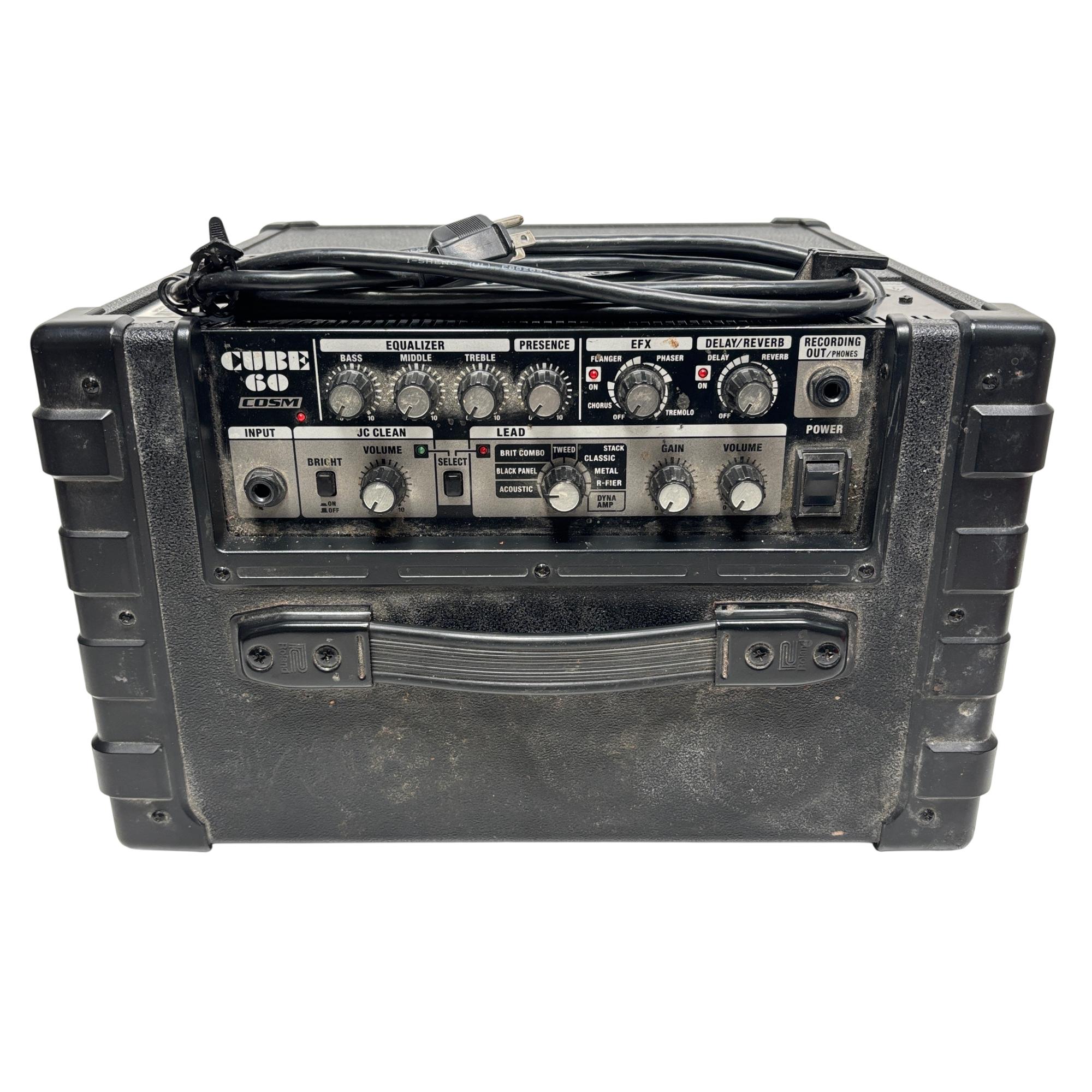 Roland CUBE-60D 60-Watt Guitar Amplifier delivers powerful solid-state performance with a 12-inch speaker and metal mesh cover for enhanced sound projection and durability. Engineered for versatile tone shaping, this compact combo amp is suitable for practice and small performances, featuring a sleek black design and reliable cable connectivity.