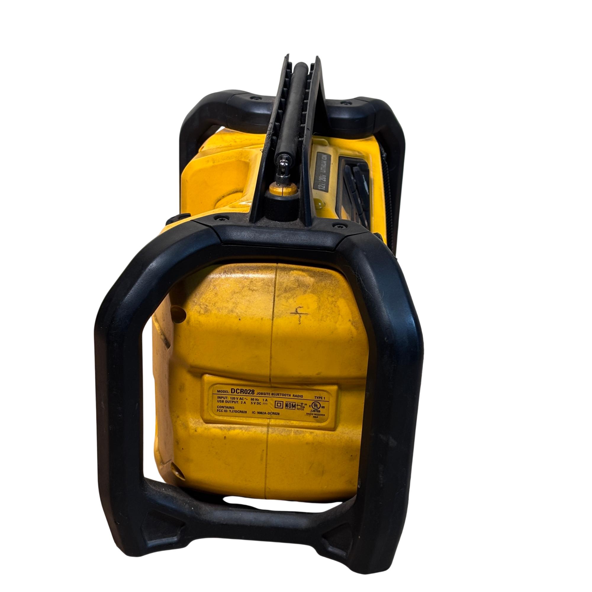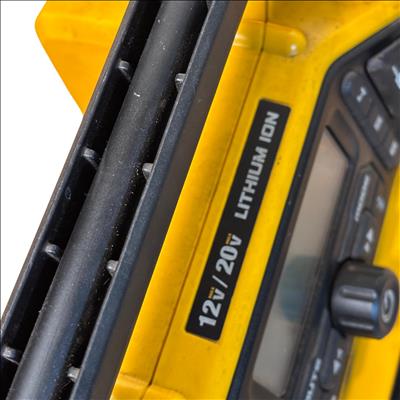 The 12V/20V MAX Bluetooth Jobsite Radio provides premium sound in the toughest work environments. Its durable roll-cage design withstands drops and impacts. The innovative handle stores and protects the radio antenna when not in use. Quad speakers kick out true stereo sound with deep bass. Stream music via Bluetooth from up to 100 feet or connect through the built-in auxiliary port. AM/FM radio includes six customizable presets per band. A convenient USB port charges your mobile devices.