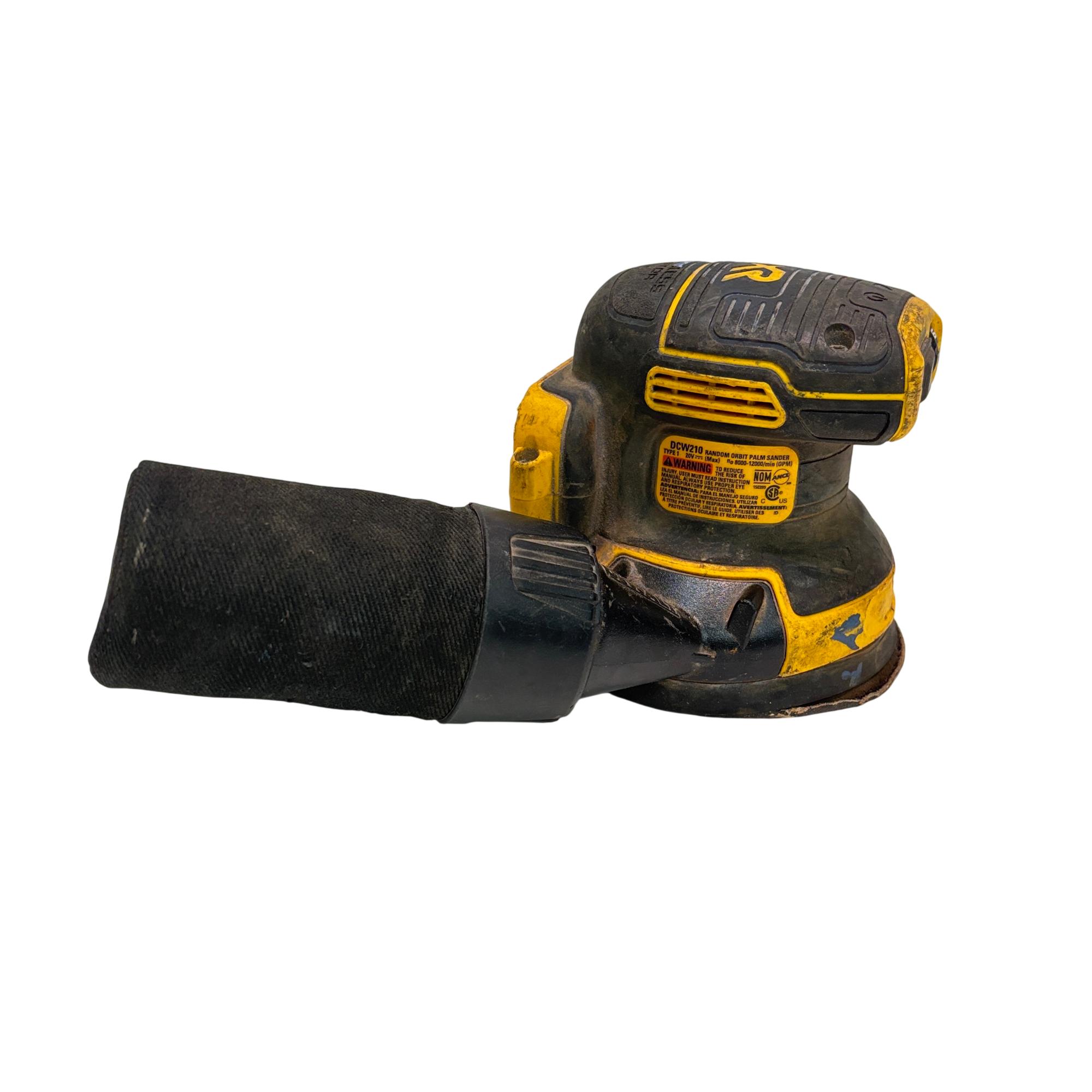 A high-performance tool designed for a range of sanding projects. It features a brushless motor for extended runtime and efficiency, and offers variable speed control ranging from 8,000 to 12,000 OPM to suit different applications. The sander comes with a one-handed locking dust bag for effective dust collection, and can also be connected directly to specific DeWalt dust collectors. Additional features include a low-profile height for precise sanding, a replaceable 8-hole hook-and-loop sanding pad for easy paper changes, a dust-sealed switch for durability, and a texturized rubber overmold grip for user comfort.
