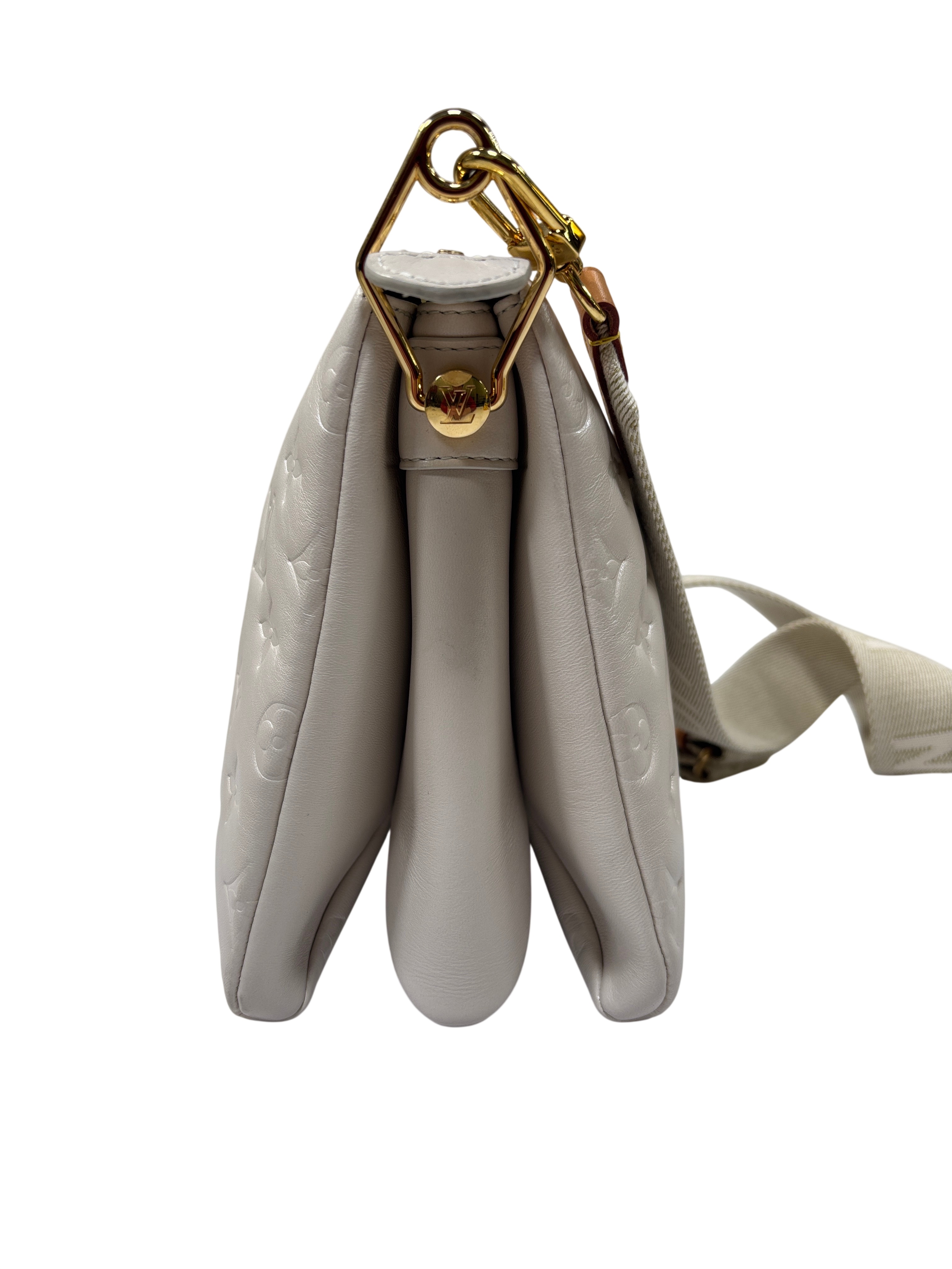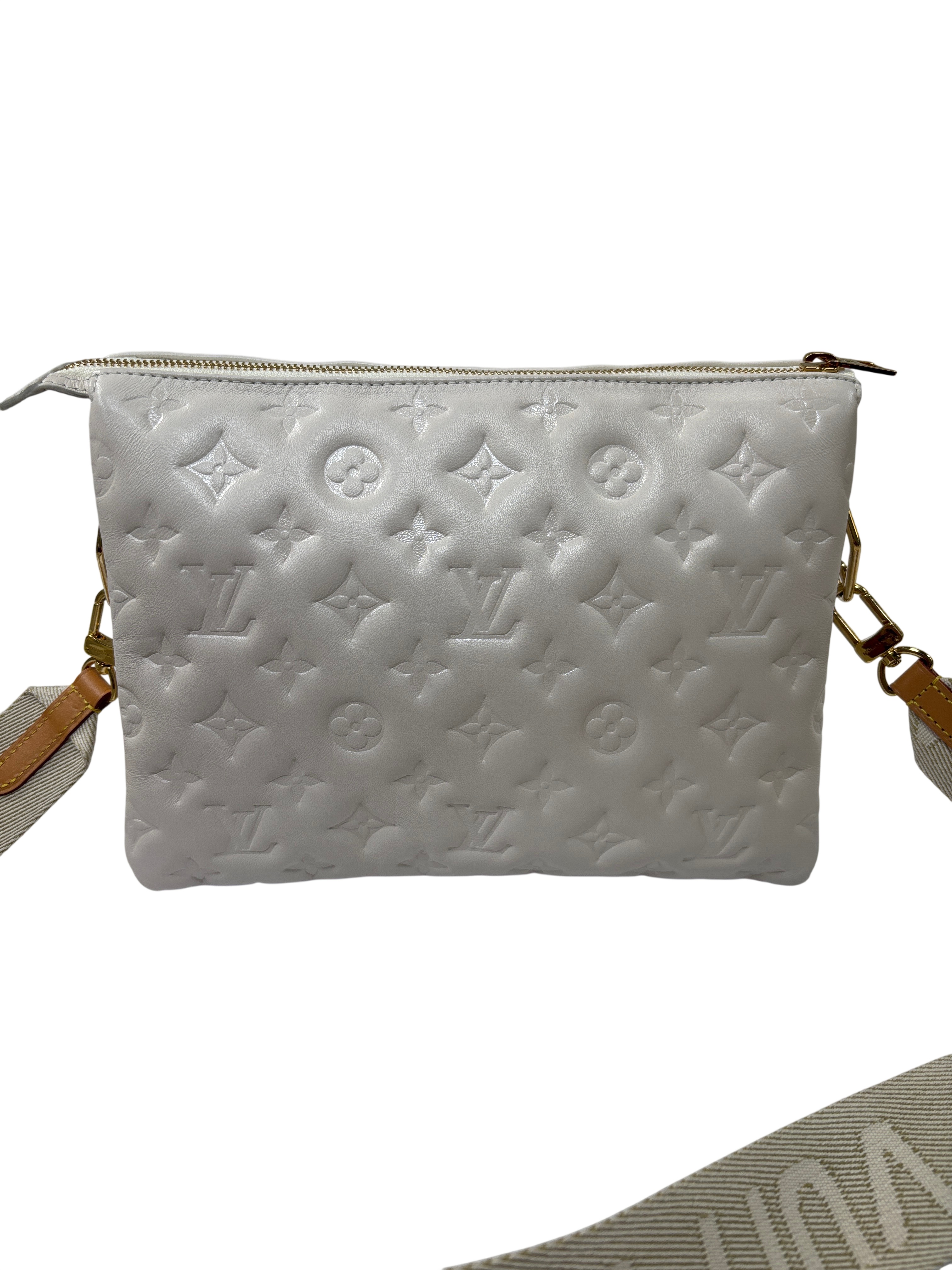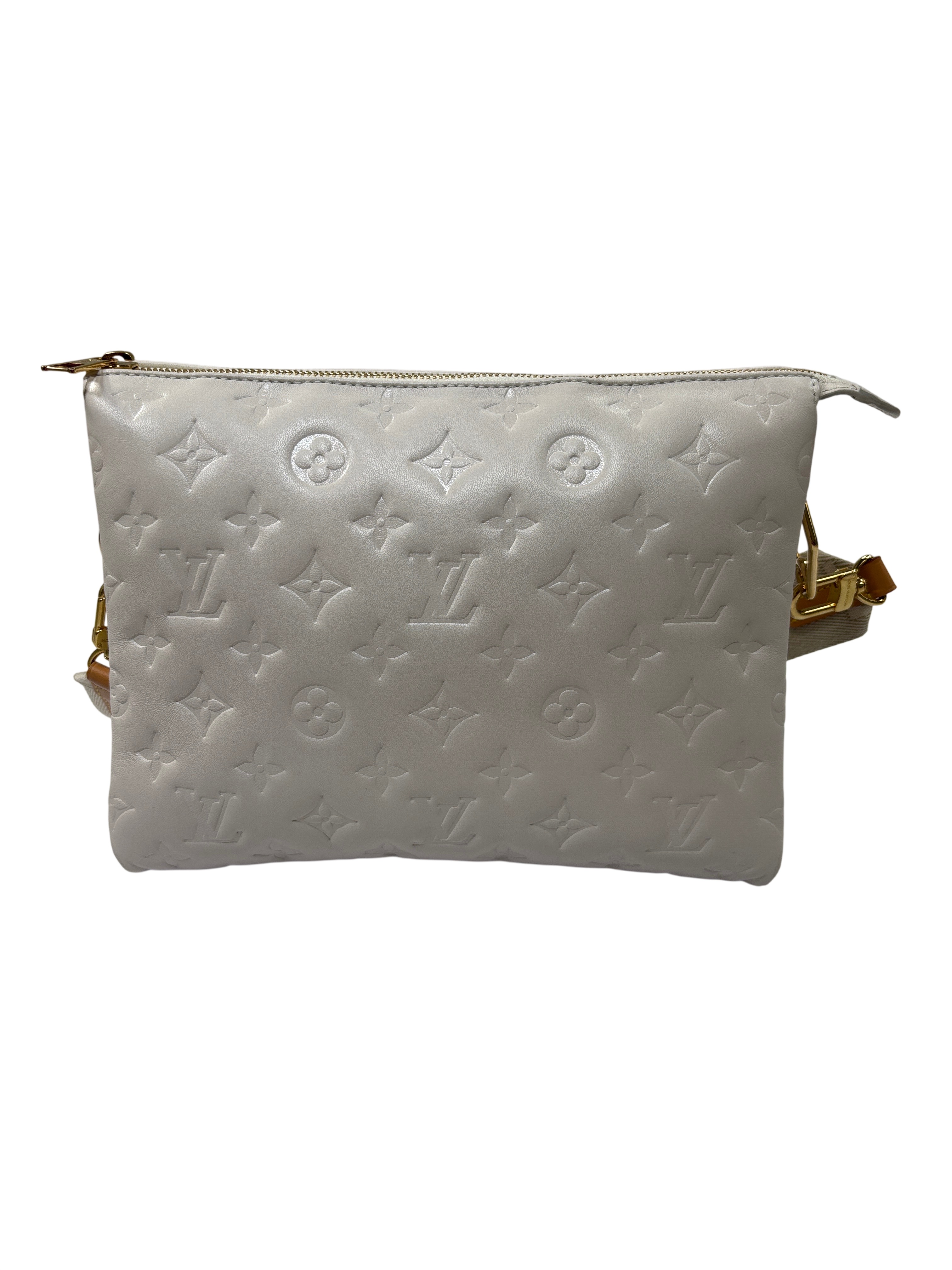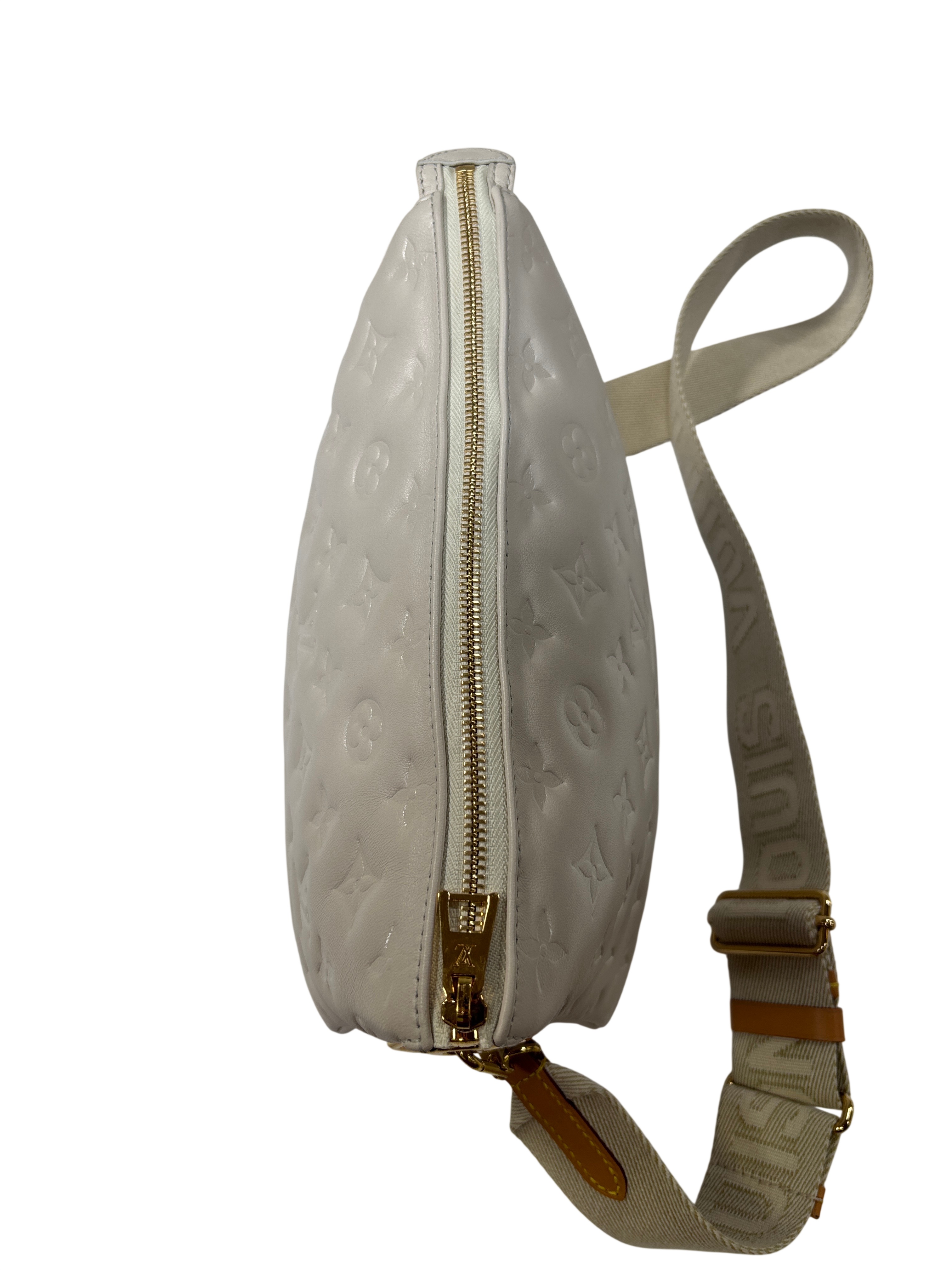 Louis Vuitton Monogram Embossed Bag is a luxurious handbag crafted from high-quality lamb skin, featuring the iconic monogram design. This elegant piece comes with an adjustable strap for versatile styling and includes a certificate of authenticity, ensuring its genuine craftsmanship. Perfect for adding a touch of sophistication to any outfit.