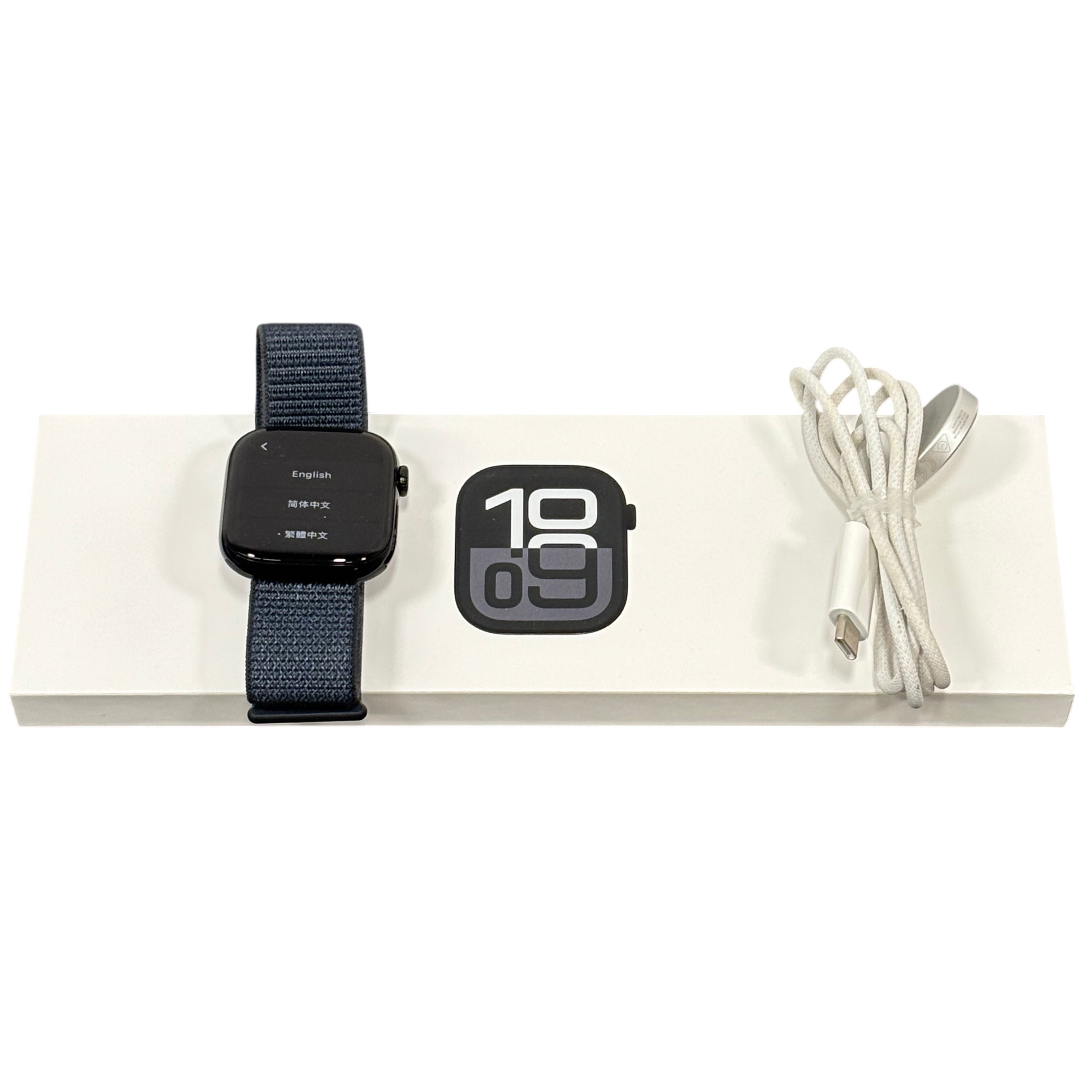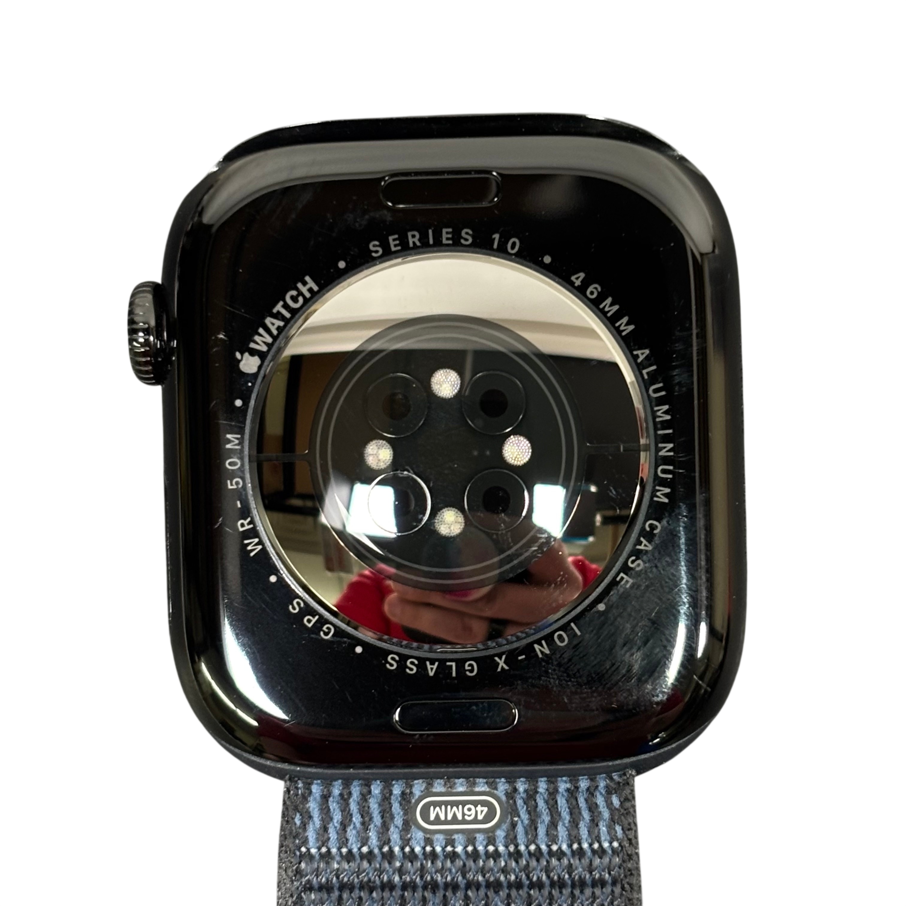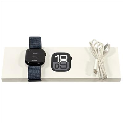 Apple Watch Series 10 46mm Jet Black Aluminum GPS features a durable aluminum case with Ion-X glass for enhanced scratch resistance. This smartwatch offers GPS connectivity and is water resistant up to 50 meters, making it ideal for active lifestyles. Included in the set is the Apple Watch with a comfortable sport loop band and a magnetic charging cable. Its lightweight design and advanced health and fitness tracking capabilities make it a perfect companion for everyday use.