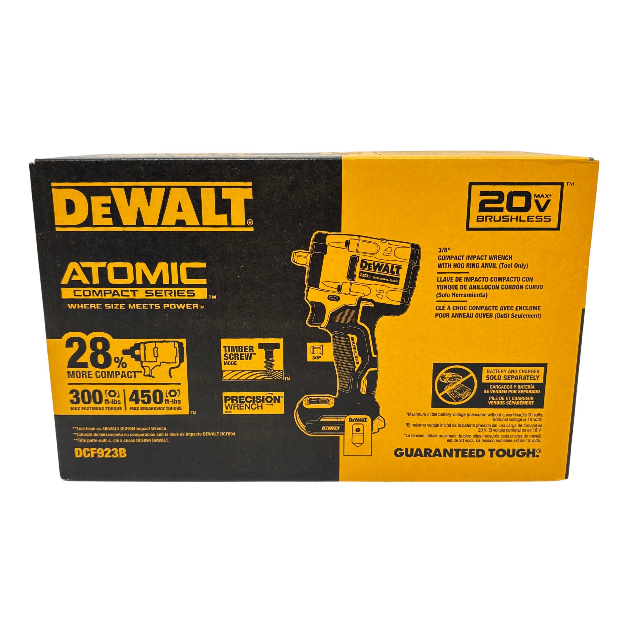 DEWALT ATOMIC Compact Series 20V MAX Brushless 3/8" Compact Impact Wrench with Hog Ring Anvil delivers powerful performance in a lightweight, compact design ideal for tight spaces. This brushless motor tool provides efficient torque and durability while ensuring precise fastening with its hog ring anvil, making it a versatile choice for professional and DIY use.
