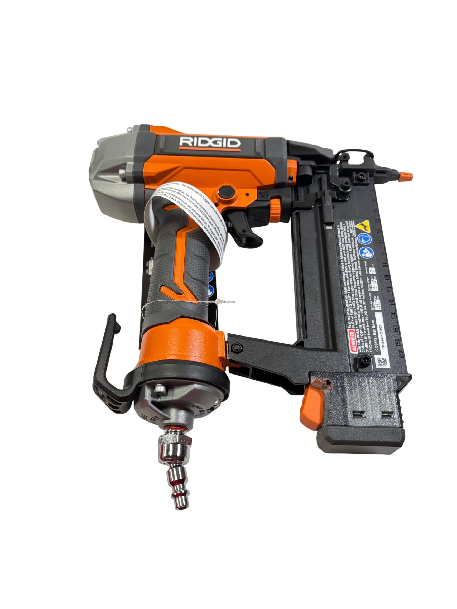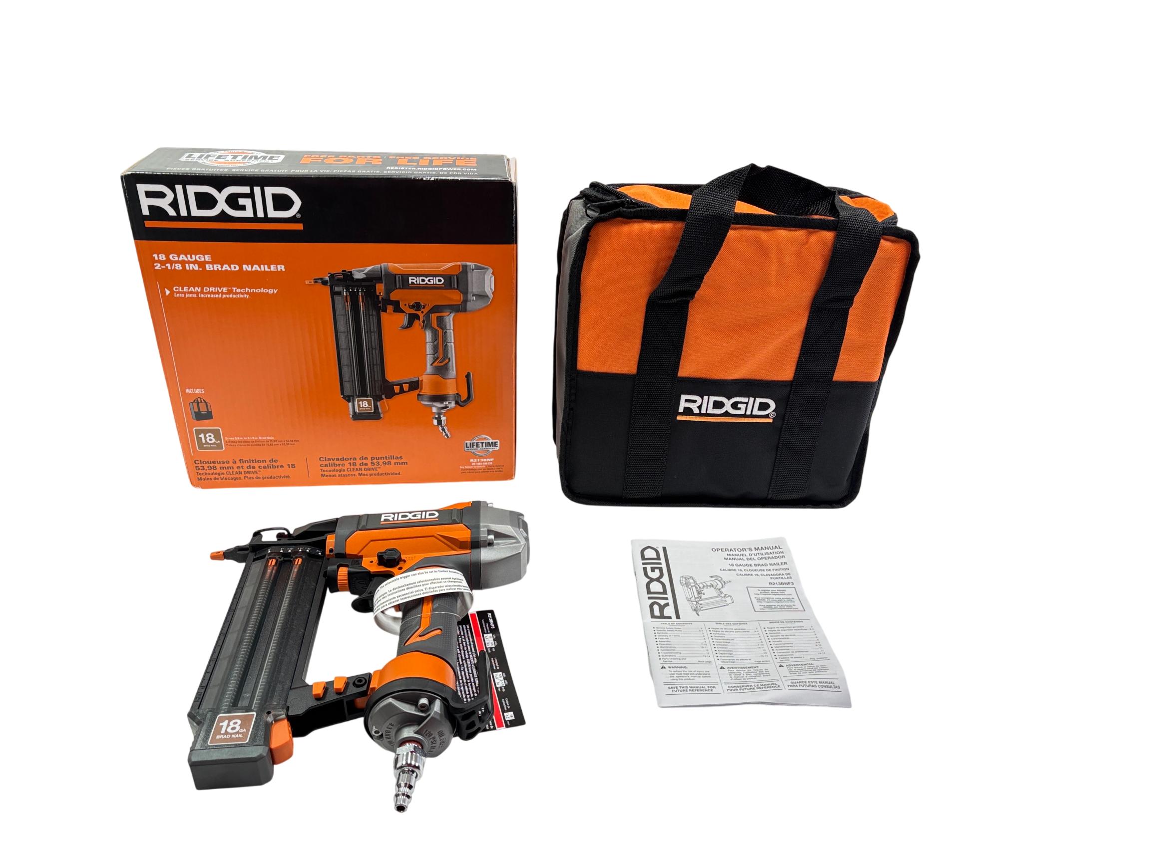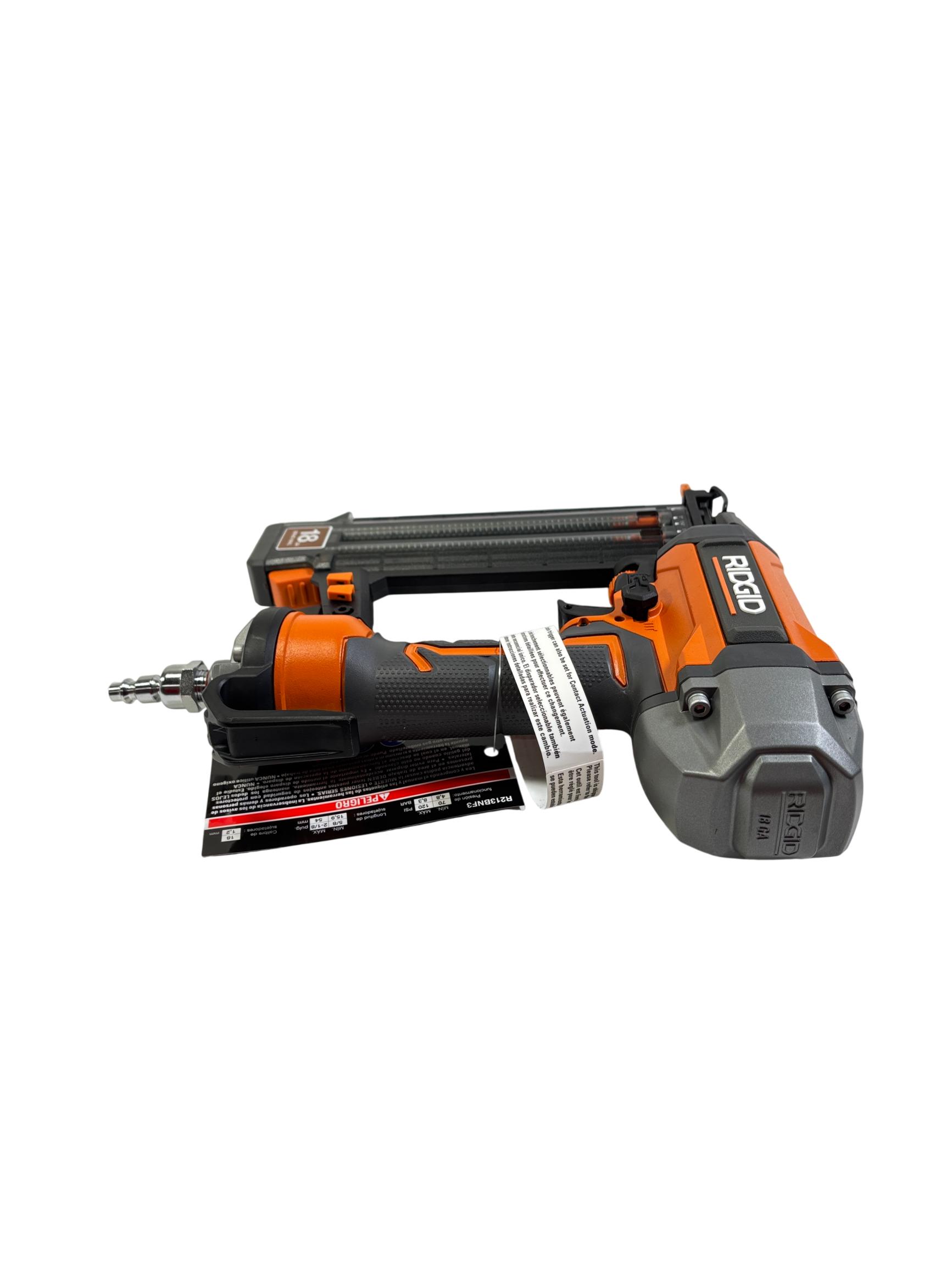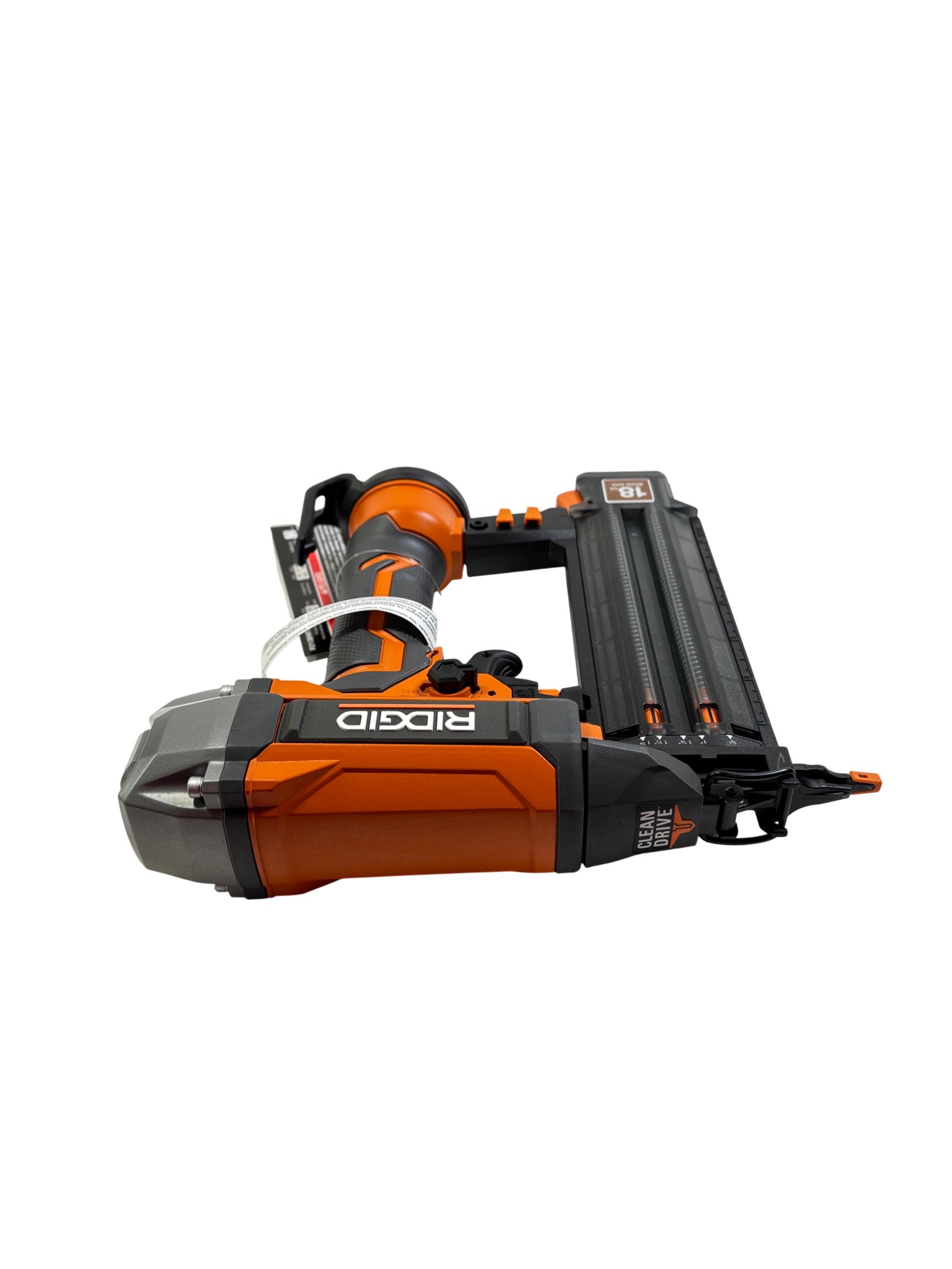 RIDGID R213BNF3 18 Gauge 2-1/8 in. Brad Nailer features Clean Drive Technology designed to reduce jams and enhance productivity for professional finish nailing. This durable tool delivers precise and efficient brad nail fastening suitable for detailed trim and cabinetry work, making it ideal for contractors and serious DIY enthusiasts.