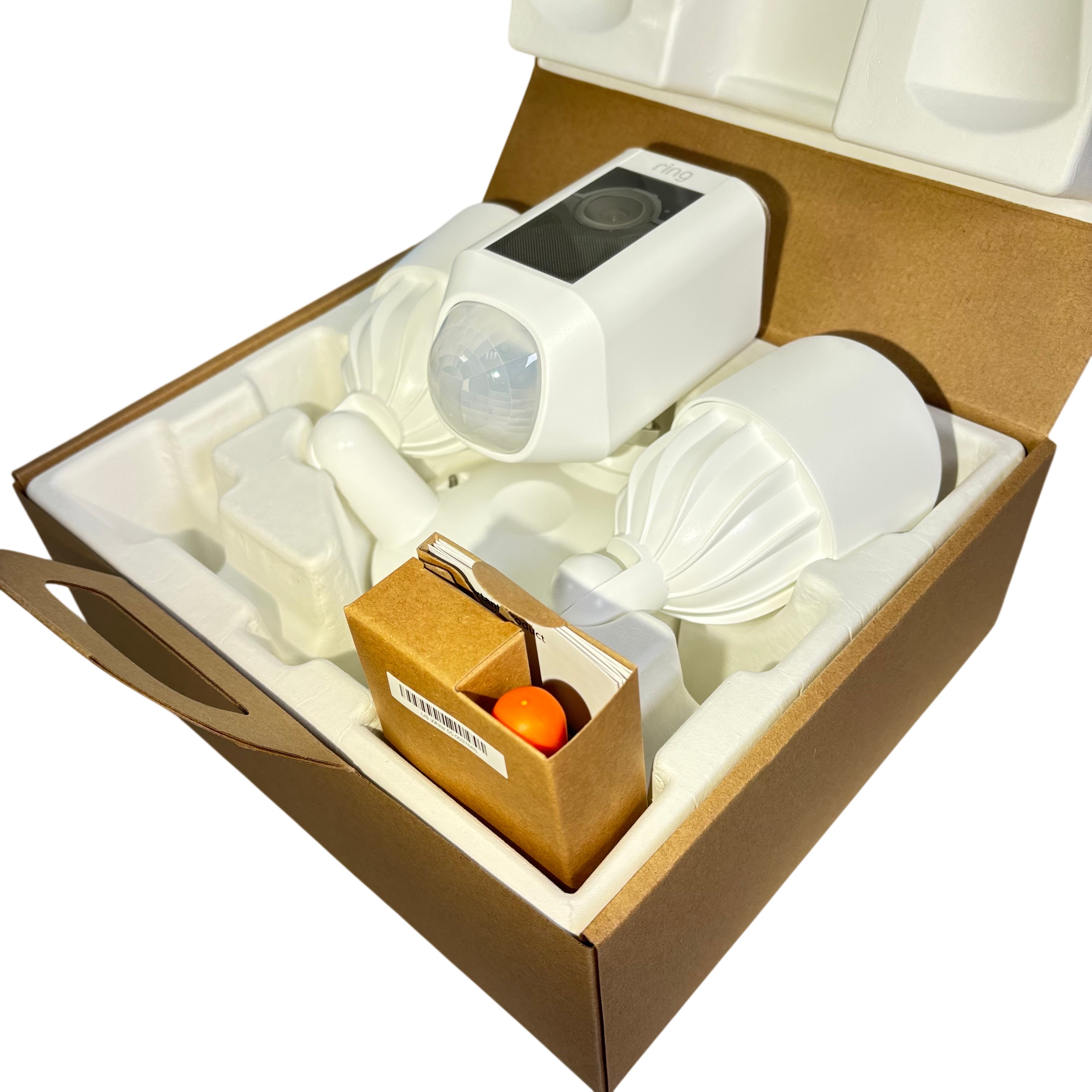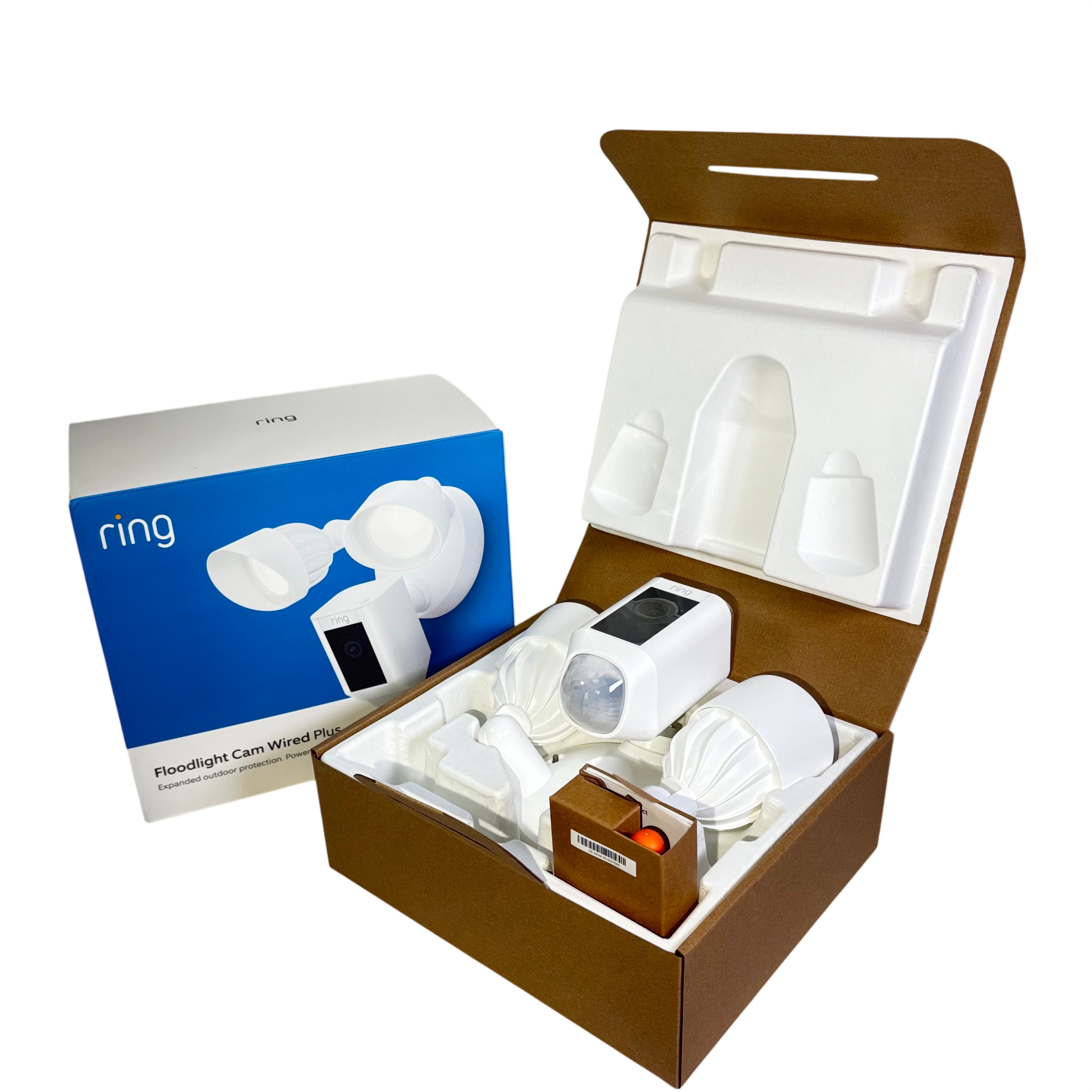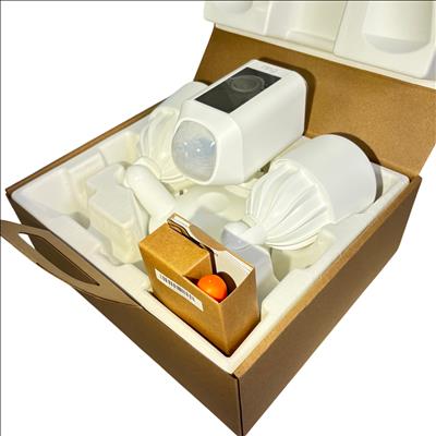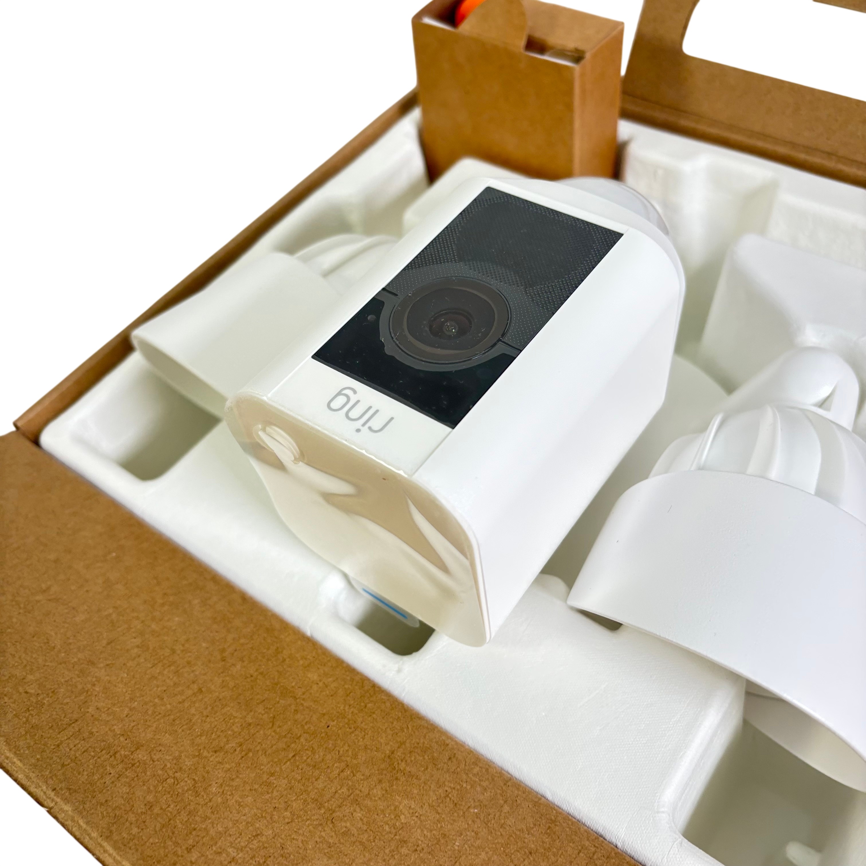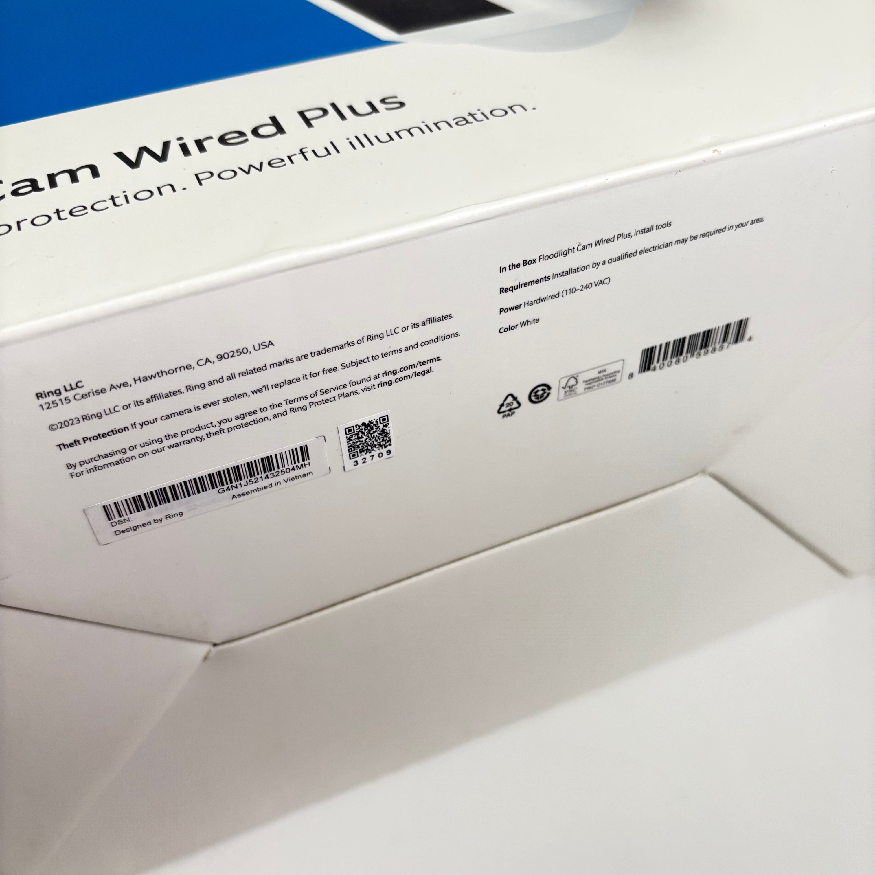 Ring Floodlight Cam Plus Outdoor Wired 1080p Surveillance Camera (Model B08F6GPQQ7) delivers high-definition video monitoring combined with powerful motion-activated floodlights. This hardwired security camera operates on 110-240 VAC power for uninterrupted performance and features two-way audio and night vision capabilities. The package includes the Floodlight Cam Wired Plus, installation tools, mounting hardware, and user manual, making it easy to set up professional-grade outdoor security. Its weather-resistant design ensures reliable protection in various climates, ideal for home or business surveillance.
