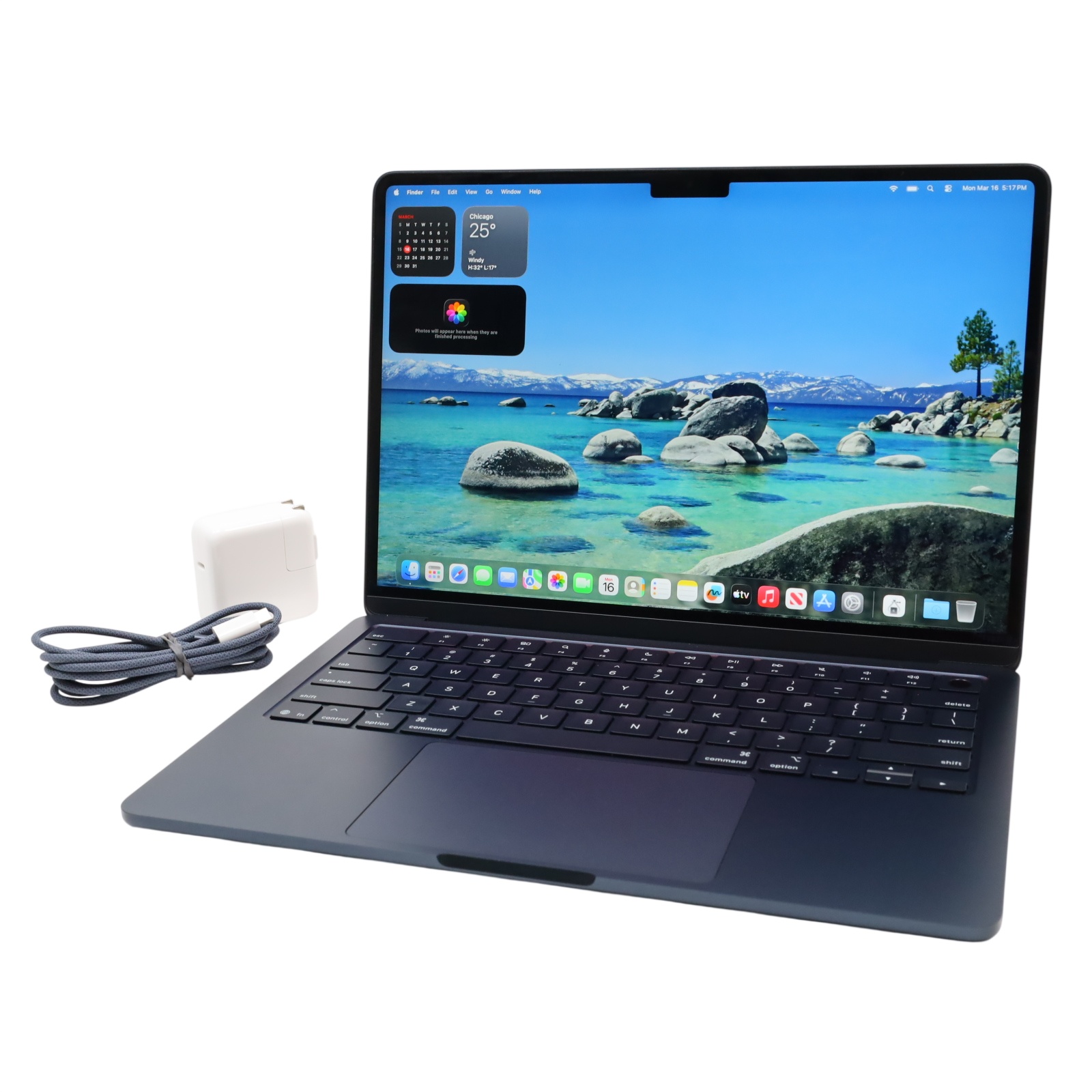 A portable computer powered by the M4 chip, featuring a 10-core CPU and an 8-core GPU, alongside a 16-core Neural Engine. It includes 16GB of unified RAM and 256GB of SSD storage, and displays visuals on a 13.6" Liquid Retina display with a 2560 x 1664 resolution and 500 nits of brightness. Connectivity options include 2 x Thunderbolt / USB4 ports, alongside Wi-Fi 6E and Bluetooth 5.3. Additional features include a FaceTime Full HD 1080p camera, a backlit Magic Keyboard, a Force Touch trackpad with a Touch ID sensor, and comes preloaded with macOS.