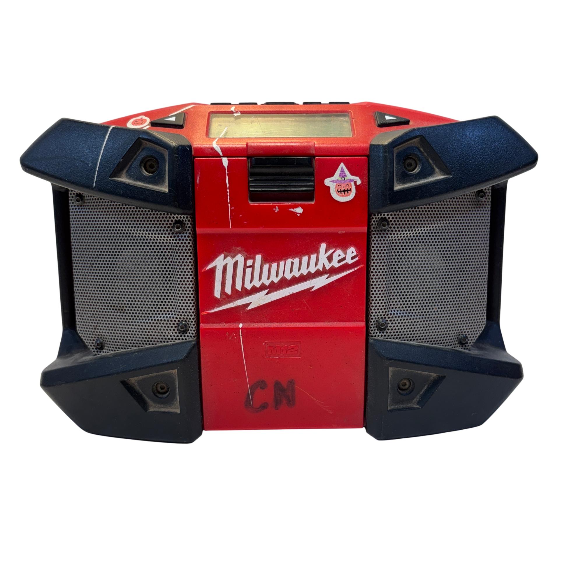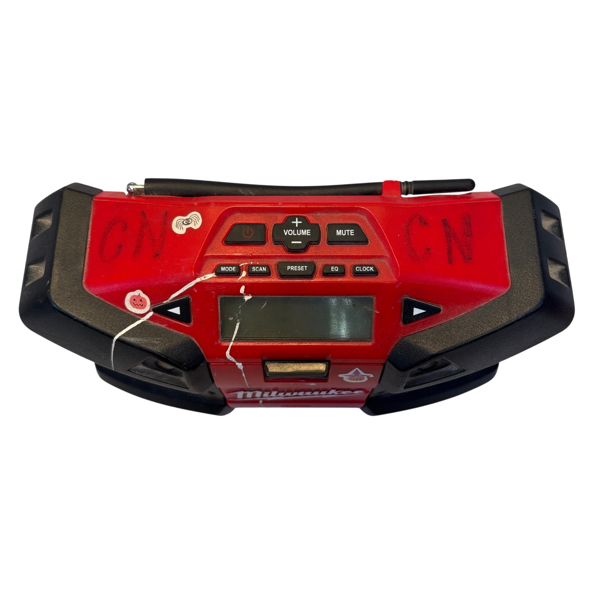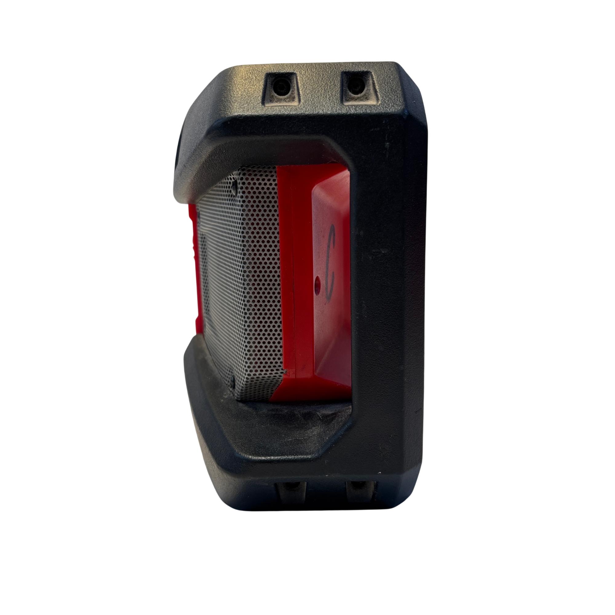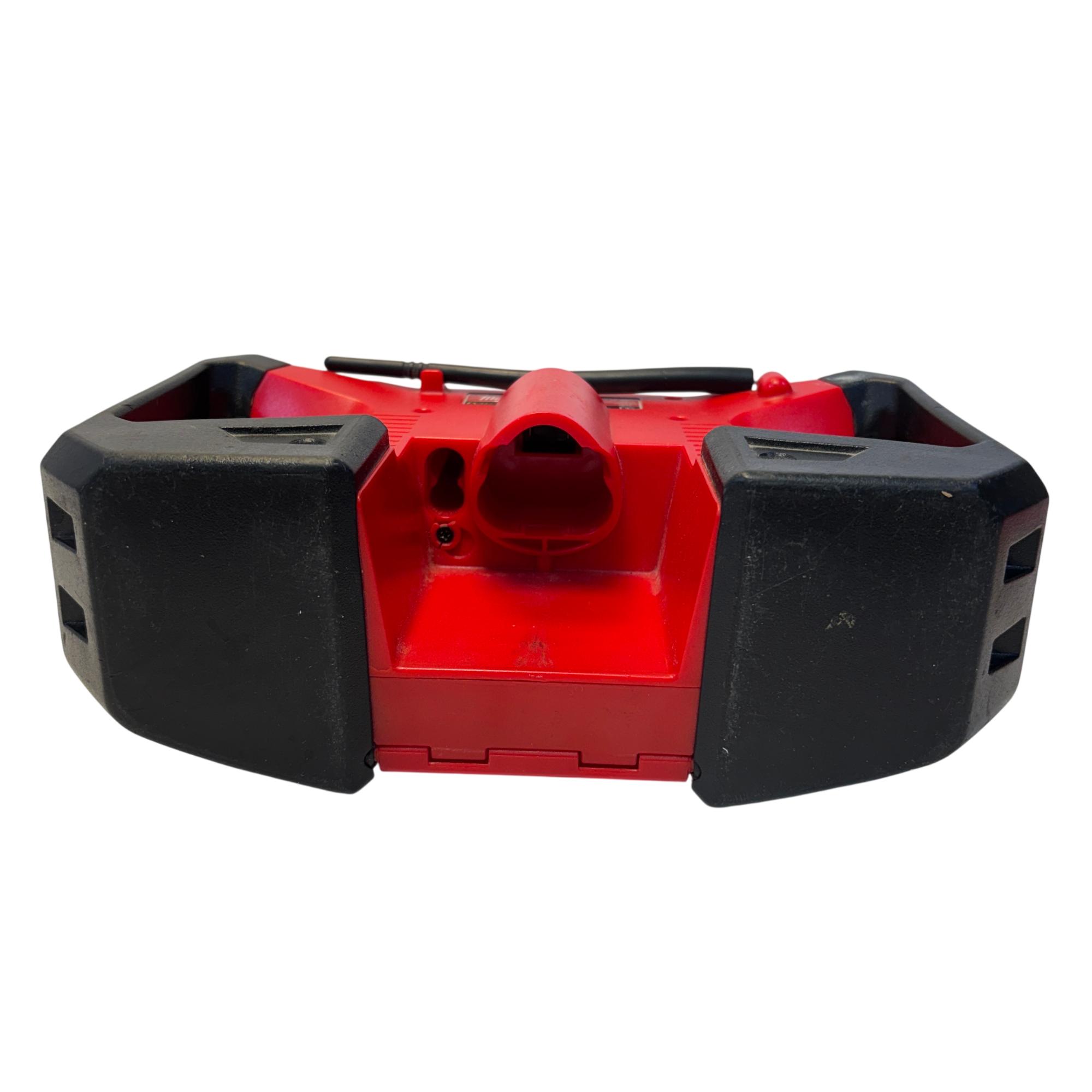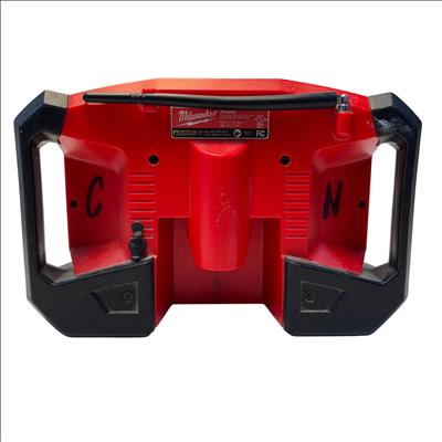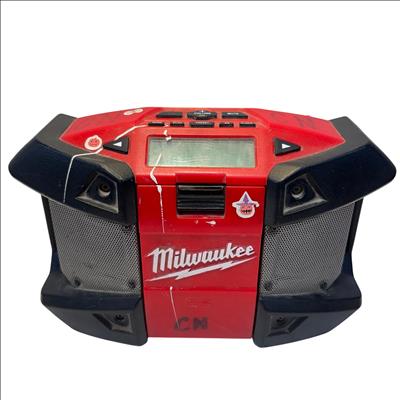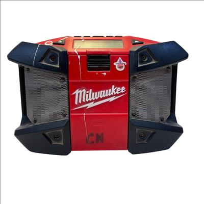 The Milwaukee M12 Cordless Jobsite Radio is a durable and portable radio designed for tough work environments. Featuring red and black rugged construction with easy-to-use controls including volume, mute, mode, scan, and preset functions, it delivers clear audio on job sites. This compact radio is optimized for use in automotive and construction settings, providing reliable sound in a compact form factor.