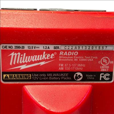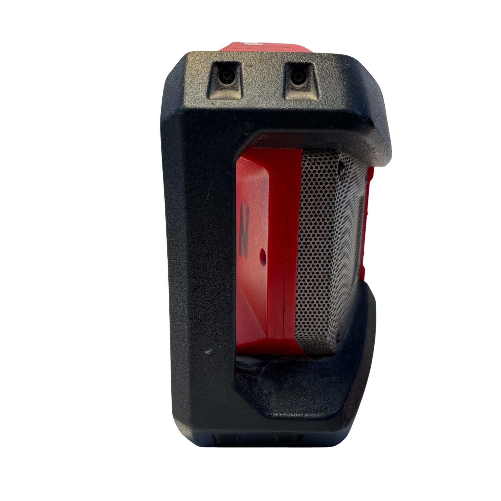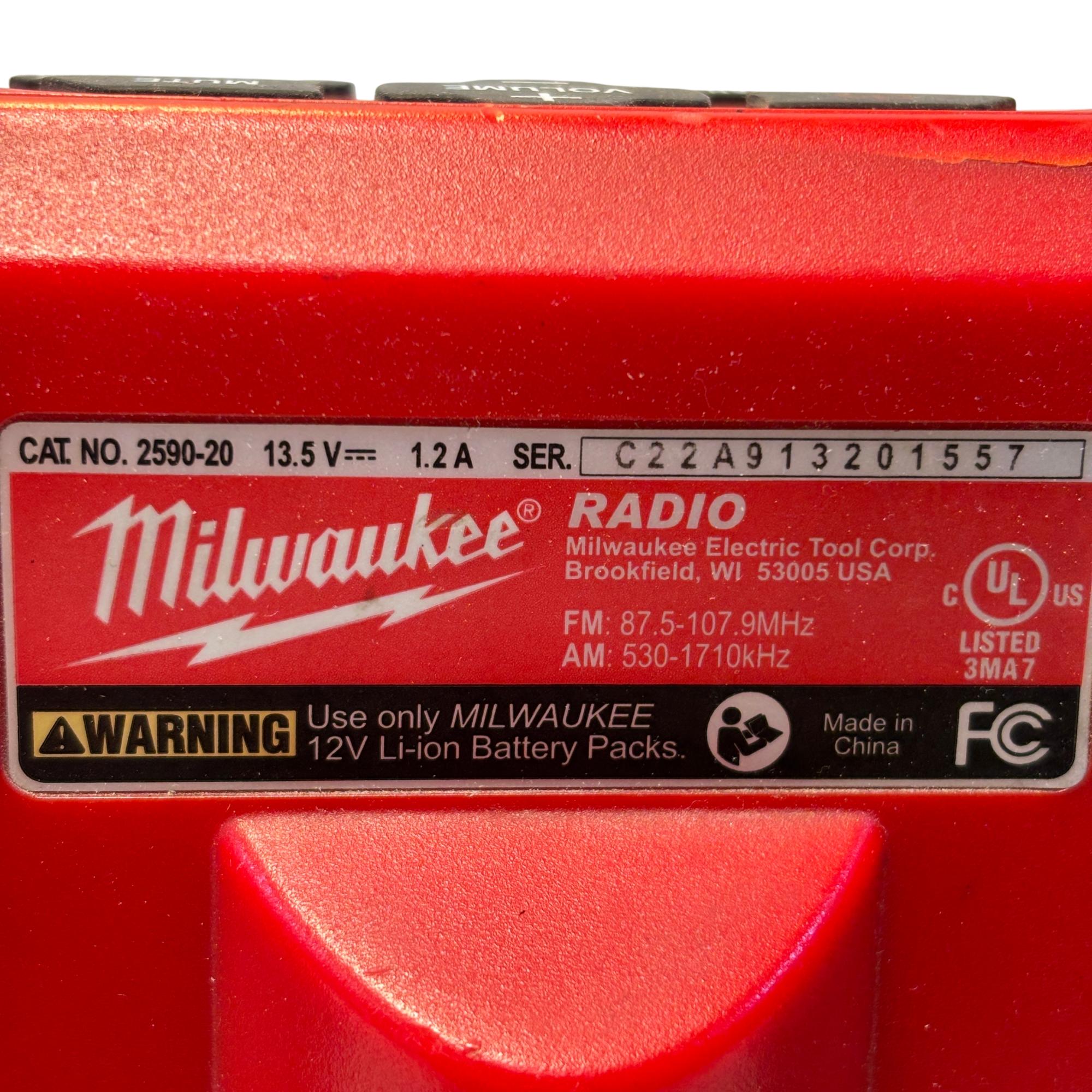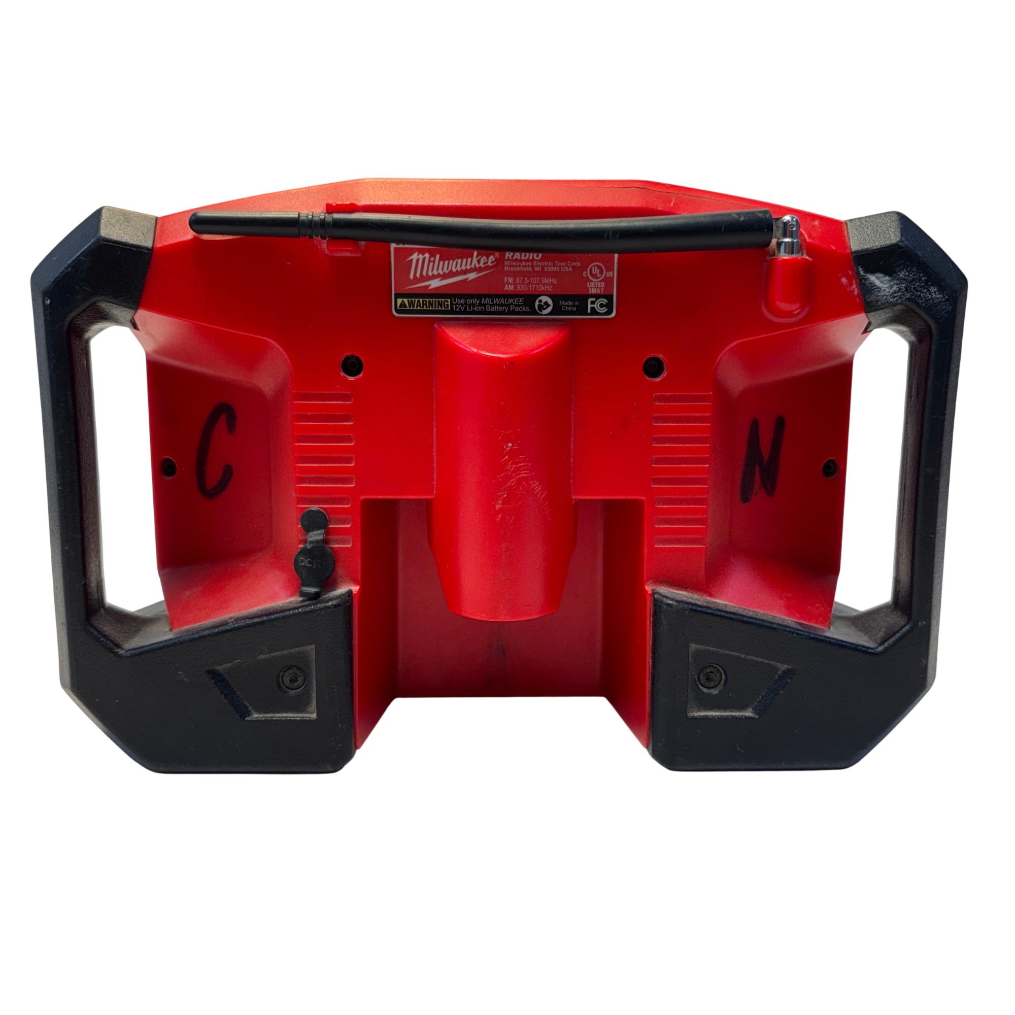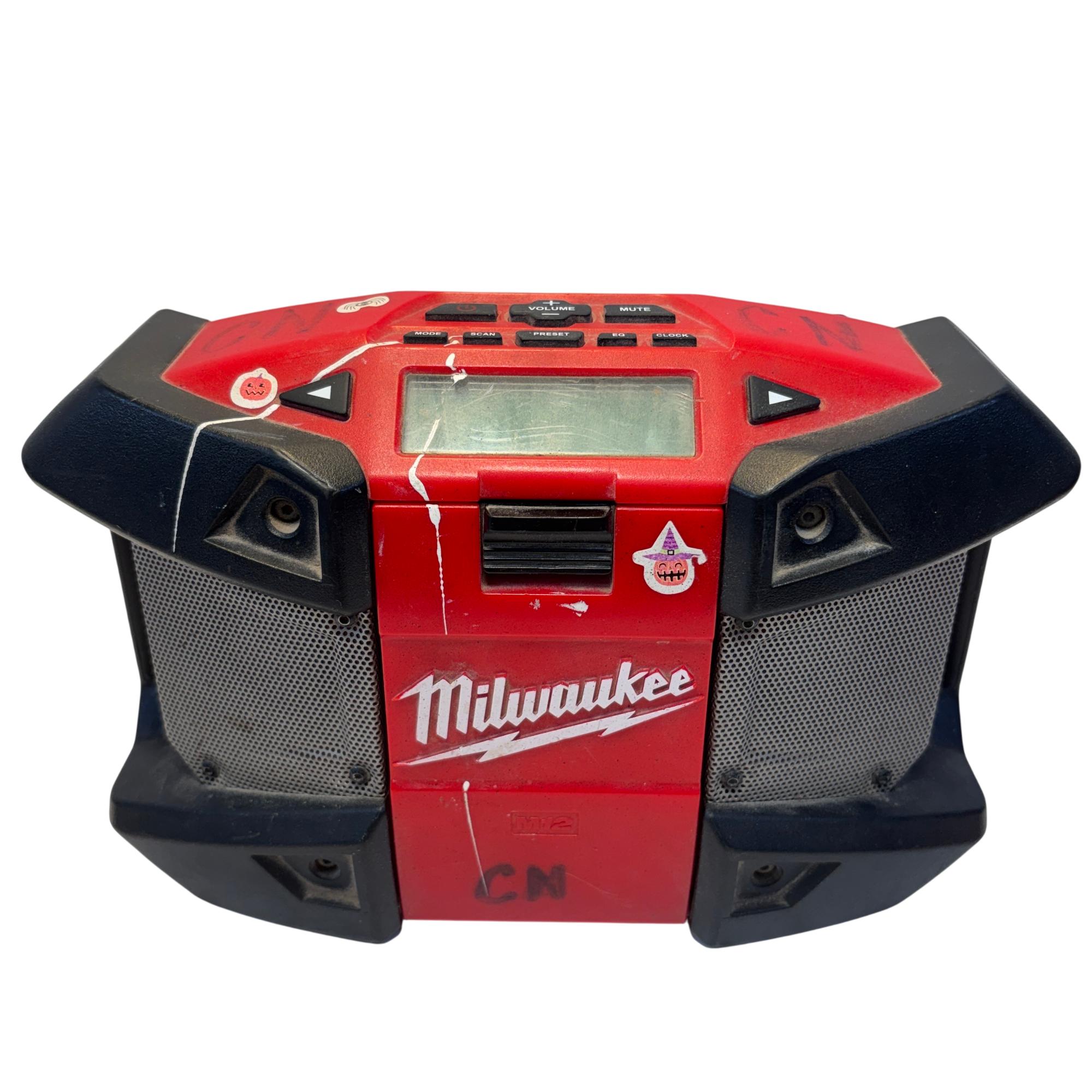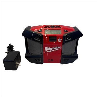 The Milwaukee M12 Cordless Jobsite Radio is a durable and portable radio designed for tough work environments. Featuring red and black rugged construction with easy-to-use controls including volume, mute, mode, scan, and preset functions, it delivers clear audio on job sites. This compact radio is optimized for use in automotive and construction settings, providing reliable sound in a compact form factor.