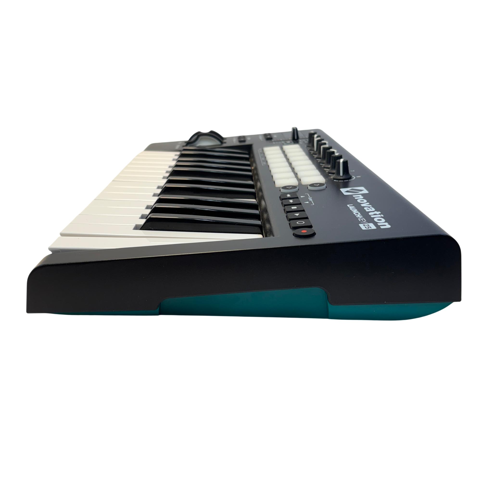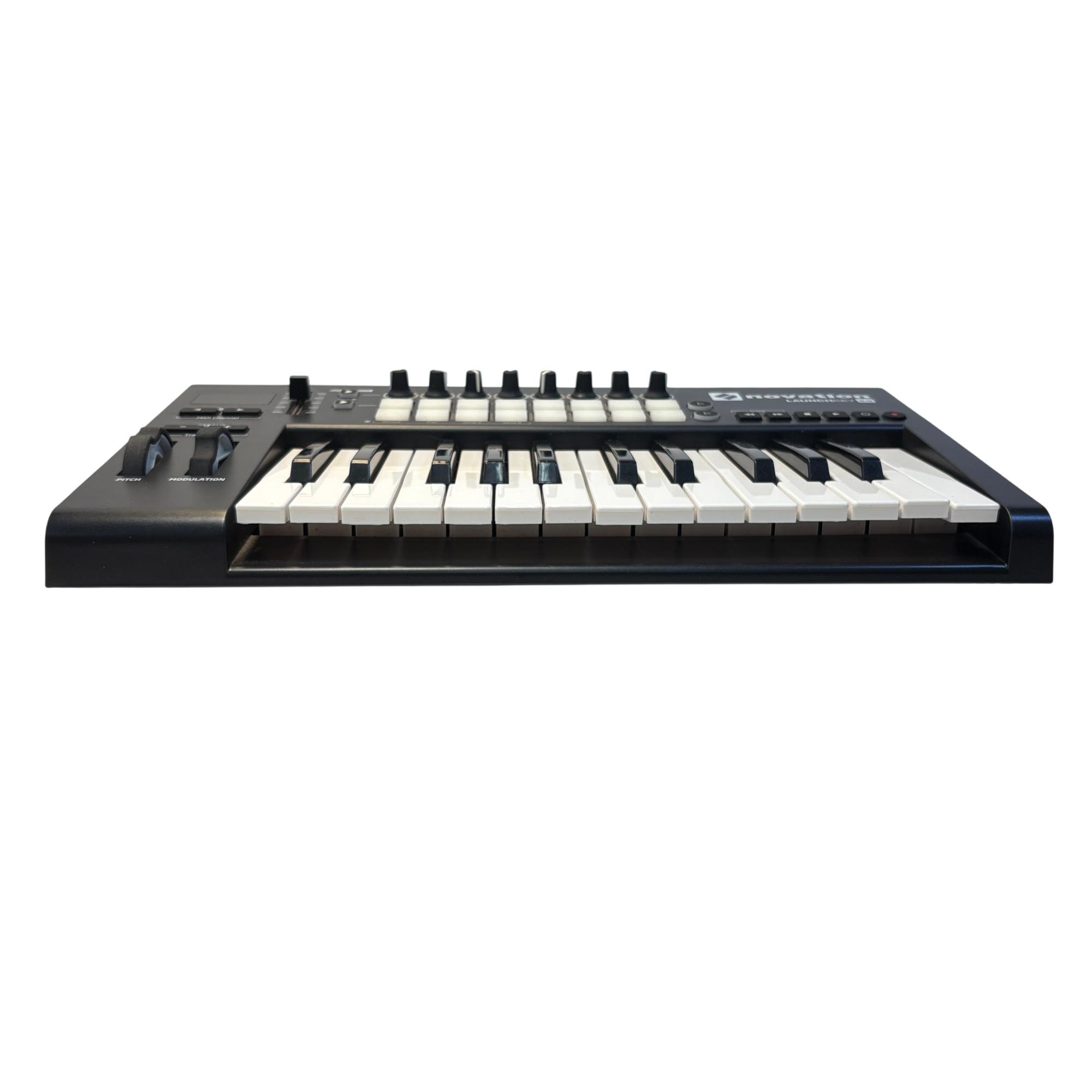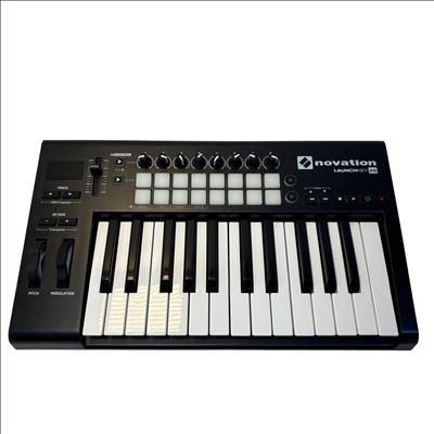 The Novation Launchkey 25 MK2 USB MIDI Keyboard Controller is a compact and versatile music production tool designed for seamless integration with Ableton Live and other digital audio workstations. Featuring a 25-key velocity-sensitive keyboard, this controller offers extensive control options, including assignable knobs and pads, making it ideal for electronic music creators and performers. Its sleek black and white design ensures both style and functionality in studio or live settings.