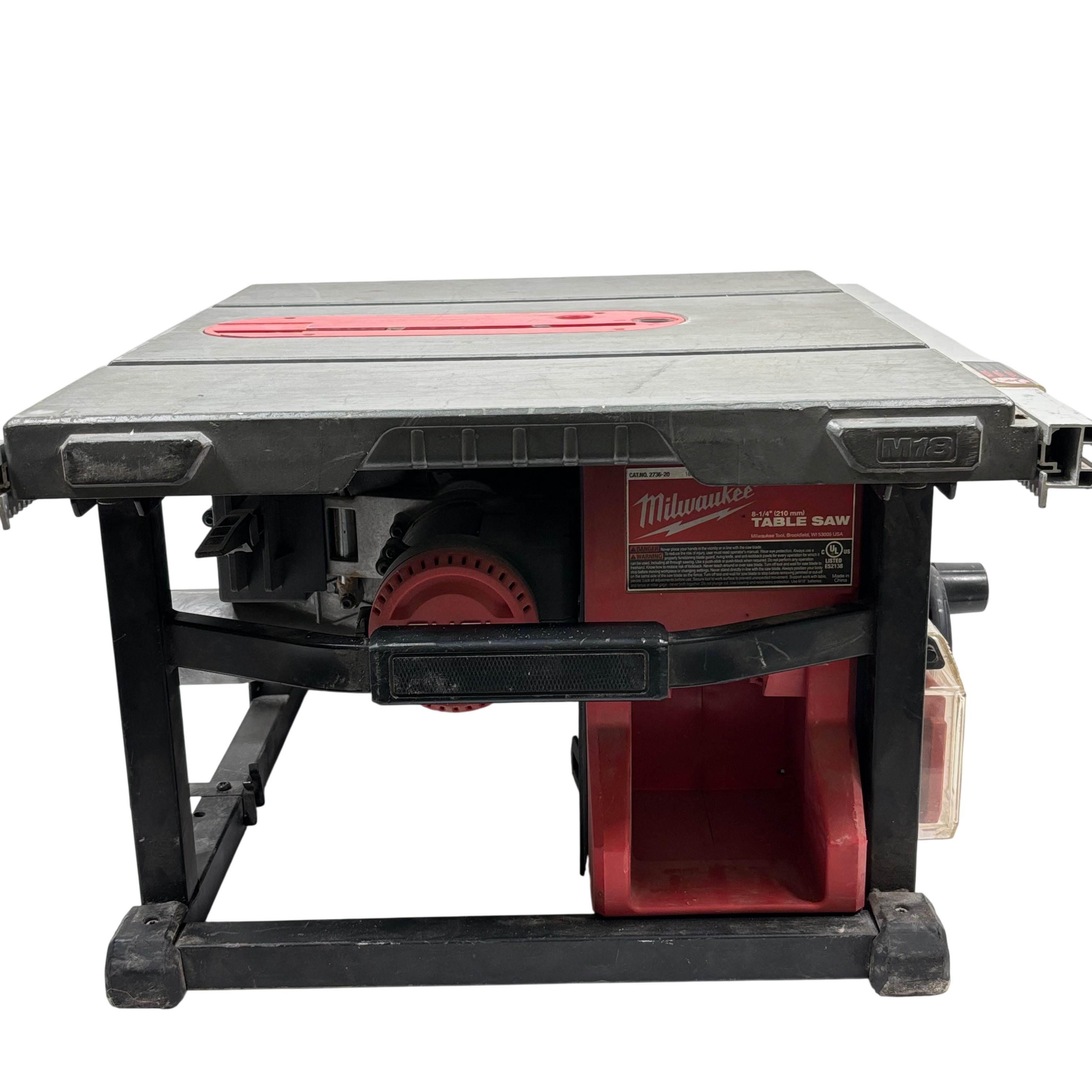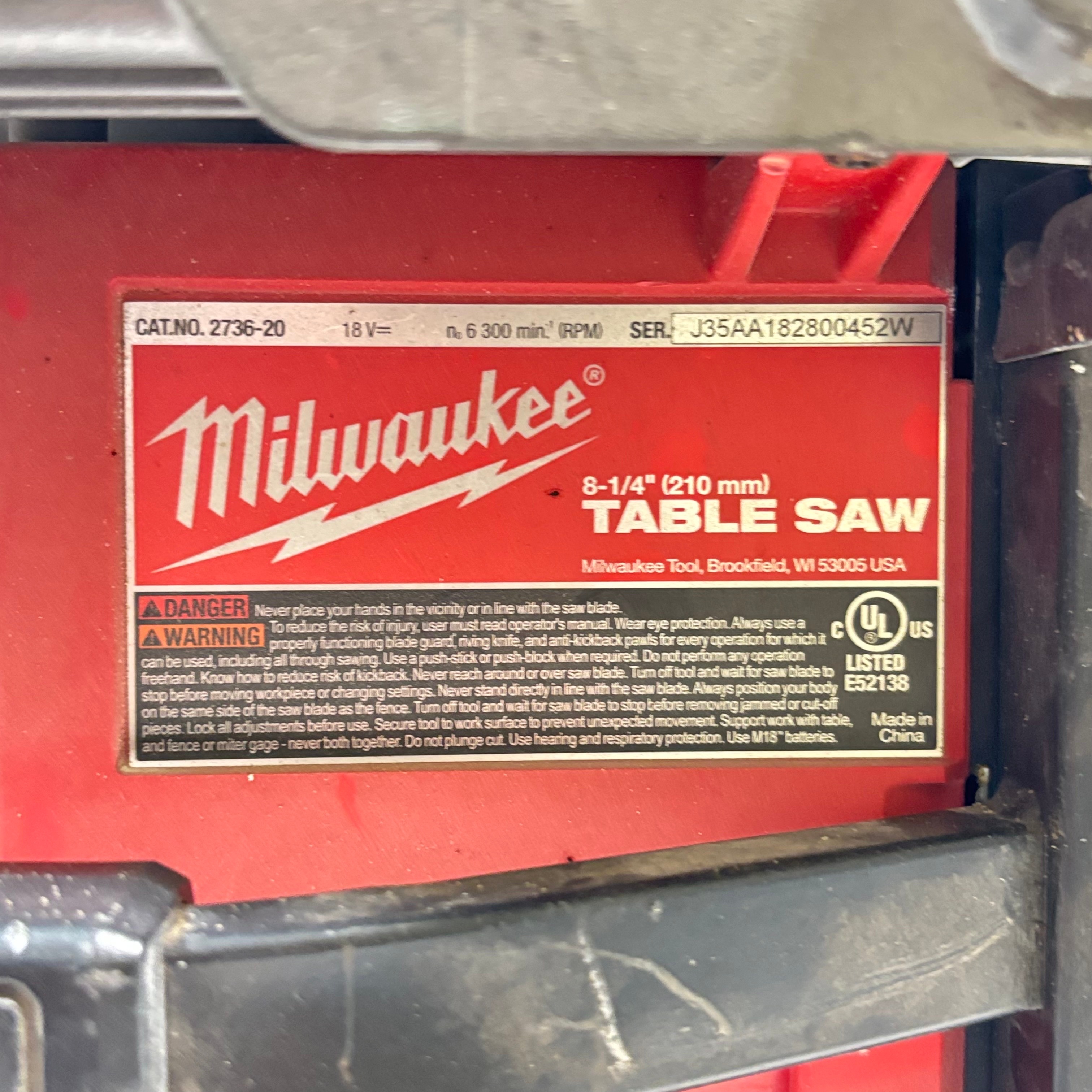 The Milwaukee 2736-20 Table Saw features an 8-1/4 inch blade powered by an 18V M18 battery system, delivering up to 6,300 RPM for precise and efficient cutting. This cordless table saw includes the innovative ONE-KEY technology for tool customization and tracking, making it ideal for professional contractors and serious DIYers. The saw offers adjustable bevel cuts up to 45 degrees and comes with a foldable stand for easy transport and storage. Designed for portability without sacrificing power, this Milwaukee table saw is perfect for on-site woodworking and remodeling projects.