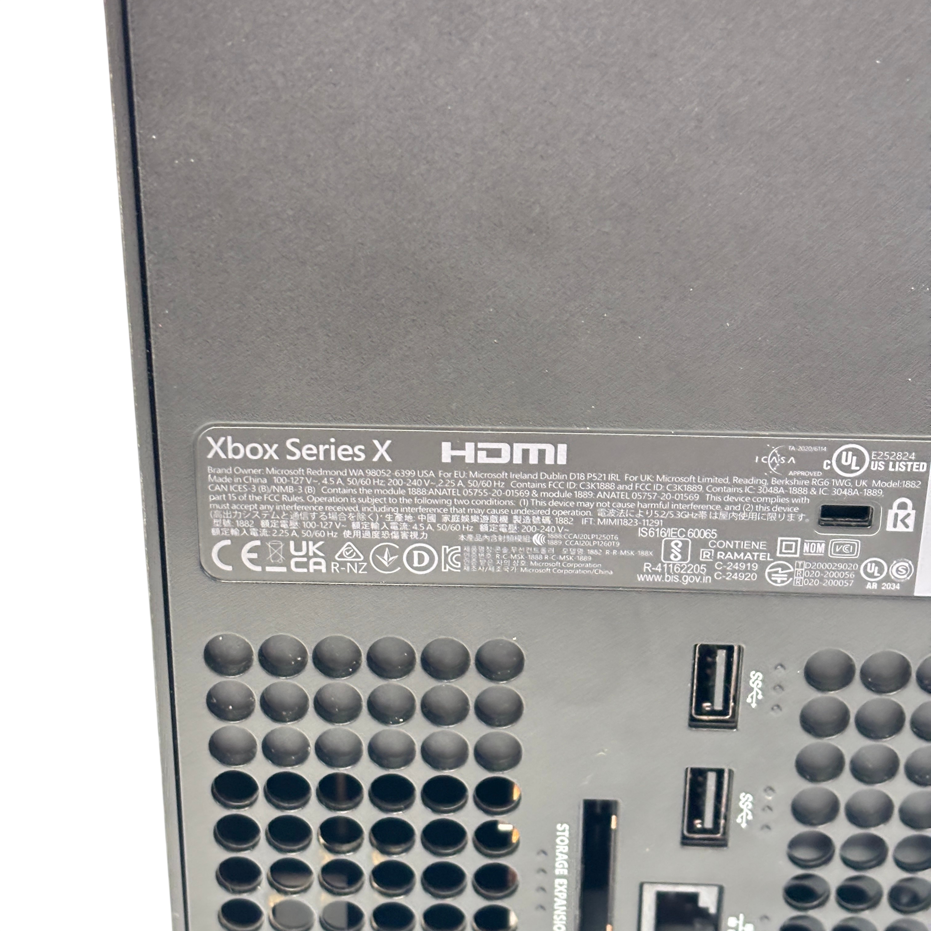 Microsoft Xbox Series X is a powerful next-generation gaming console designed for immersive 4K gaming experiences. This model features multiple USB ports, an Ethernet port, HDMI output, and expandable storage options to enhance your gaming setup. The console comes in a sleek black finish and includes the power cable but does not include a controller. Ideal for gamers looking to upgrade to the latest Xbox hardware with fast load times and high performance.