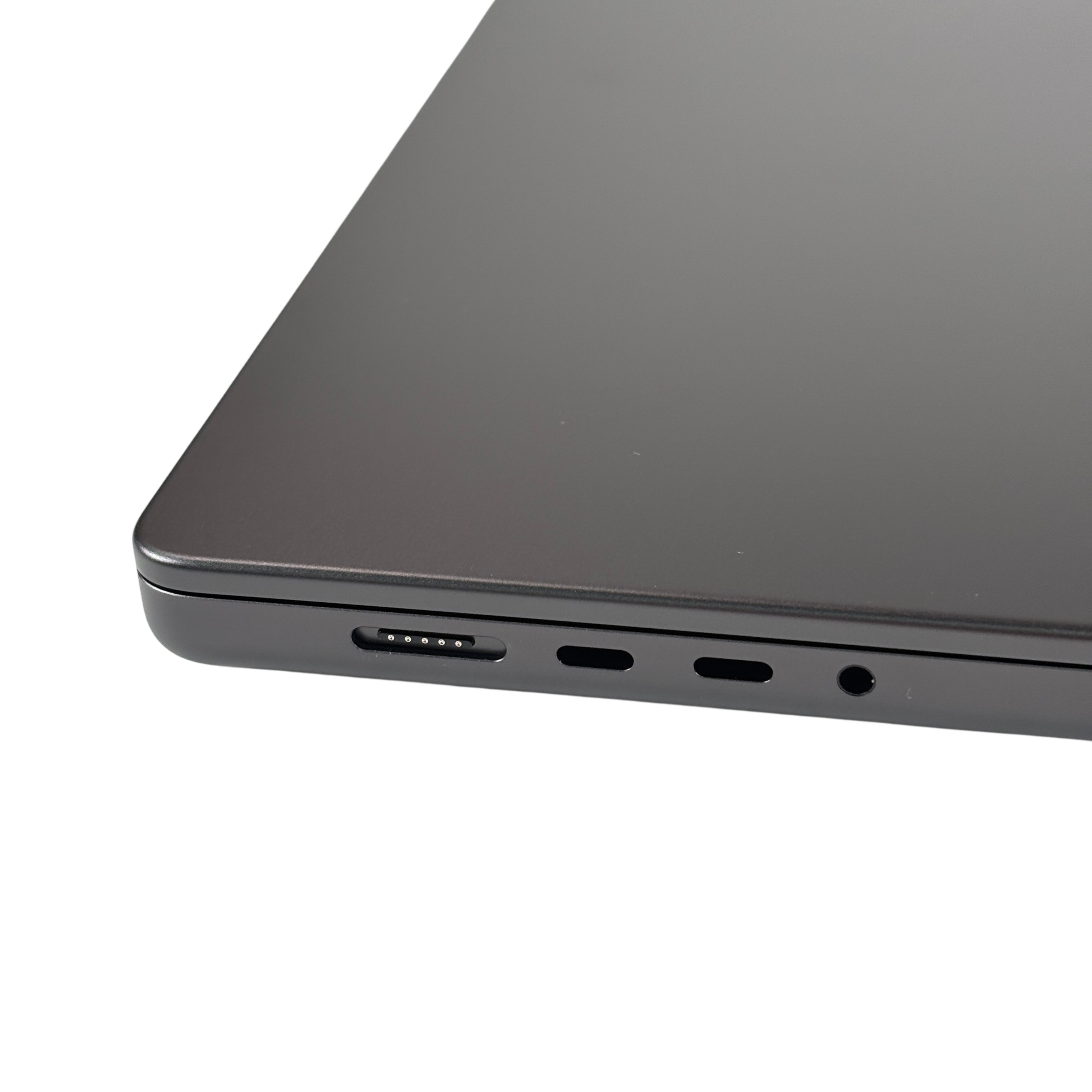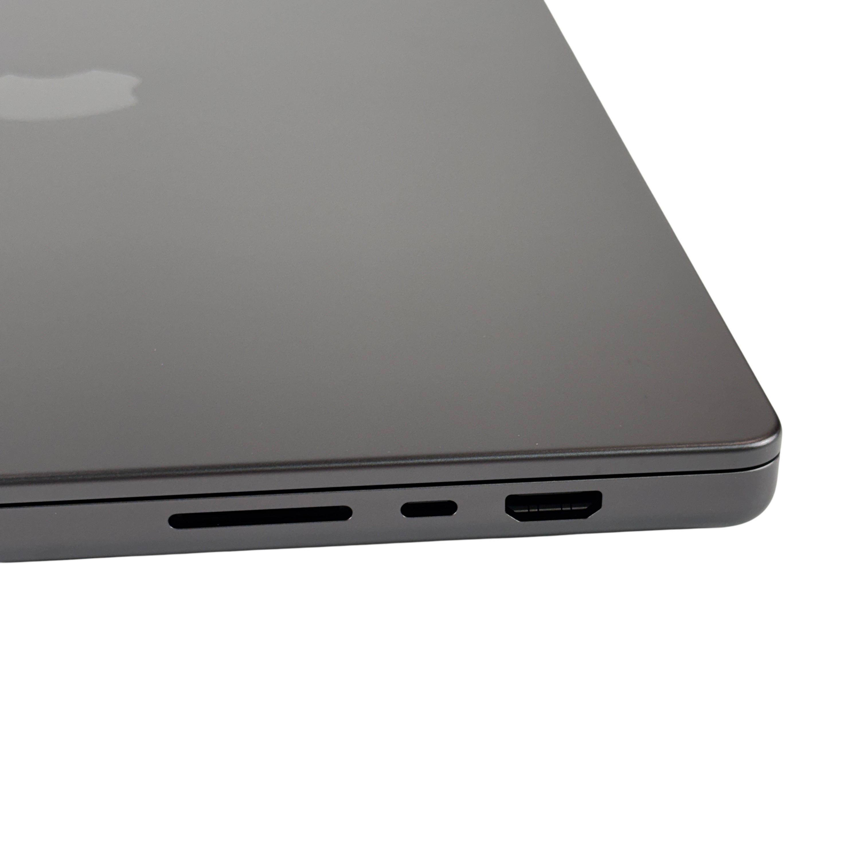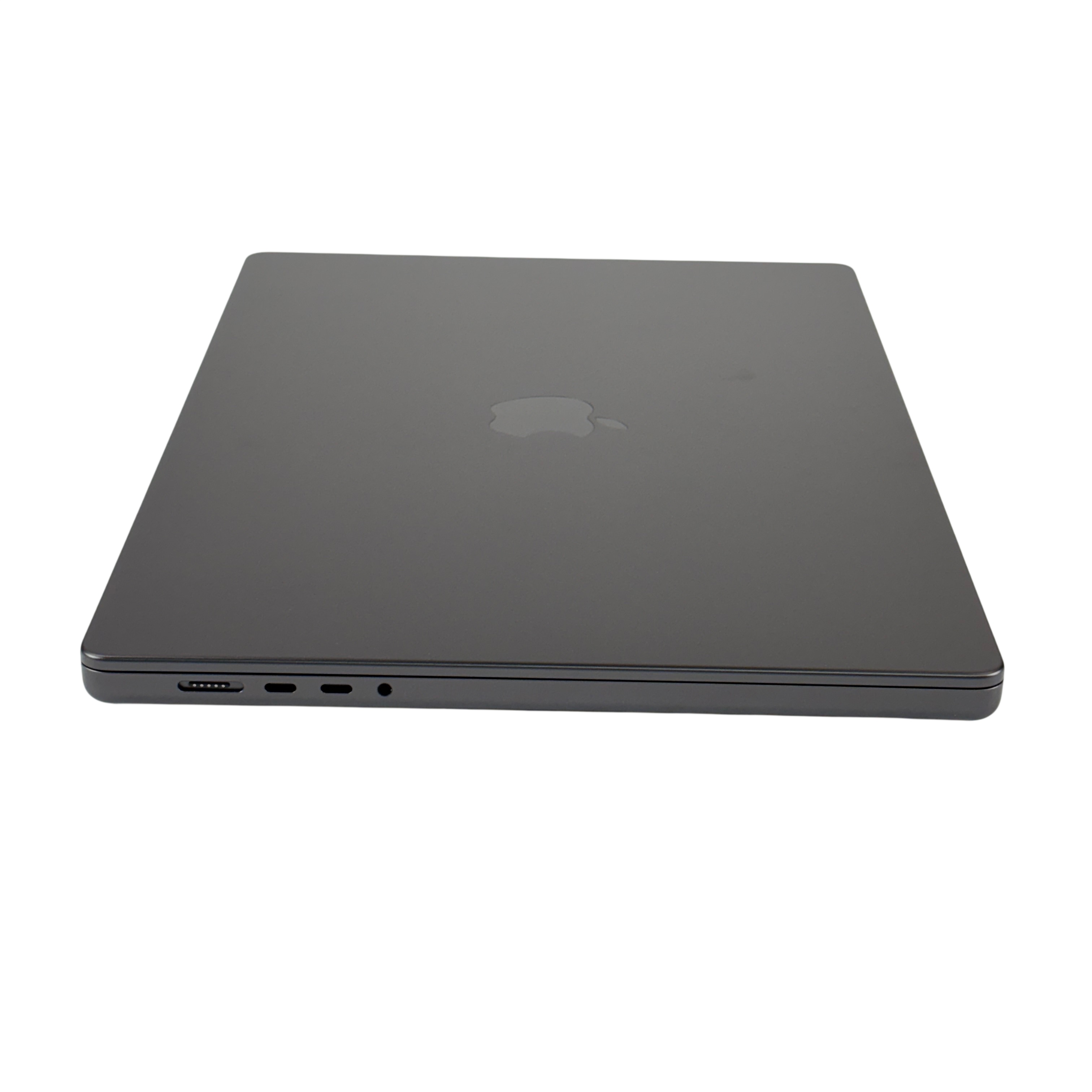 The 2024 Apple MacBook Pro 16-Inch features a 4.5 GHz Apple M4 Pro processor with 14 CPU cores and a 20-core GPU, paired with 24GB of RAM and a 512GB SSD. It has a 16.2" Liquid Retina XDR display with 3456x2234 resolution, 1,000,000:1 contrast ratio, and up to 1600 nits peak brightness. The laptop includes a 12MP Center Stage camera, six-speaker high-fidelity sound system with force-cancelling woofers, backlit keyboard with Touch ID, and a Force Touch trackpad. Connectivity options include Wi-Fi 6E, Bluetooth 5.3, three Thunderbolt 5 ports, HDMI 2.1, SDXC card slot, 3.5mm headphone jack, and MagSafe 3 charging.