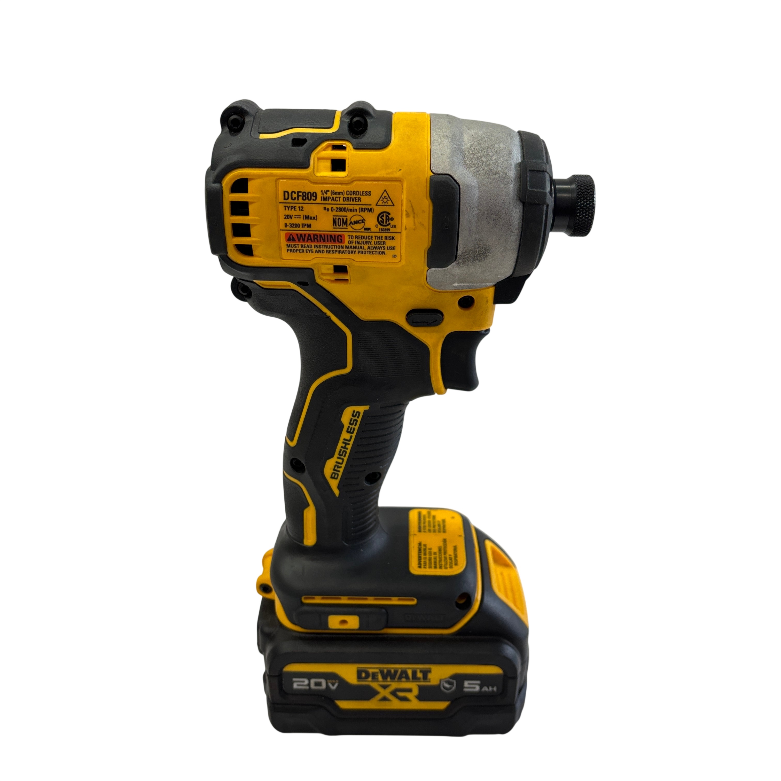 The DeWalt DCF809 20V MAX XR Cordless Impact Driver features a powerful brushless motor delivering up to 2800 RPM and 3200 impacts per minute for efficient fastening. This compact 1/4 inch (6mm) hex chuck impact driver is part of the Atomic Compact Series, designed for tight spaces and extended use. The kit includes two 20V MAX XR 5.0 Ah lithium-ion batteries and a fast charger, ensuring you have ample runtime and quick recharge capability. Ideal for both professional tradesmen and DIY enthusiasts, this impact driver offers durability, power, and portability in a lightweight design.