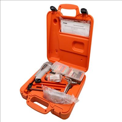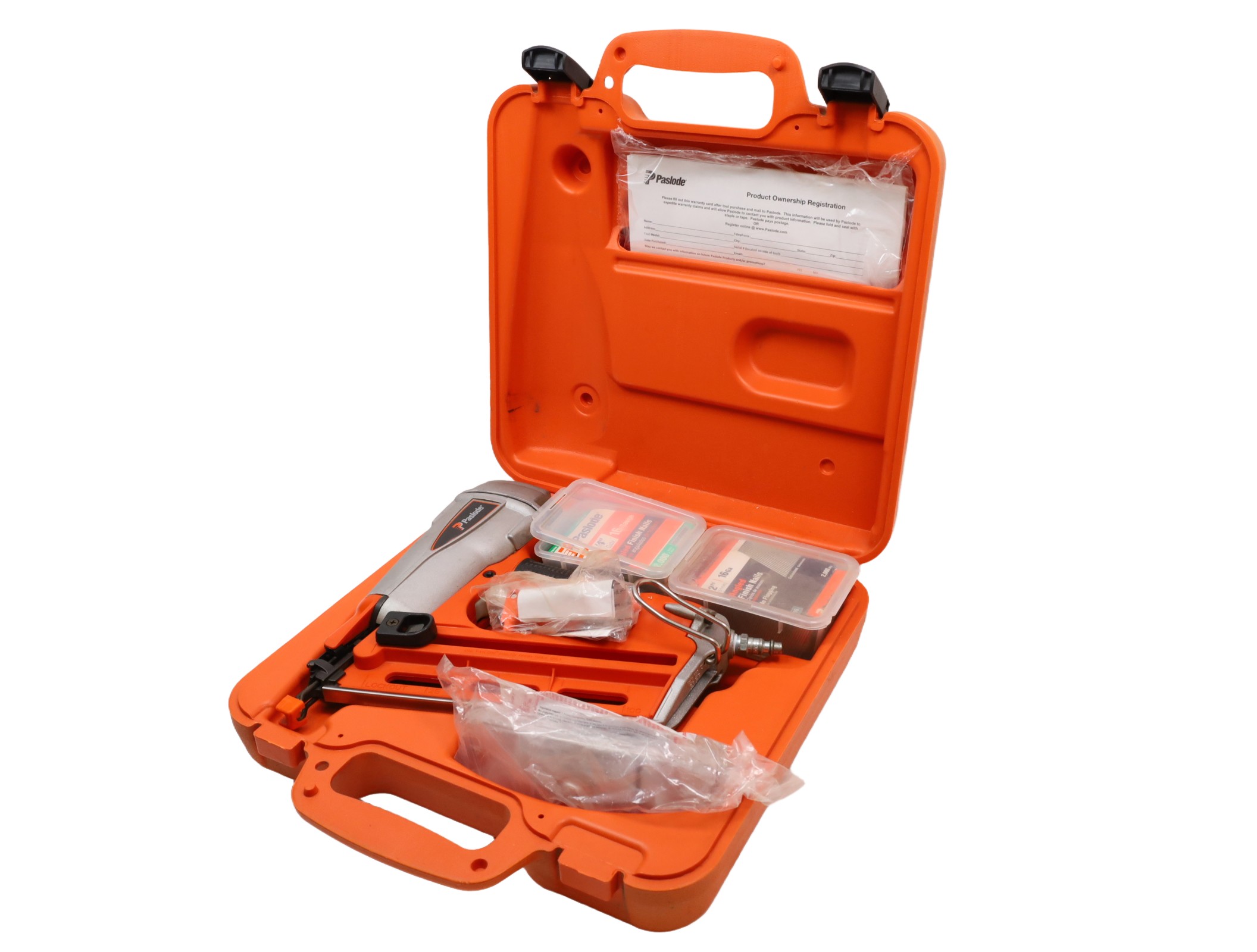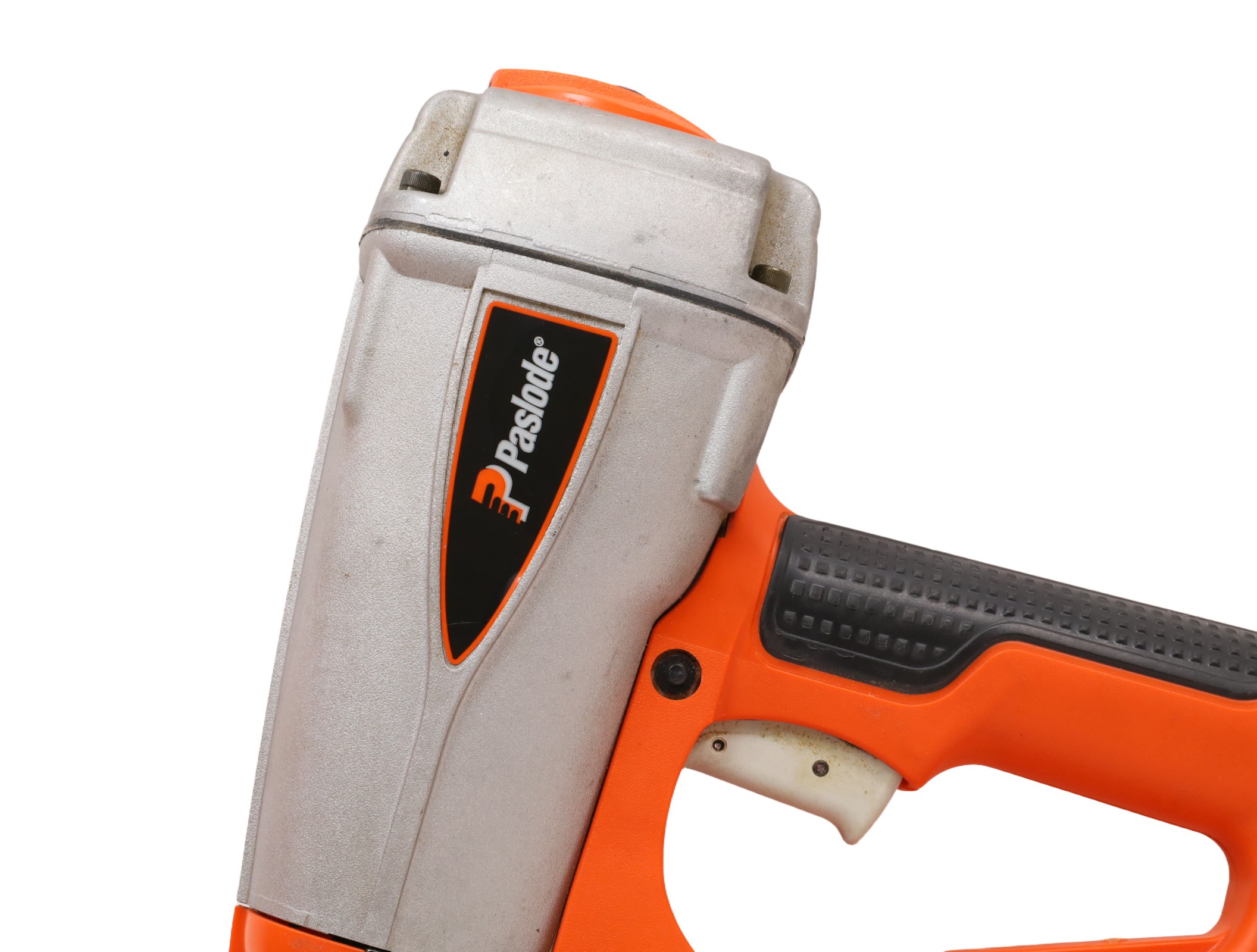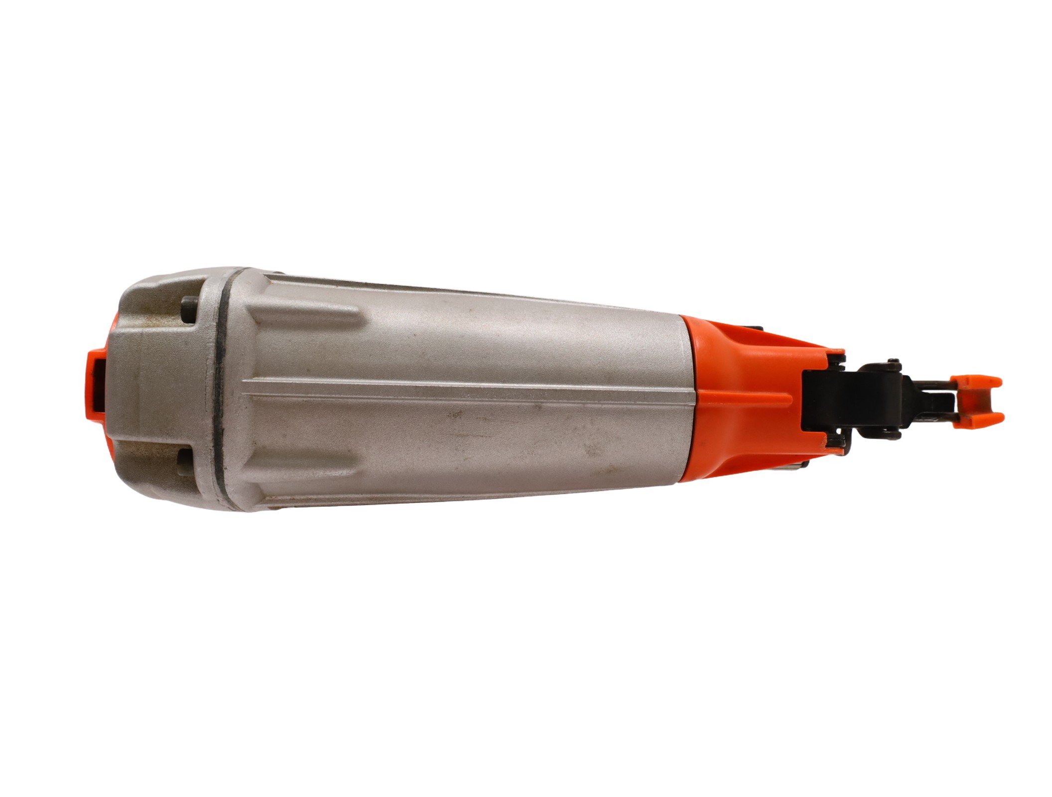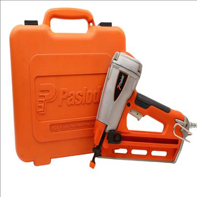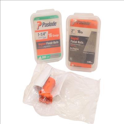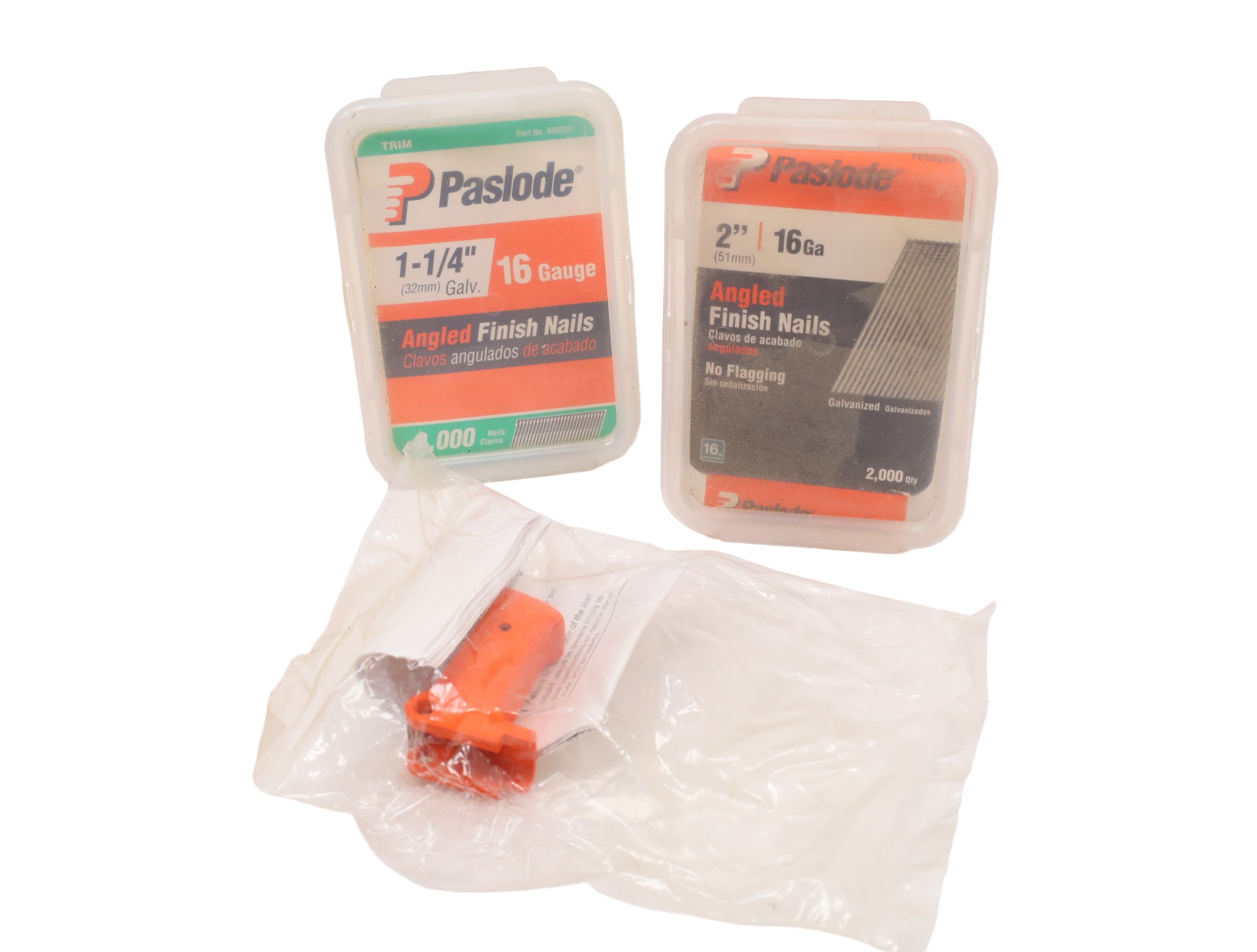 A 16-gauge pneumatic air angled finish nailer designed for fasteners ranging from 1-1/4 inches to 2-1/2 inches. It features a magnesium housing and operates within a pressure range of 80 to 120 PSI through a 3/8-inch NPT air inlet. The tool utilizes a trigger actuated firing type and drives 16 gauge nails to reduce wood splitting and leave smaller nail holes. This compact angled trim tool reaches into tighter areas compared to straight finish tools and weighs less than 4 pounds to assist in reducing user fatigue. The construction is durable and rugged for job site demands.