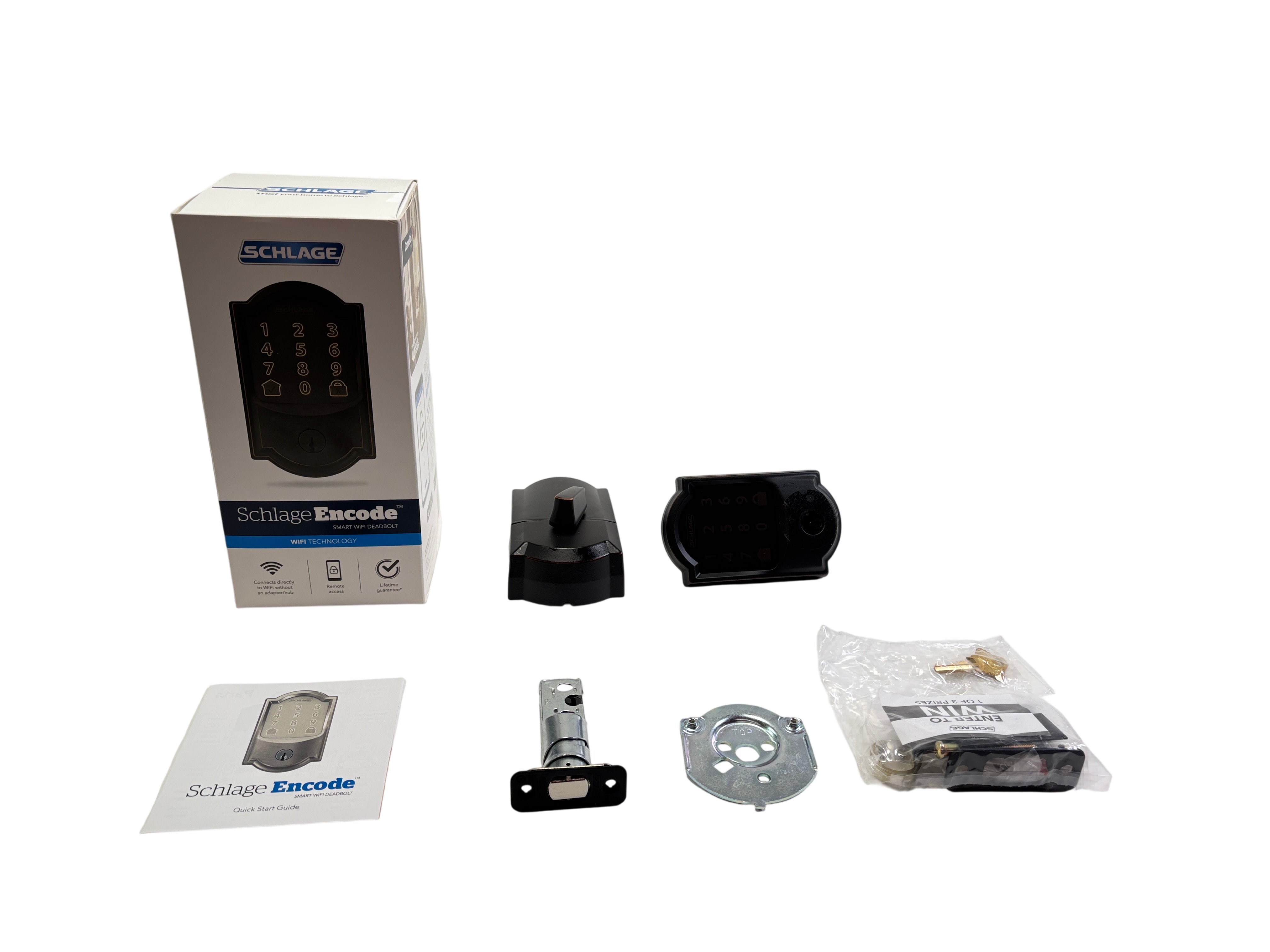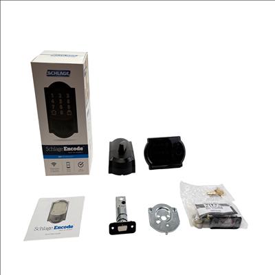 Schlage Encode WiFi Deadbolt Lock (Model BE489WB) offers secure keyless entry with built-in WiFi connectivity for remote access and control. This smart lock features a sleek black keypad for easy code entry and includes all necessary mounting hardware and keys for quick installation. Designed for convenience and security, it allows users to lock or unlock their door remotely via smartphone app, making it ideal for modern homes. The lock also comes with a lifetime guarantee, ensuring long-lasting reliability.