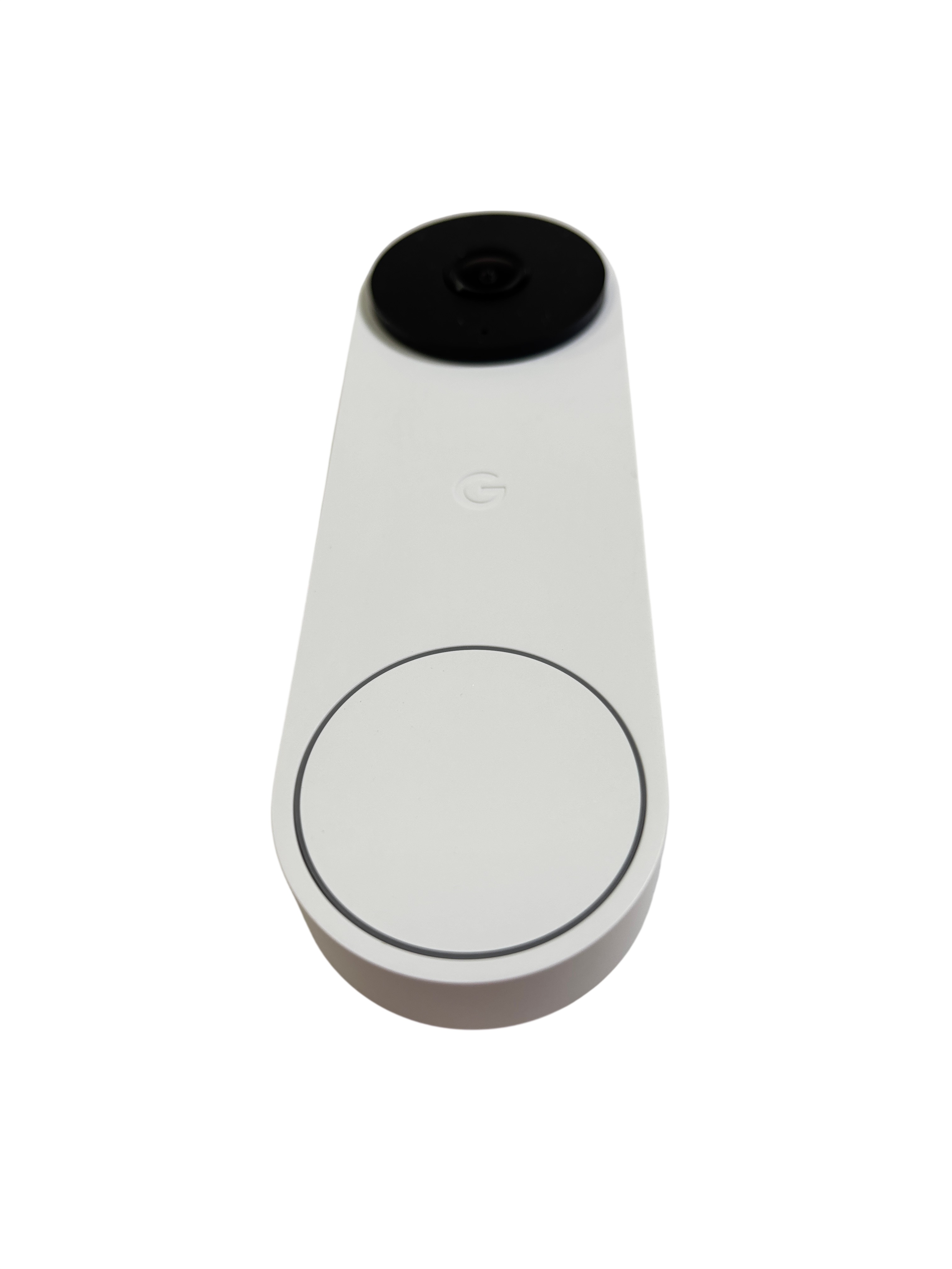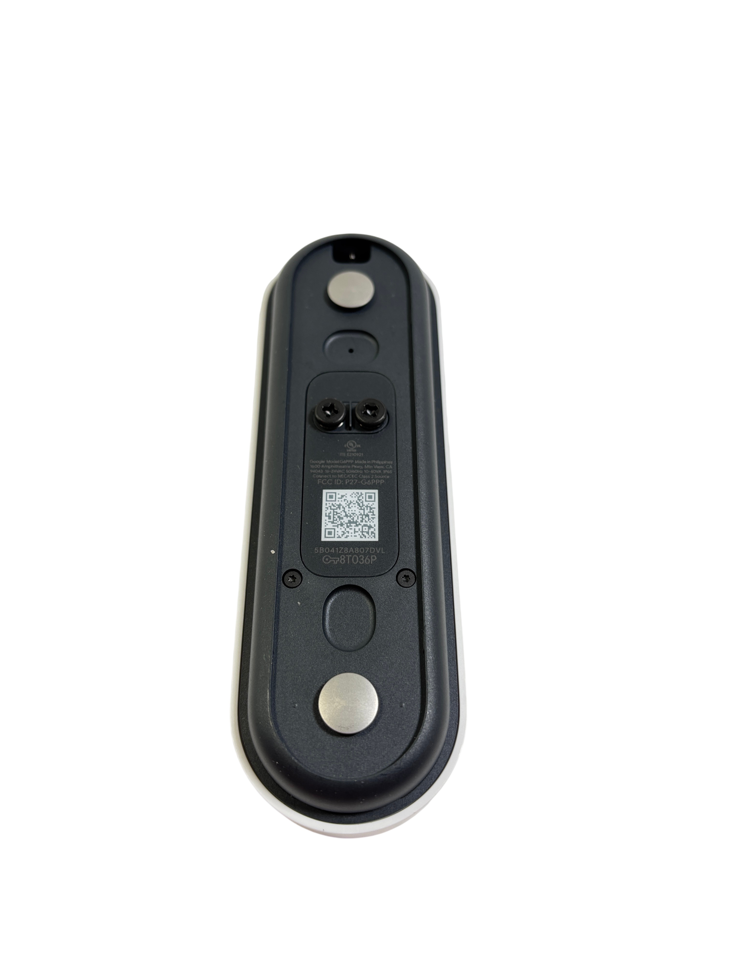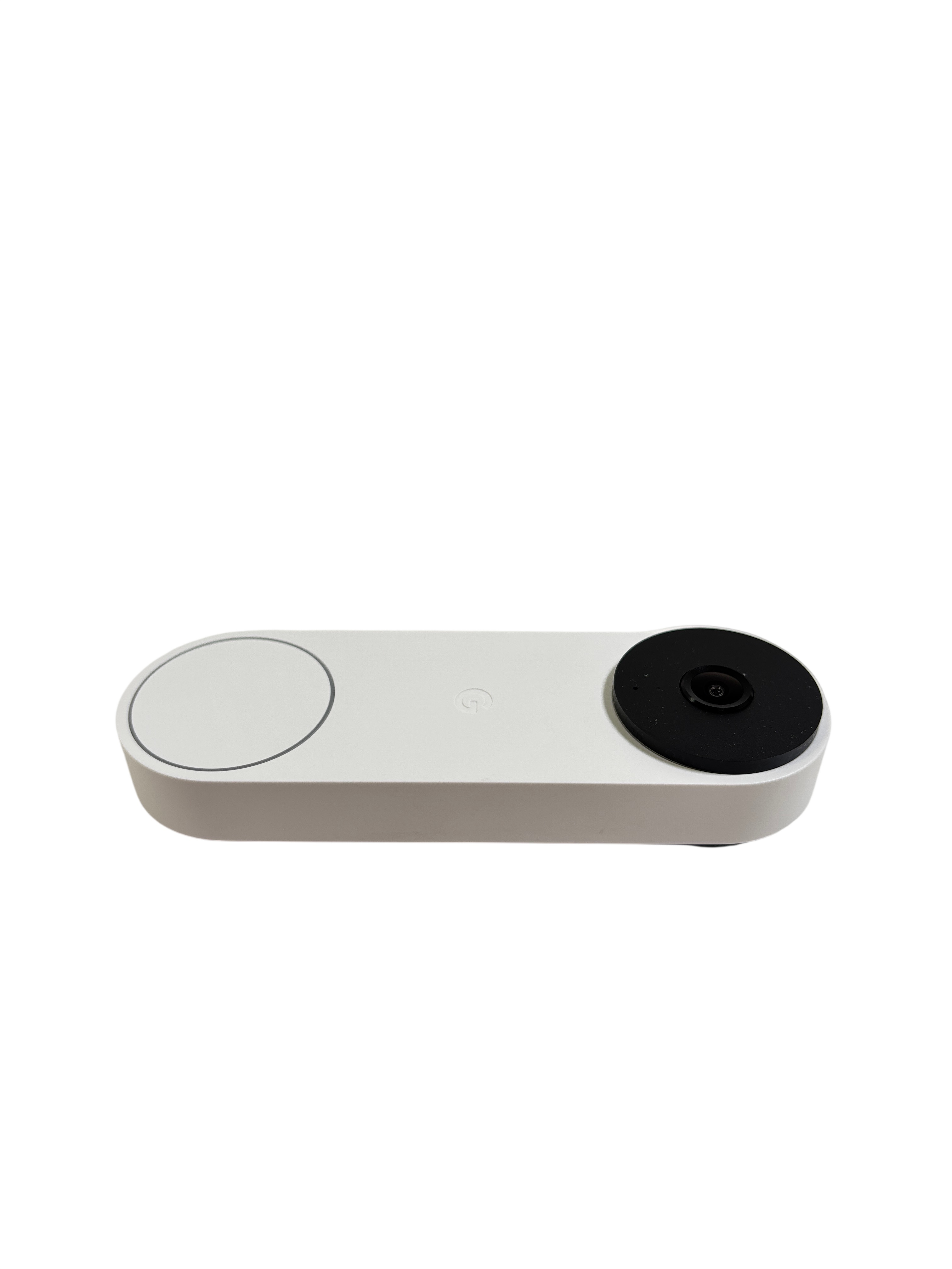 The Google Nest Doorbell is a wired video doorbell camera featuring 2K resolution for clear, detailed video monitoring. This sleek white and black doorbell includes night vision, motion detection, and two-way audio for enhanced home security and communication. The package comes complete with mounting brackets, adapters, screws, and installation guide, making setup straightforward. Ideal for homeowners seeking reliable wired video surveillance with smart features and high-quality video clarity.