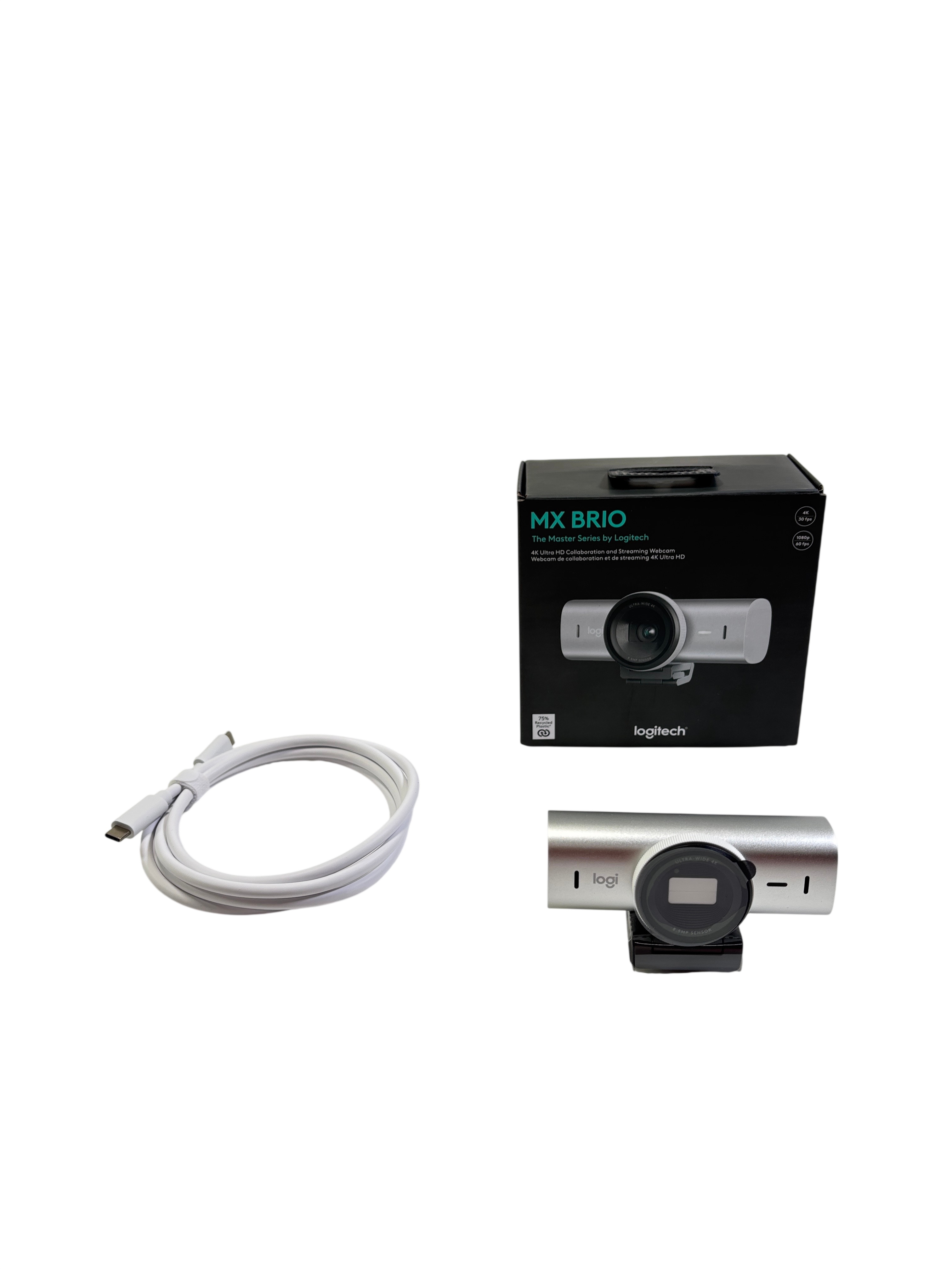 The Logitech MX BRIO 4K Ultra HD Webcam (Model 960-001550) delivers stunning 4K resolution video at 30 fps and smooth 1080p video at 60 fps, making it ideal for professional collaboration and streaming. Featuring an ultra-wide 4K lens and an 8.5 MP sensor, this webcam captures crystal-clear images with vibrant detail. It includes built-in microphones for clear audio and a privacy shutter for security. USB-C connectivity ensures easy setup and power, and the package includes the webcam and a USB-C cable for immediate use.