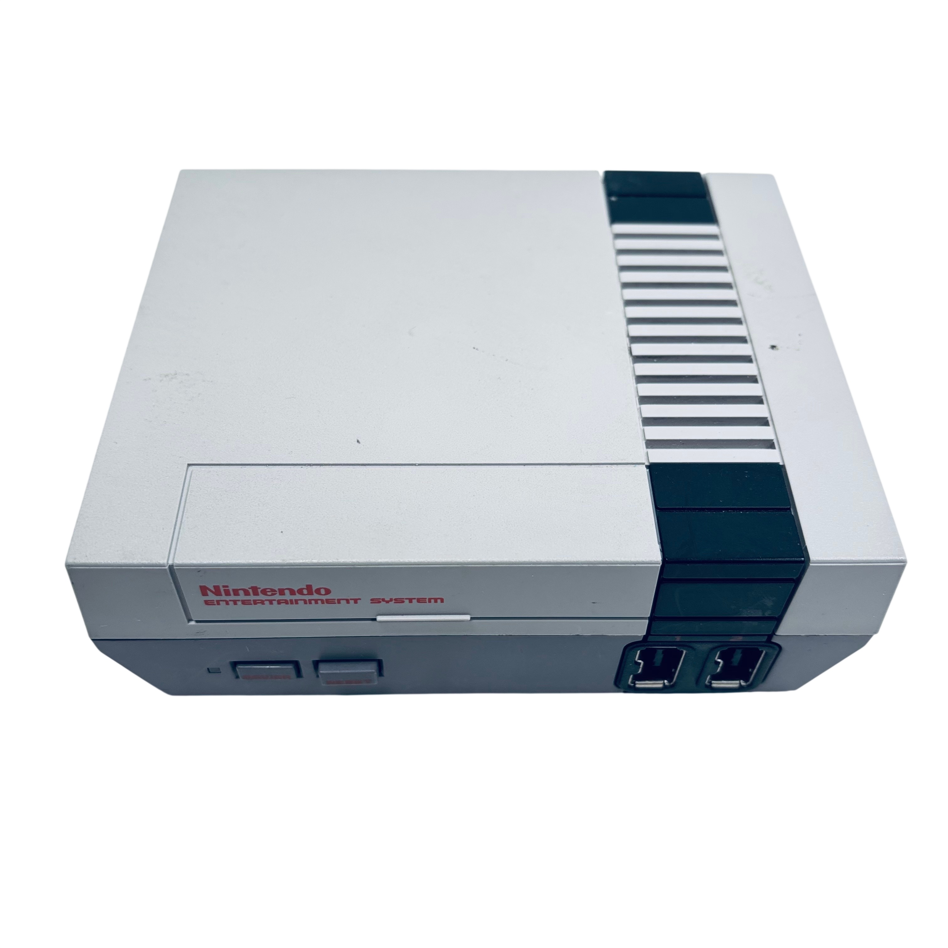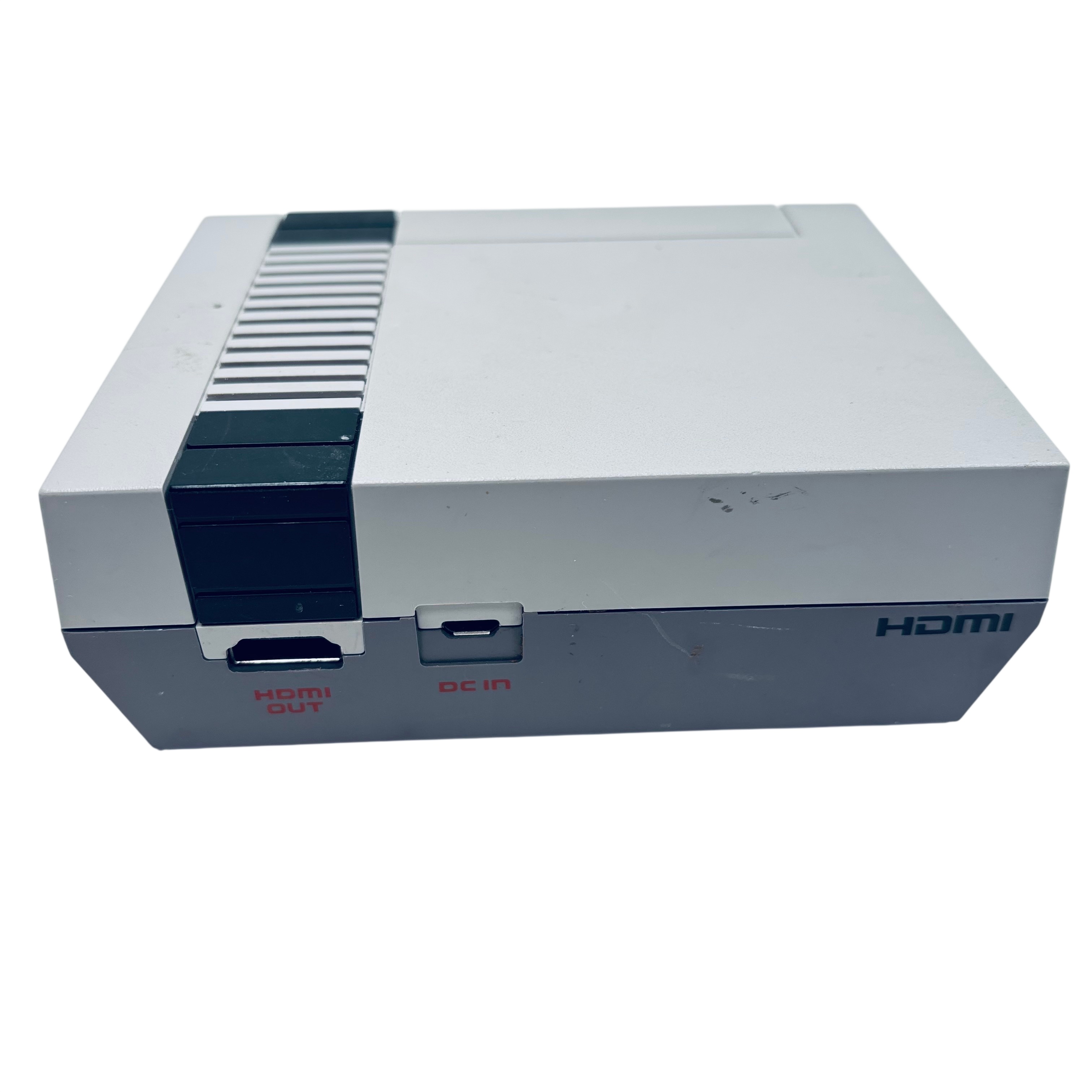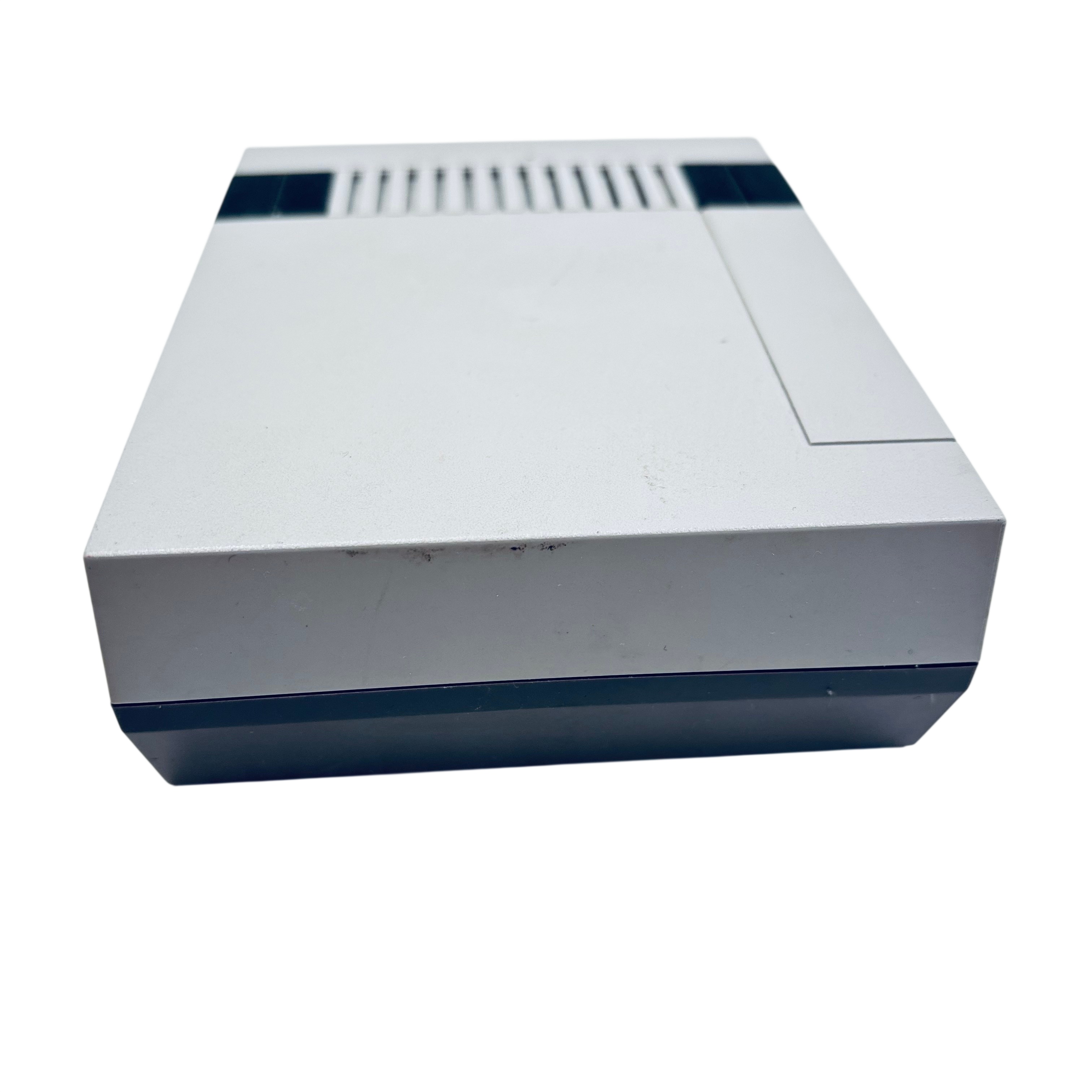 The Nintendo CLV-001 NES Classic is a compact video game console that replicates the original Nintendo Entertainment System experience. This model includes two wired controllers and is powered by a 5V USB AC adapter, making it easy to connect and use with modern TVs. Its classic gray and black design offers nostalgic appeal, while the lightweight and small form factor ensure convenient placement in any entertainment setup. Ideal for fans of retro gaming, this console delivers classic gameplay with modern convenience.