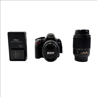 The Nikon D3200 DSLR Camera is a versatile and high-resolution digital camera featuring a 24.2-megapixel CMOS DX-format sensor for stunning image quality. This kit includes two lenses — the AF-S DX NIKKOR 18-55mm f/3.5-5.6G for general photography and the AF-S DX NIKKOR 55-200mm f/4-5.6G ED telephoto lens for distant subjects. The camera supports Full HD 1080p video recording and has a 3.0-inch LCD screen for easy framing and playback. Included in the set is the battery charger and a rechargeable lithium-ion battery, making it ready for extended shooting sessions. Ideal for photography enthusiasts seeking a lightweight and capable DSLR system.