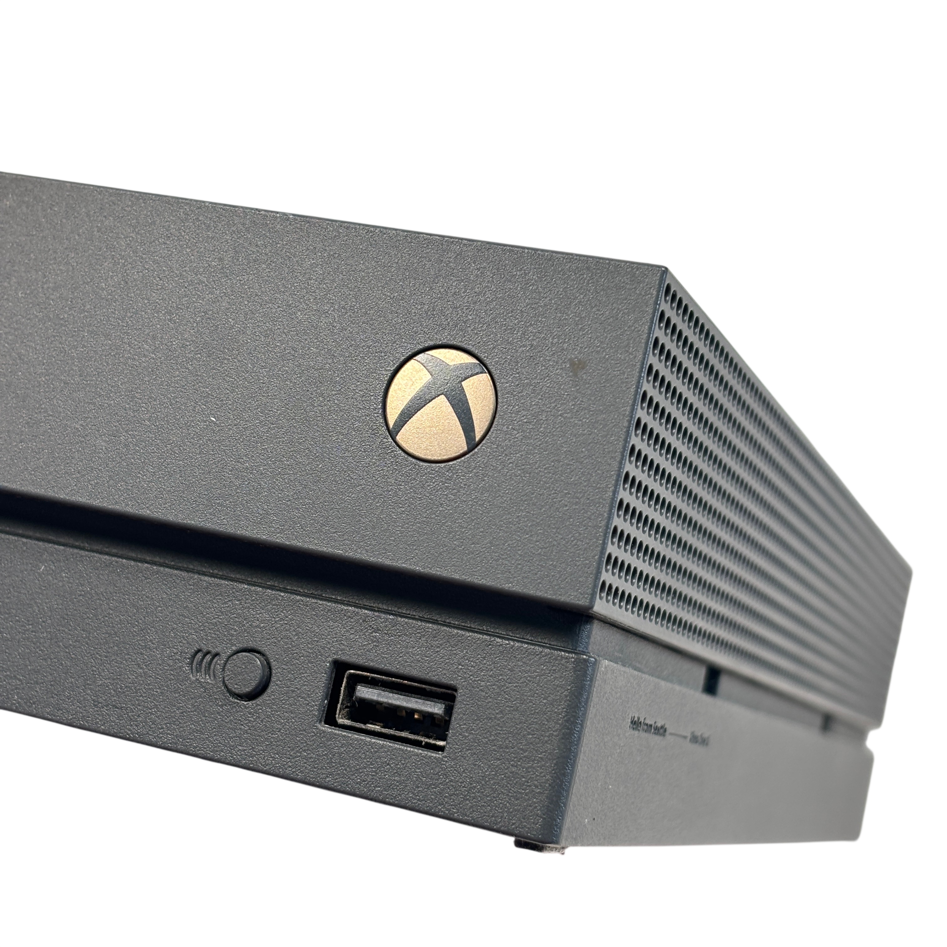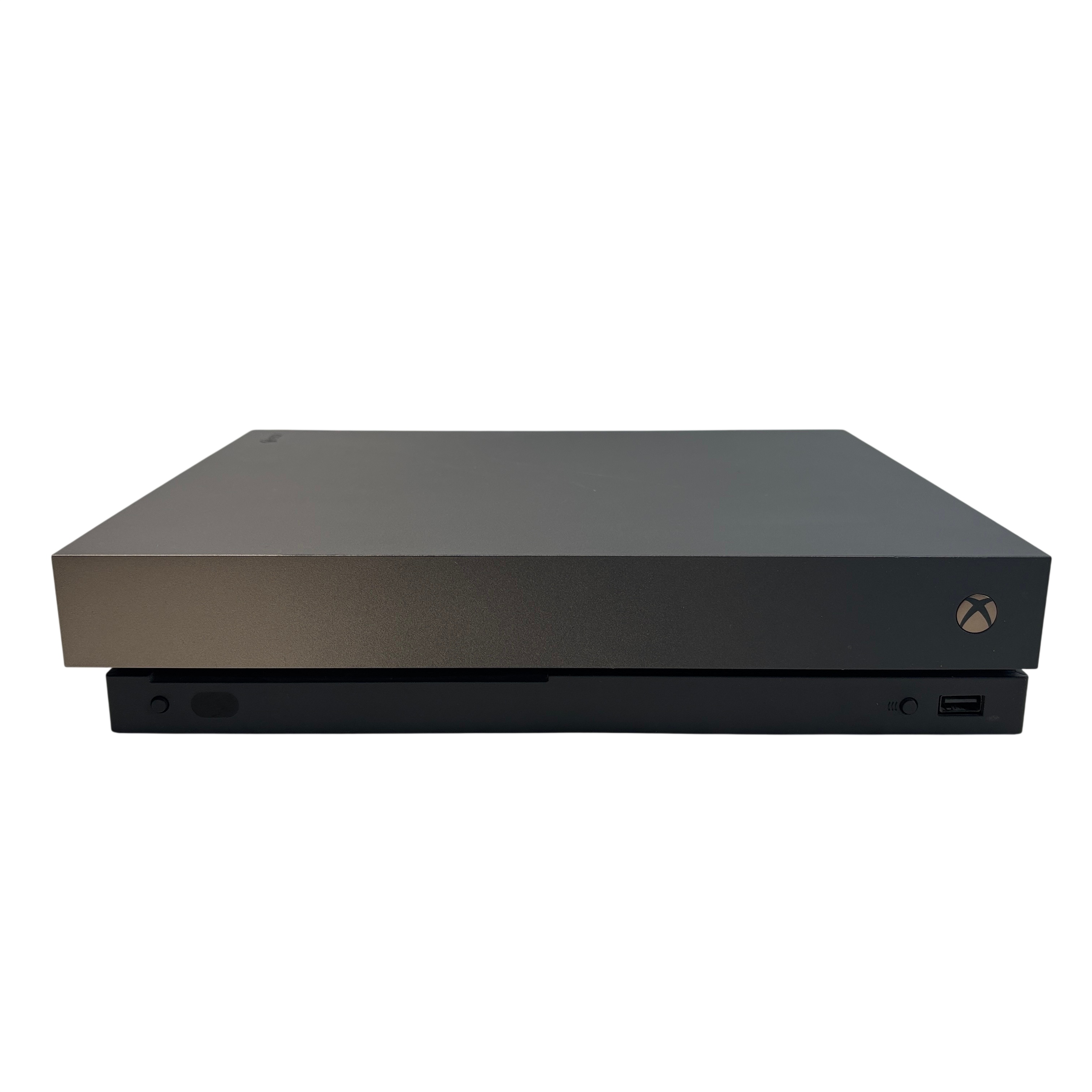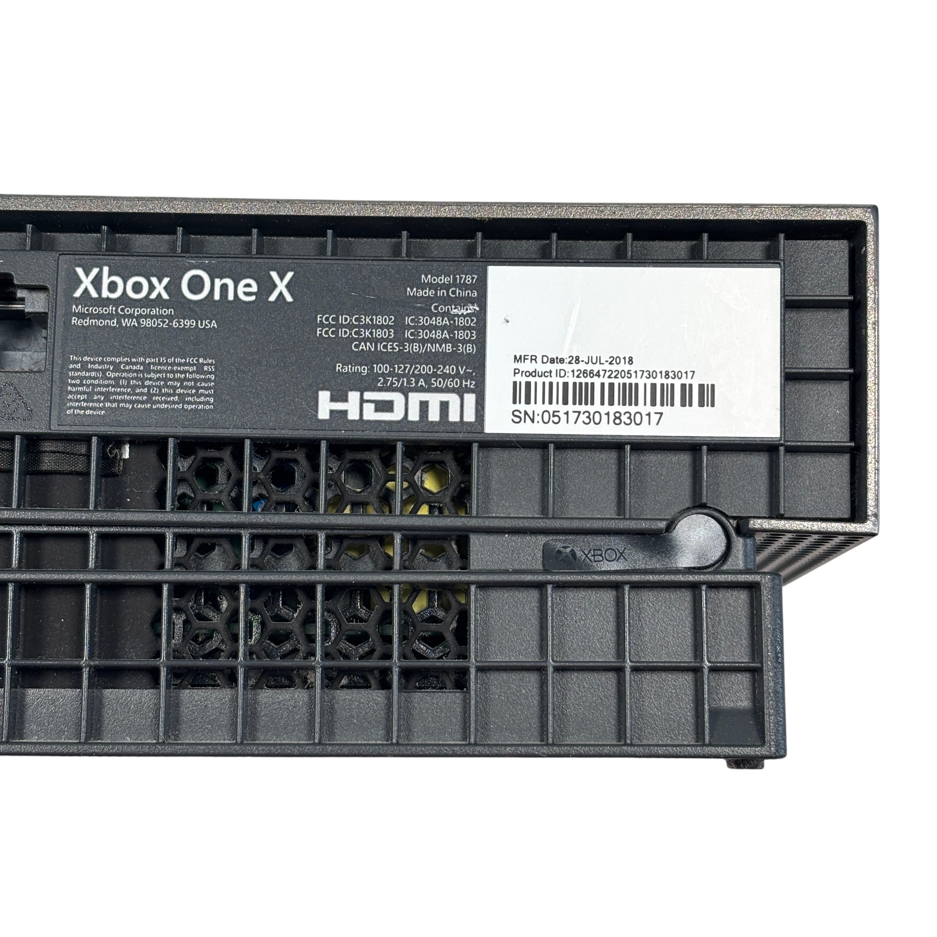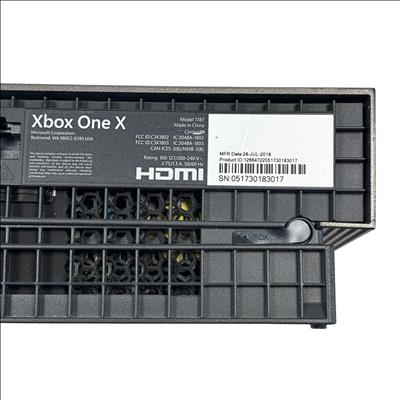 The Microsoft Xbox One X 1787 is a sleek gray and gold video game console designed for immersive gaming and entertainment. Featuring 1 TB of internal storage, this model supports 4K video playback and HDR for enhanced visuals. The console supports HDMI input and output ports, USB 3.0 connectivity, and comes with a power cable but no controller. Ideal for gamers looking to expand their setup or replace an existing console, this Xbox One X offers reliable performance and a compact design.