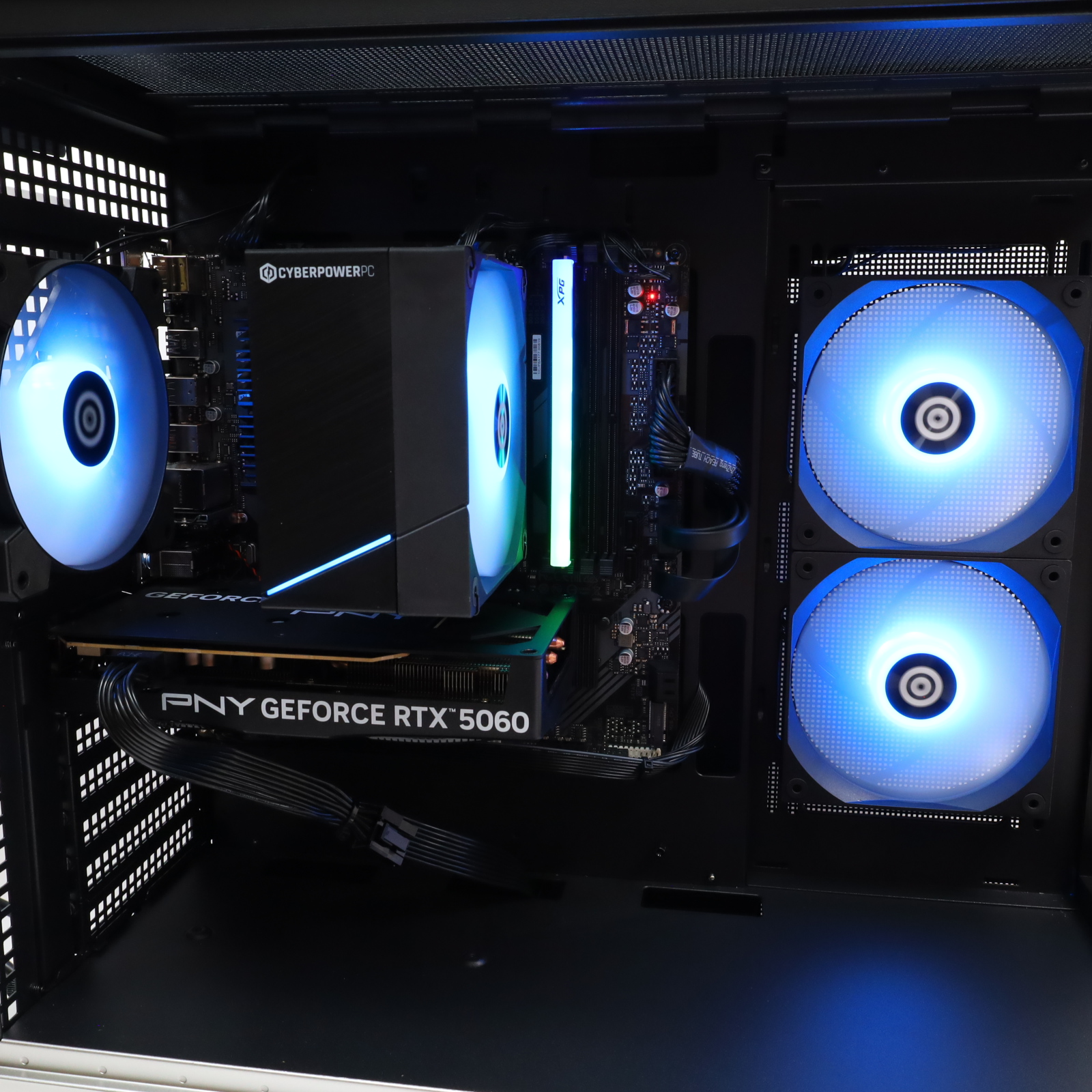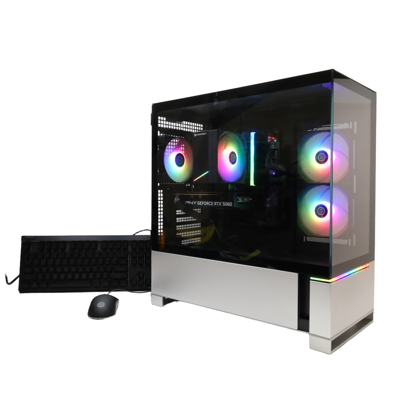 Features an AMD Ryzen 5 8400F six-core processor with a base clock speed of 4.20 GHz. The system is equipped with 16 GB of DDR5 RAM operating at a speed of 6000 MT/s and includes a solid-state drive with a total capacity of 932 GB. Graphics processing is handled by an NVIDIA GeForce RTX 5060 graphics card with 8 GB of dedicated memory and supports wireless connectivity via WiFi 6 and Bluetooth 5.3.