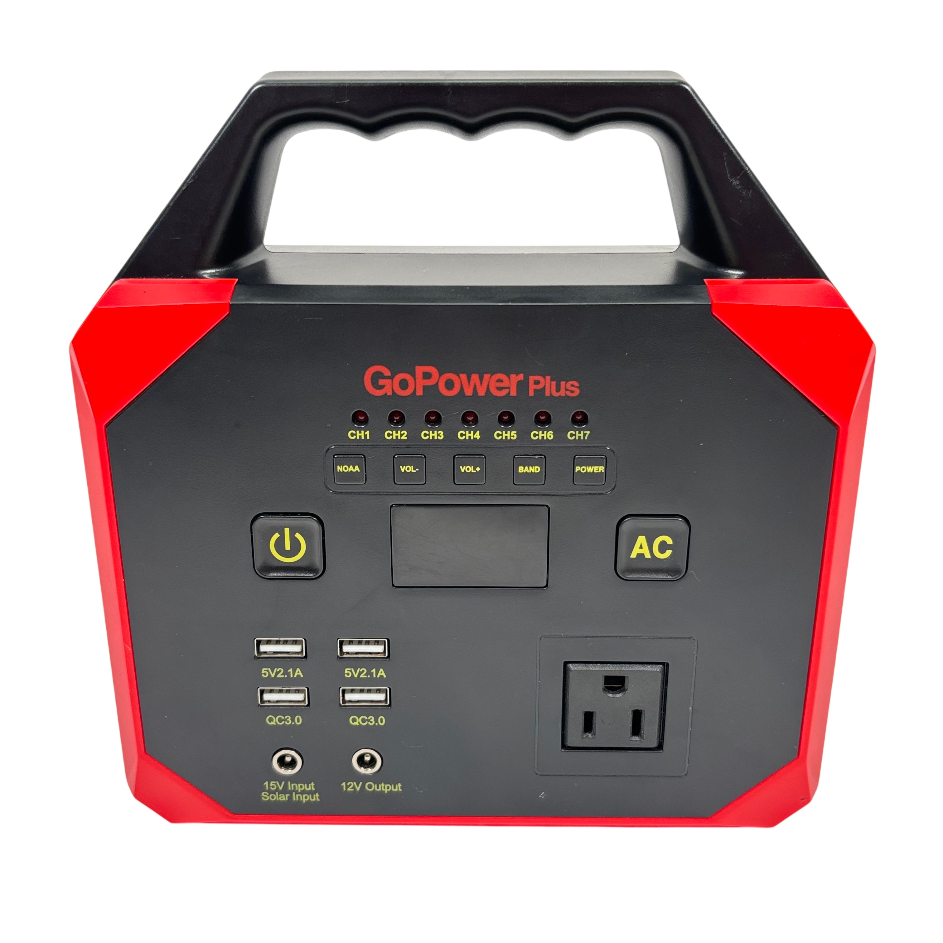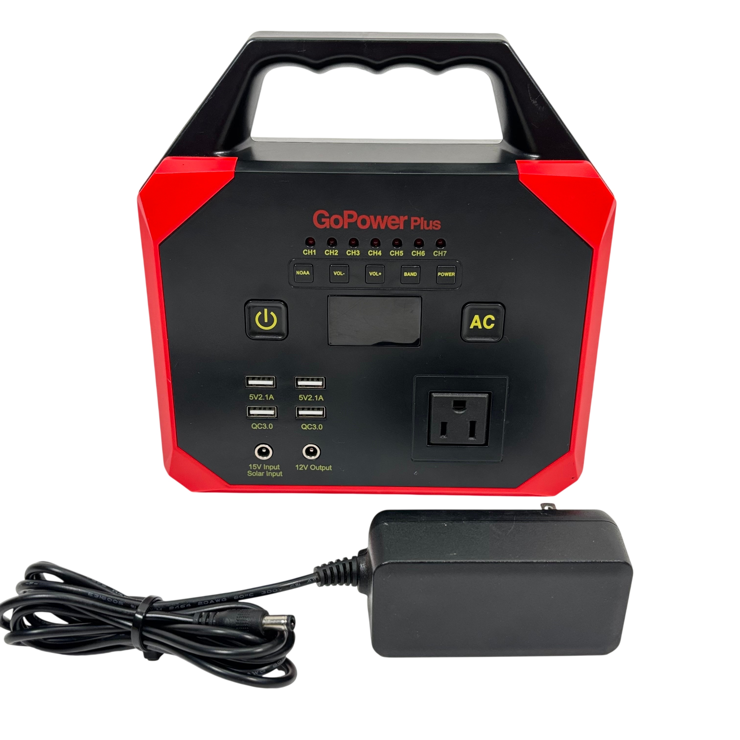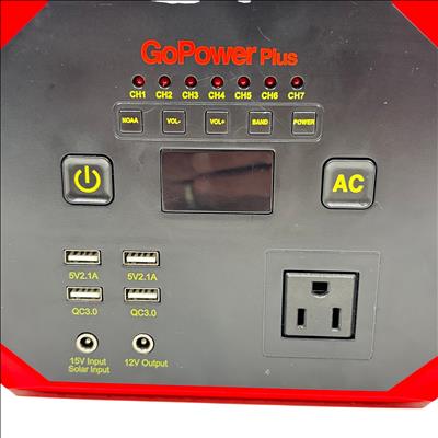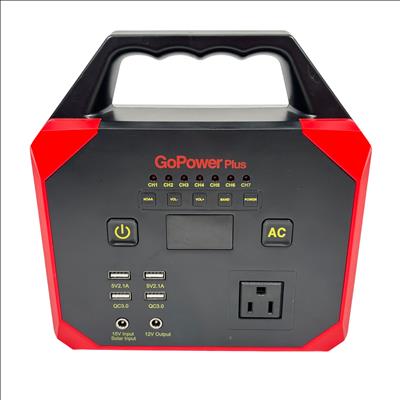The GoPowerPlus Portable Power Station is a compact and versatile power solution featuring a 15000 mAh lithium-ion battery with a total capacity of 167 Wh. It offers multiple USB ports including Quick Charge 3.0, a 100W AC outlet, and a 12V DC output, making it ideal for charging various devices on the go. Compatible with solar input, this portable power station is perfect for outdoor adventures, emergency backup, or remote work. The unit includes a convenient handle for easy transport and comes with a power adapter for charging.