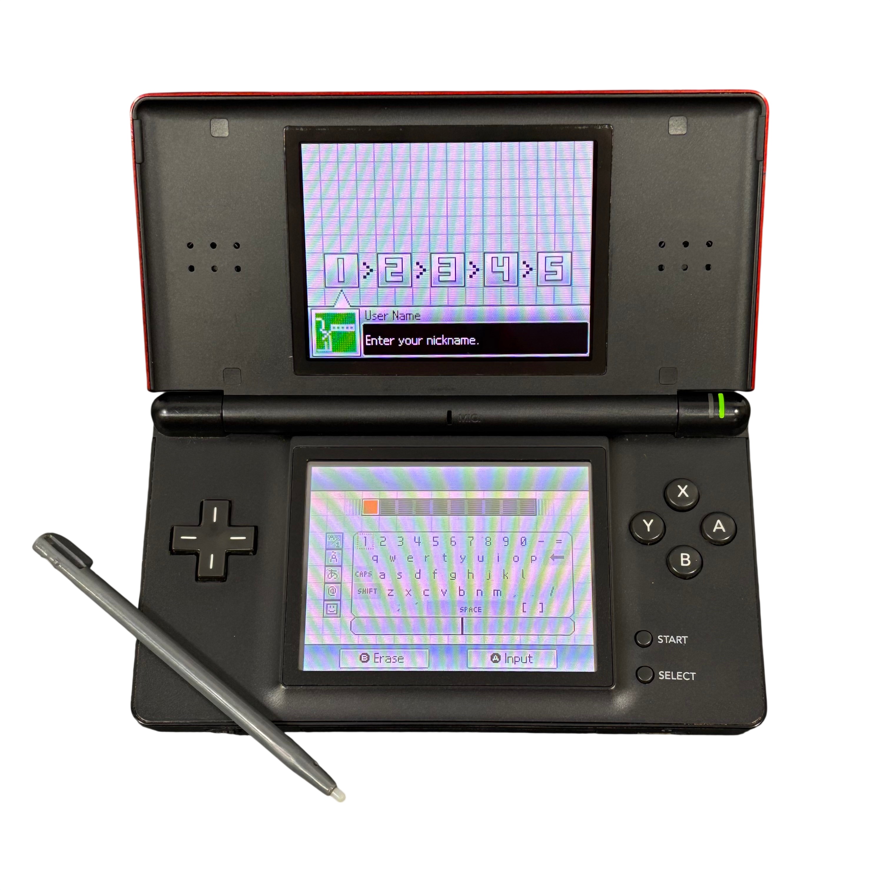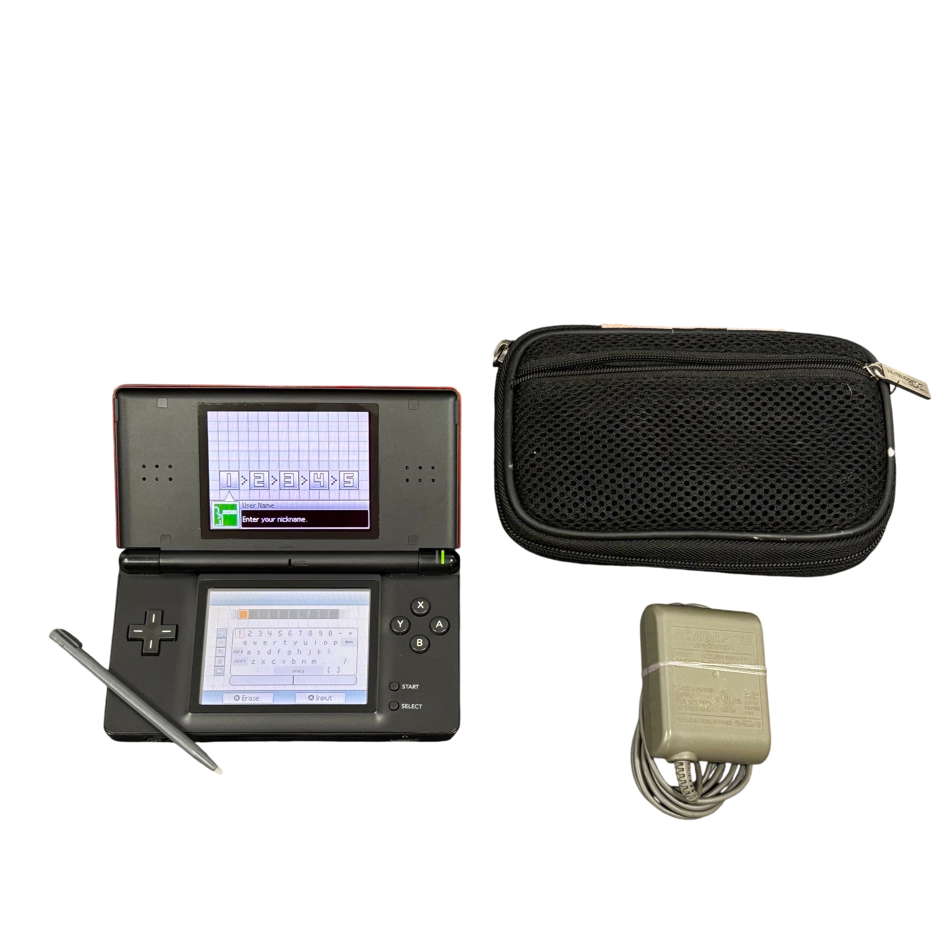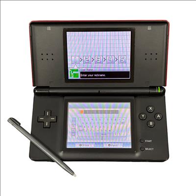 Nintendo DS Lite USG-001 is a dual-screen handheld console featuring bright, colorful LCD displays and responsive touchscreen controls. It plays both DS titles and Game Boy Advance Game Paks, offering a versatile and portable gaming experience.
