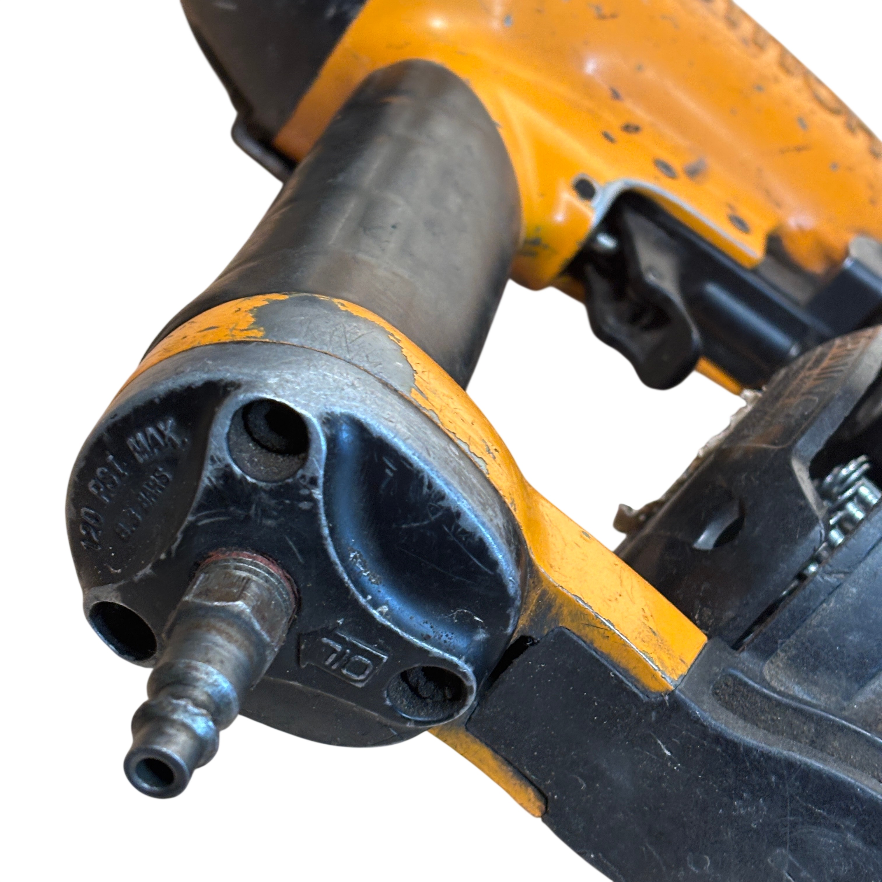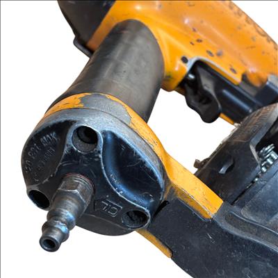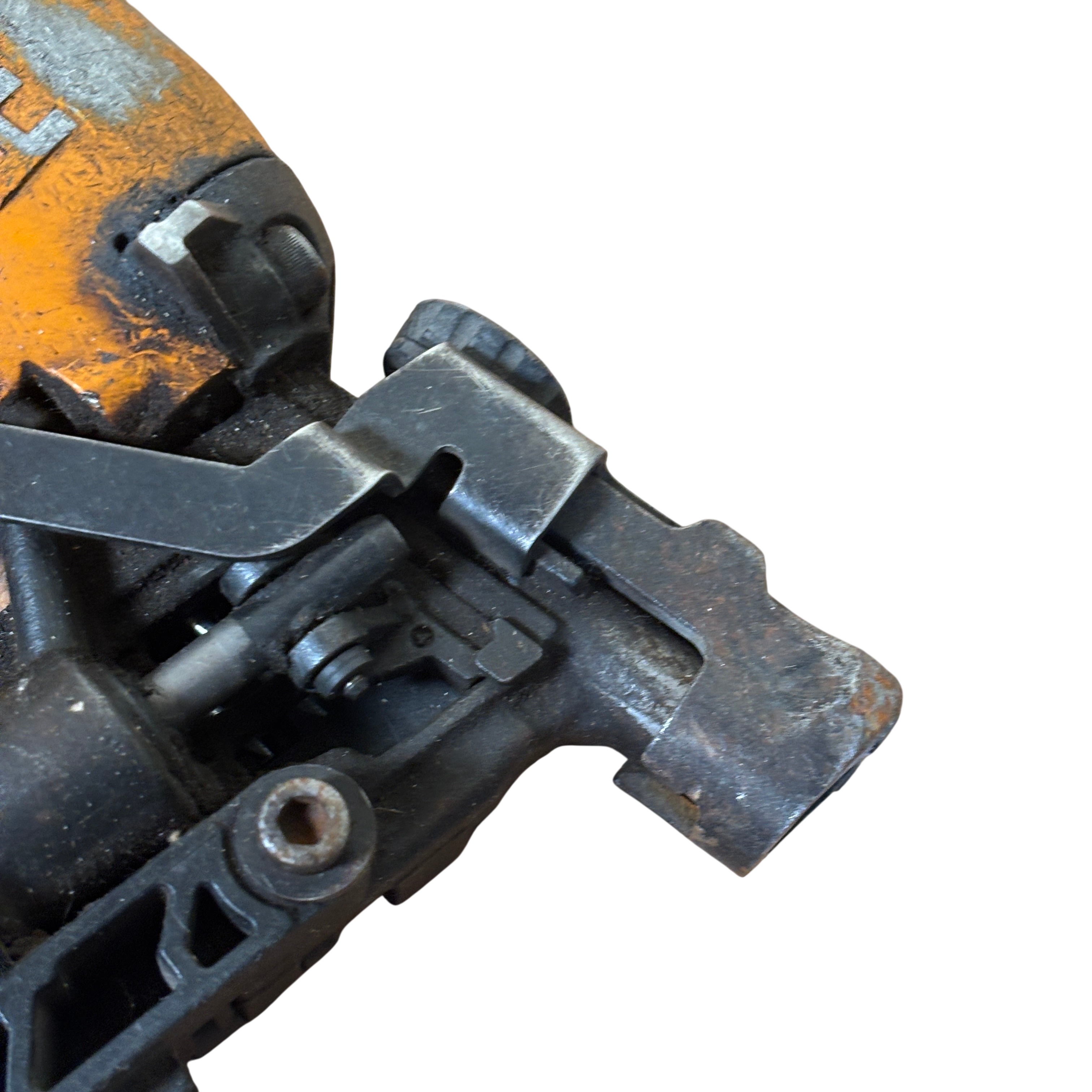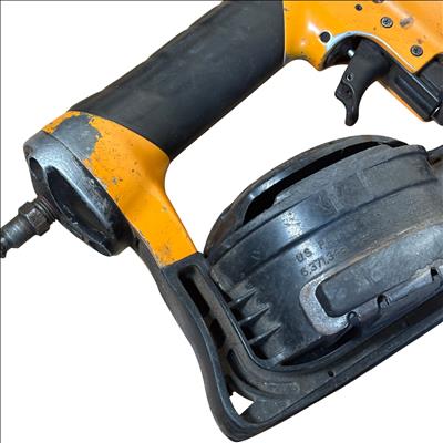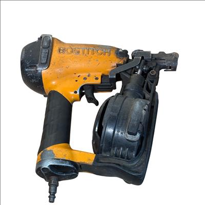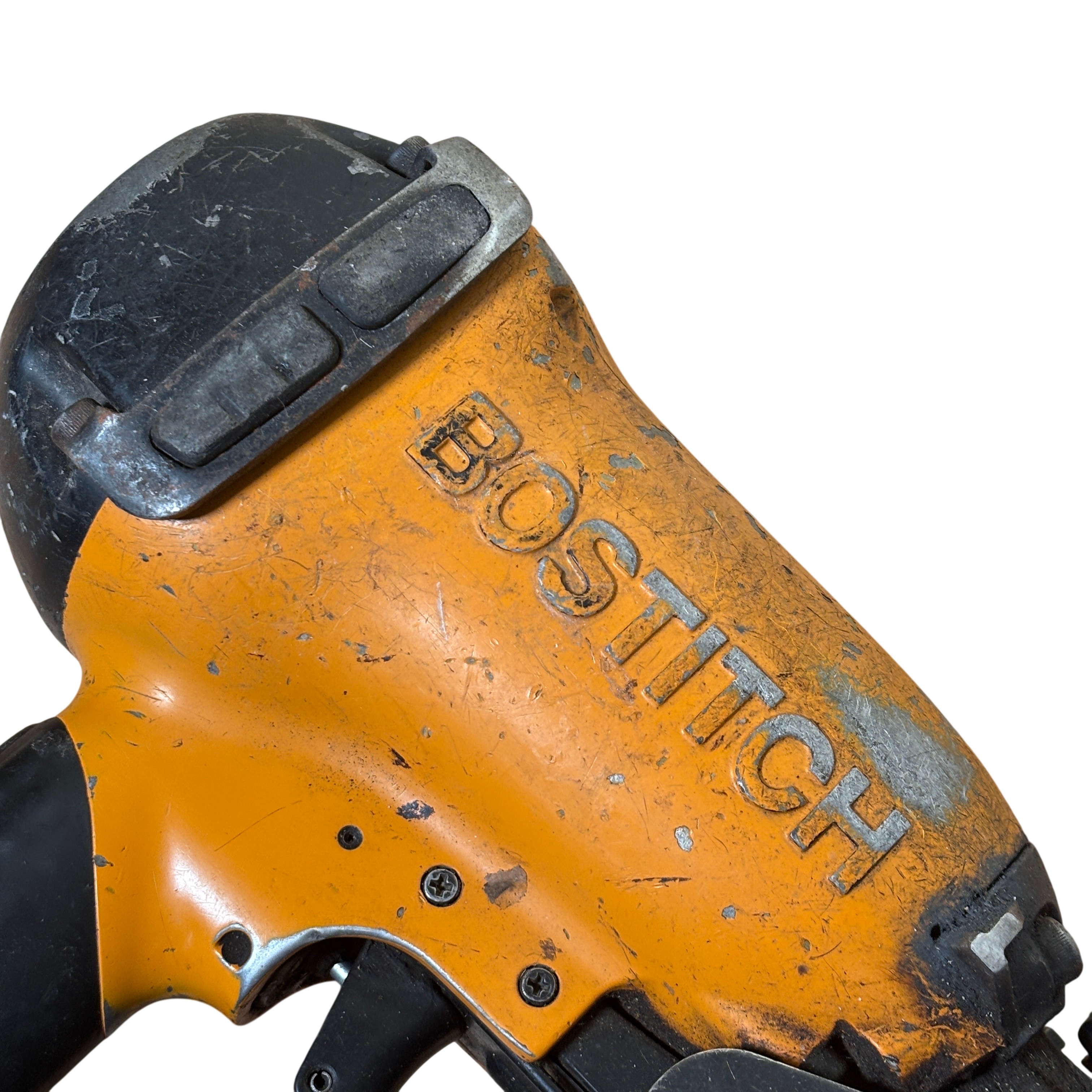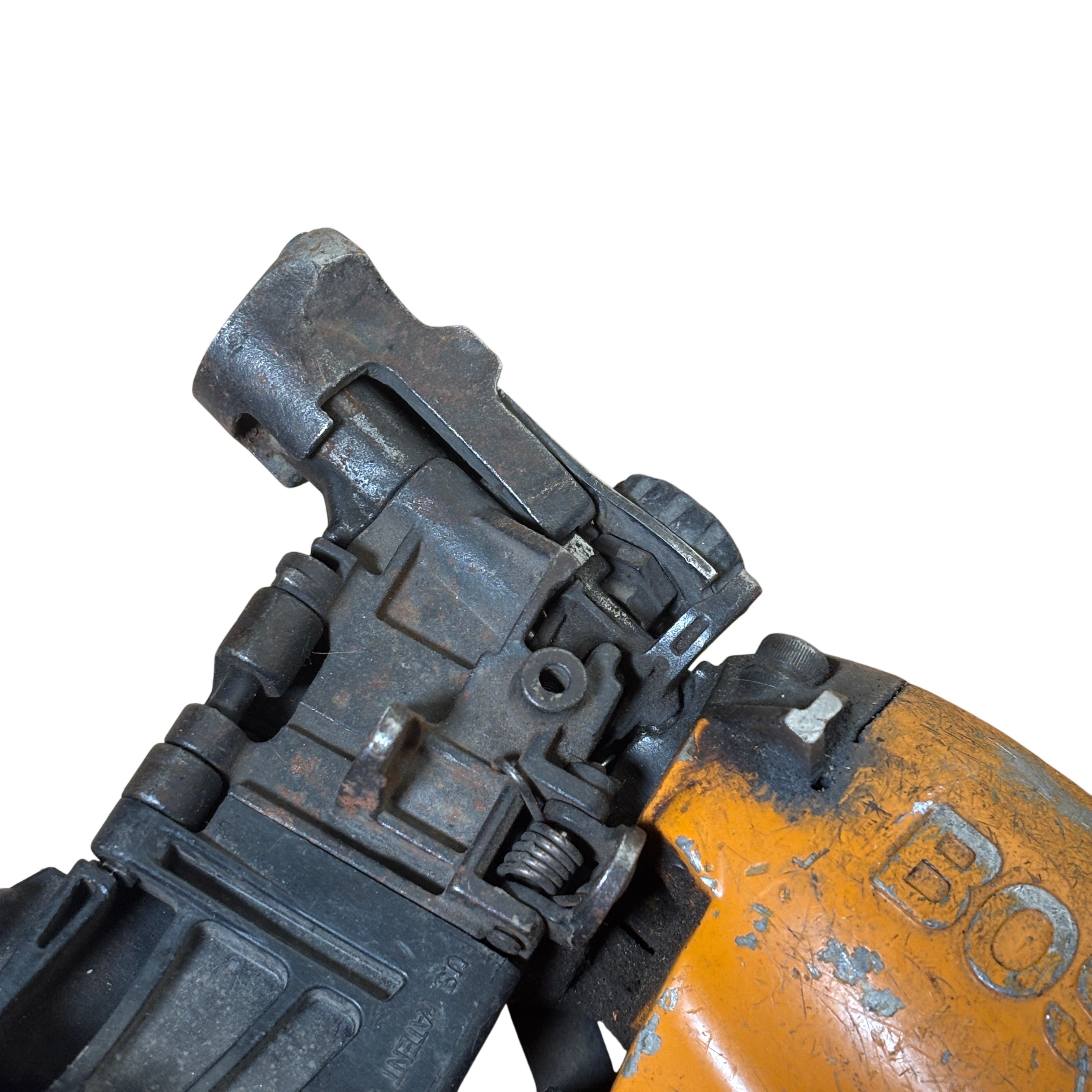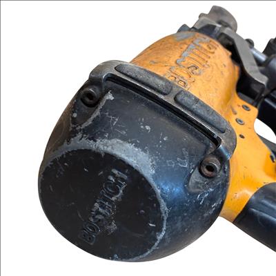 The Bostitch RN461 Coil Roofing Nailer is a pneumatic nail gun designed for efficient and reliable roofing applications. Featuring a coil magazine for roofing nails and a durable metal body with an ergonomic rubber grip, this tool delivers consistent performance powered by an air compressor. Its robust construction and user-friendly design make it ideal for professional roofers and contractors seeking a dependable nailer for heavy-duty use.
