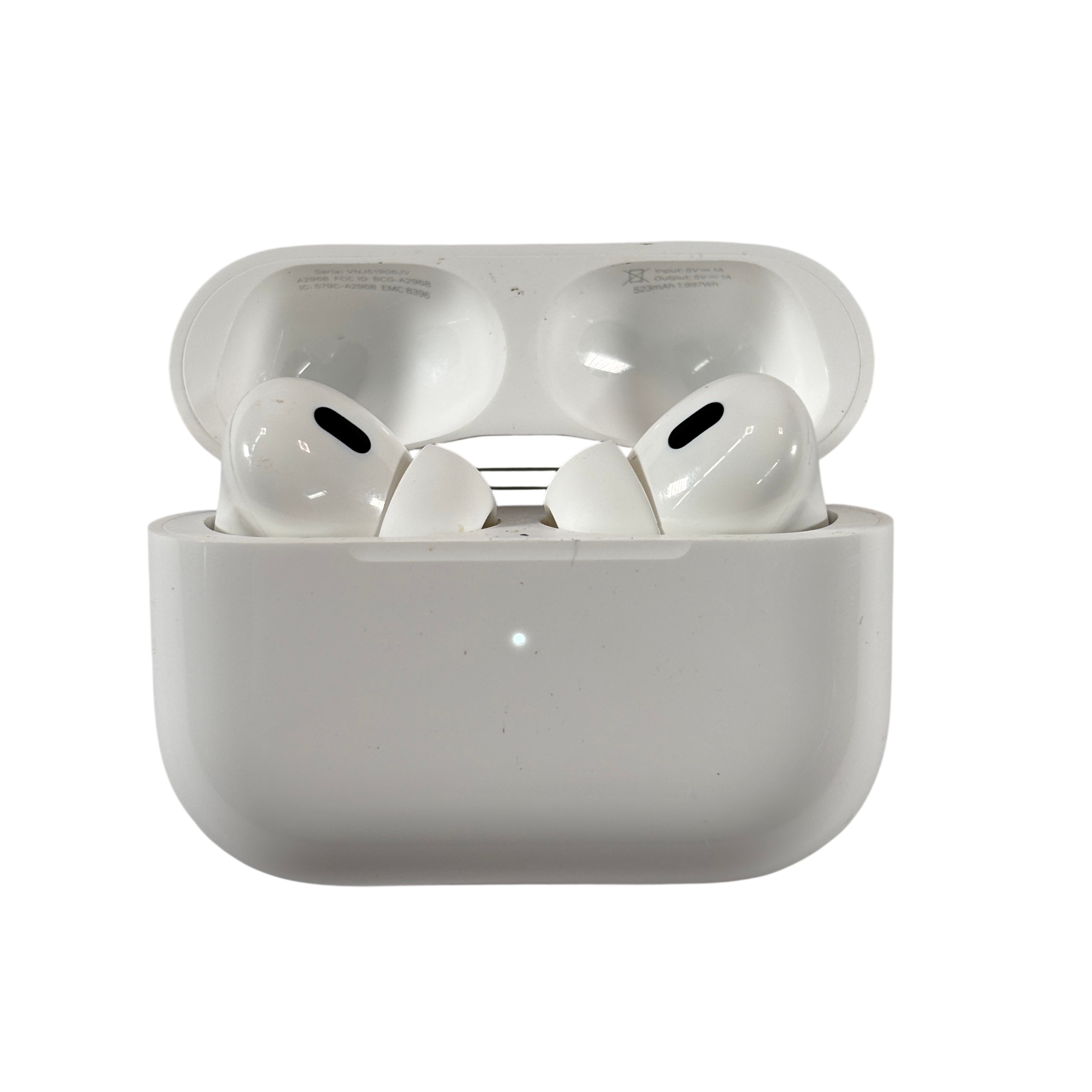 The Apple AirPods Pro 2nd Gen A3048 USB-C earbuds deliver an immersive audio experience powered by the advanced H2 chip, producing crisp highs and rich bass with stunning clarity. They feature next-level active noise cancellation with up to twice the effectiveness, along with a transparency mode for staying aware of your surroundings. Adaptive Audio blends noise cancellation and transparency for a seamless listening experience in any environment.