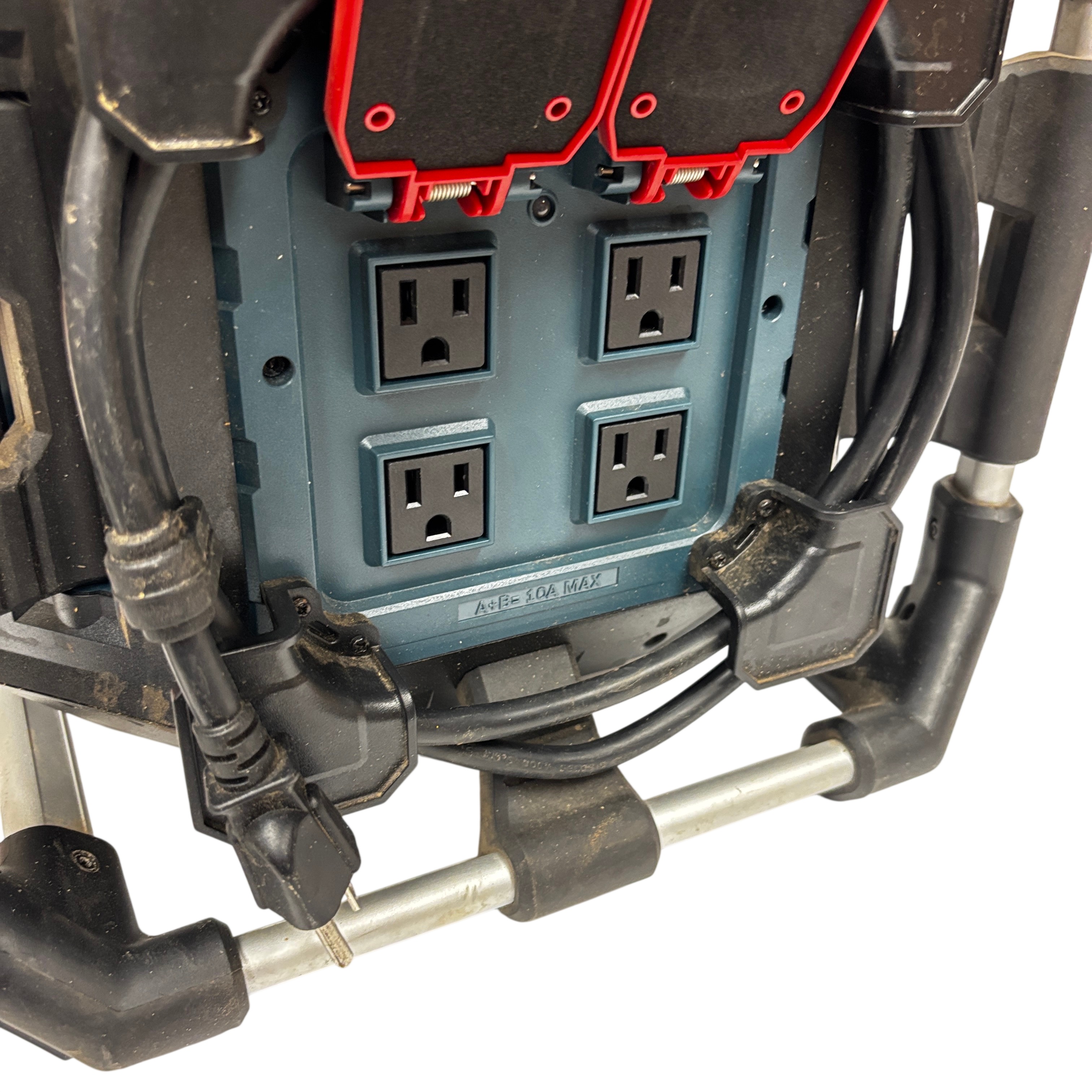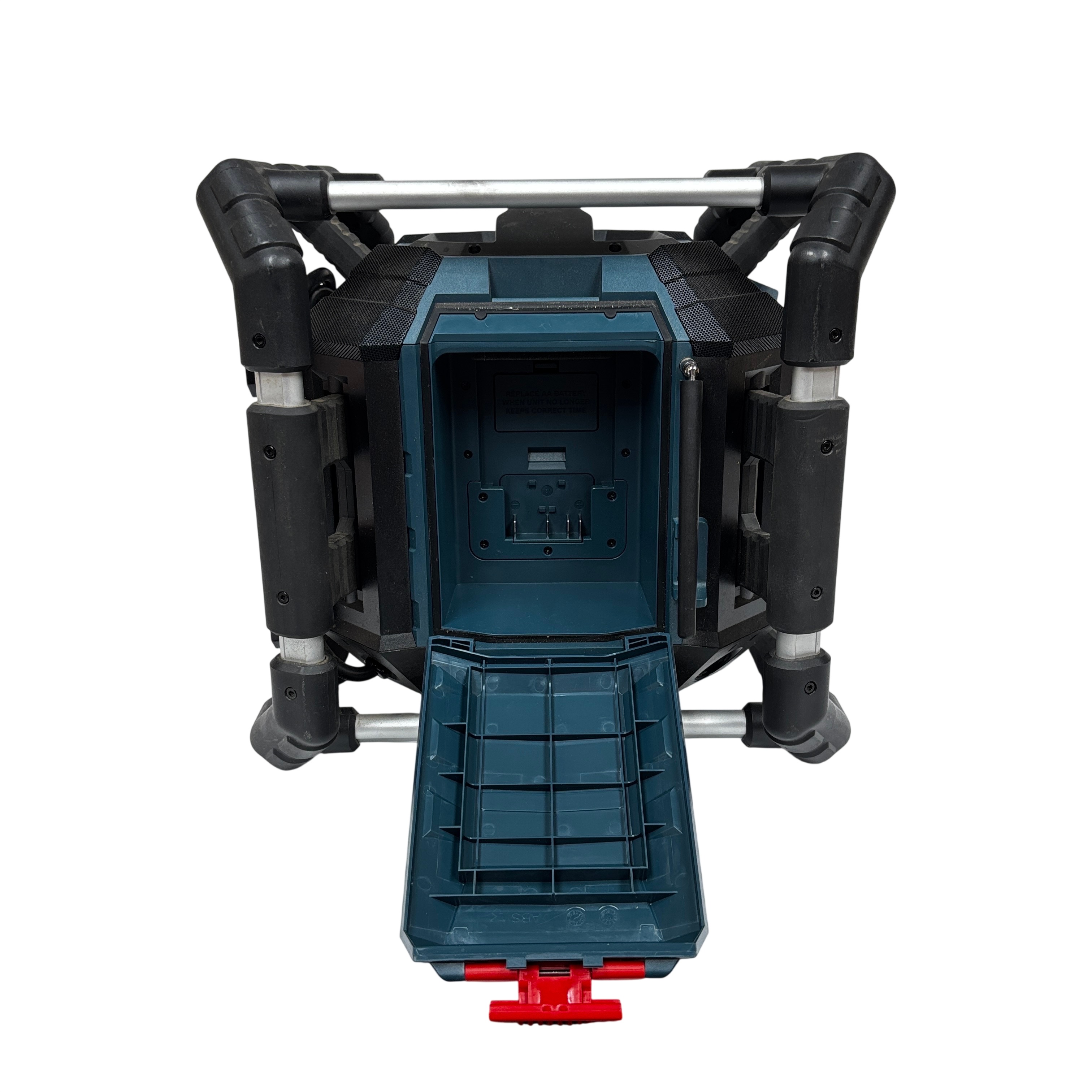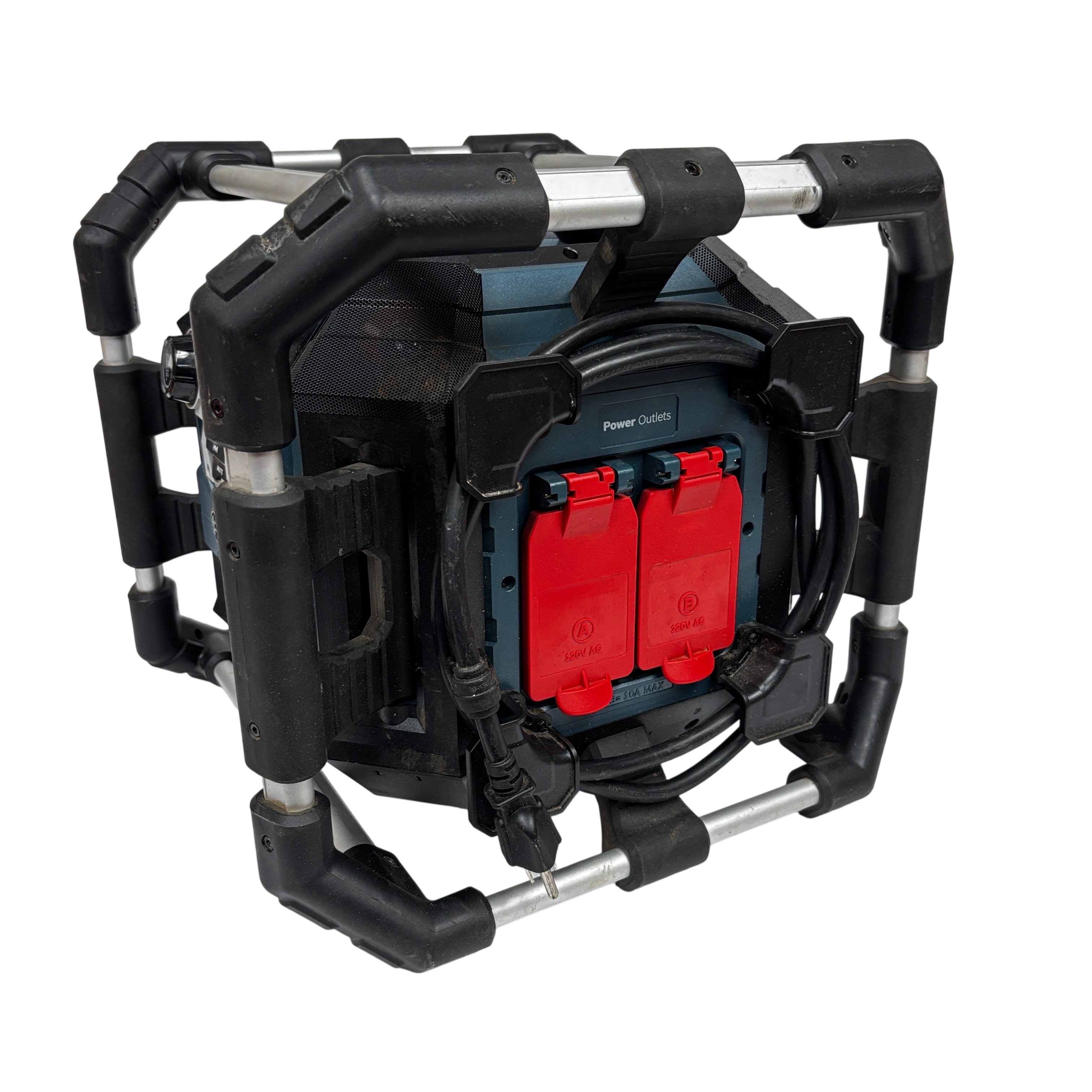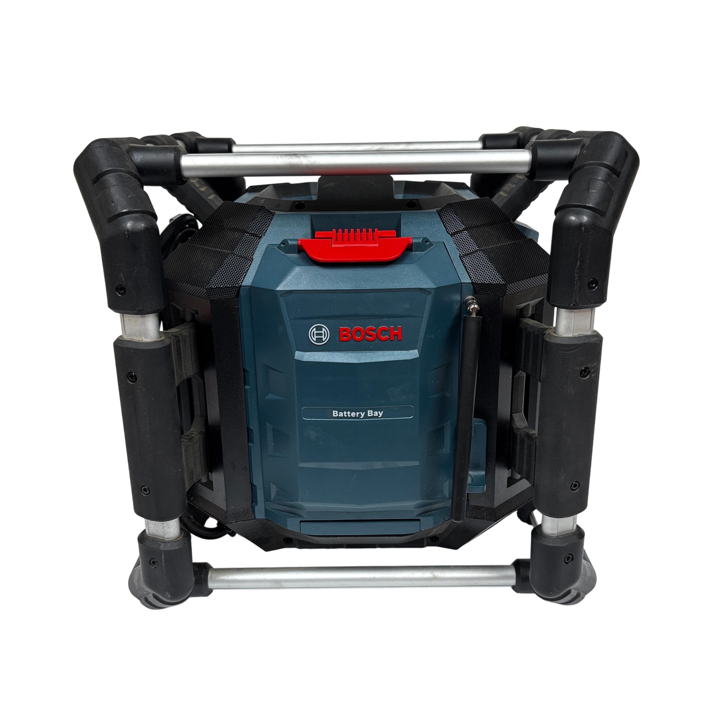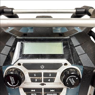 The Bosch GPB18V-5C Jobsite Radio delivers powerful, clear audio with its built-in subwoofer and digital AM/FM tuner covering 87.5 - 107.9 MHz FM and 530 - 1710 kHz AM frequencies. Designed for tough jobsite environments, this radio features a rugged protective frame and offers Bluetooth connectivity for wireless streaming. Powered by 120 VAC with a USB output of 5V/2.1A, it also includes AC outlets for added convenience.