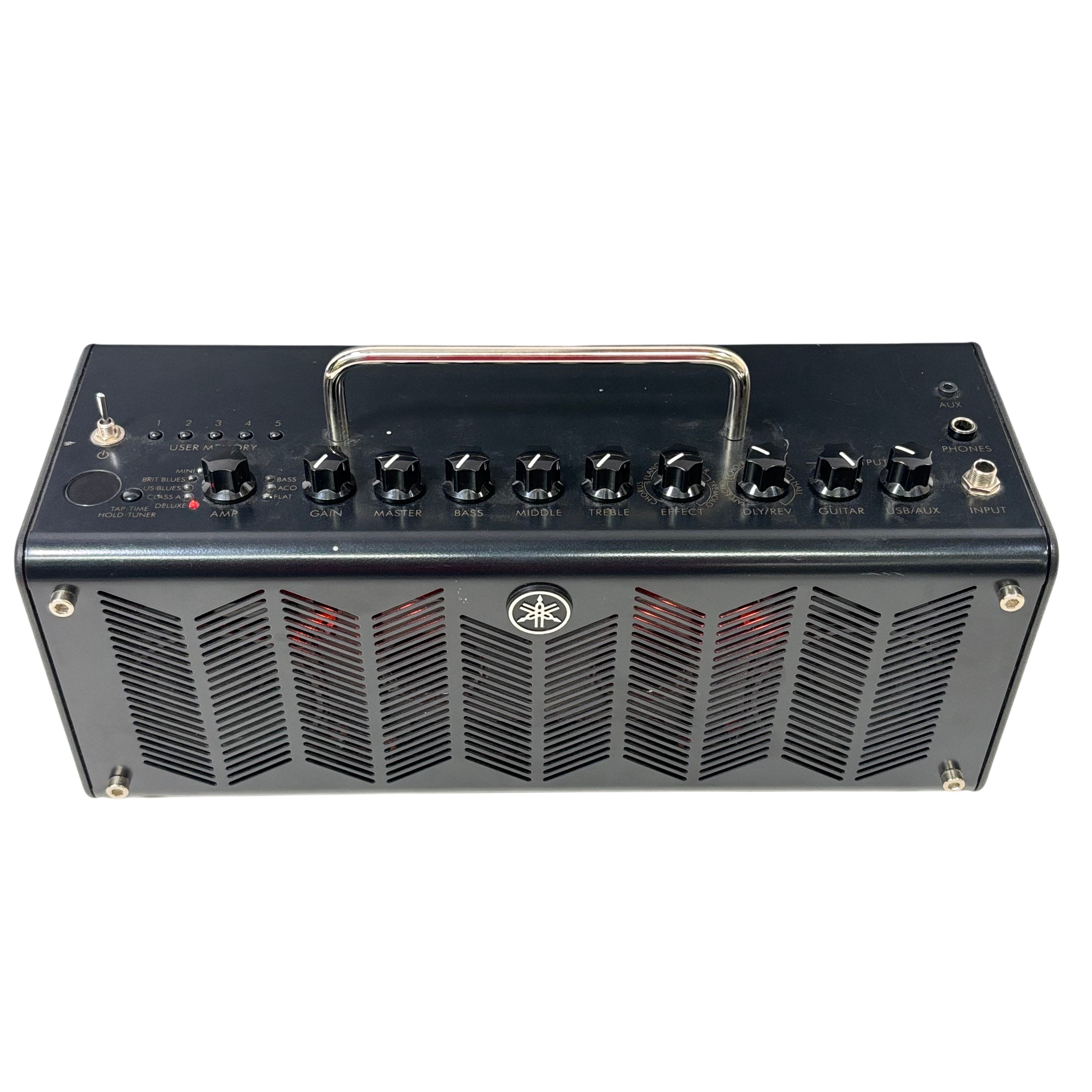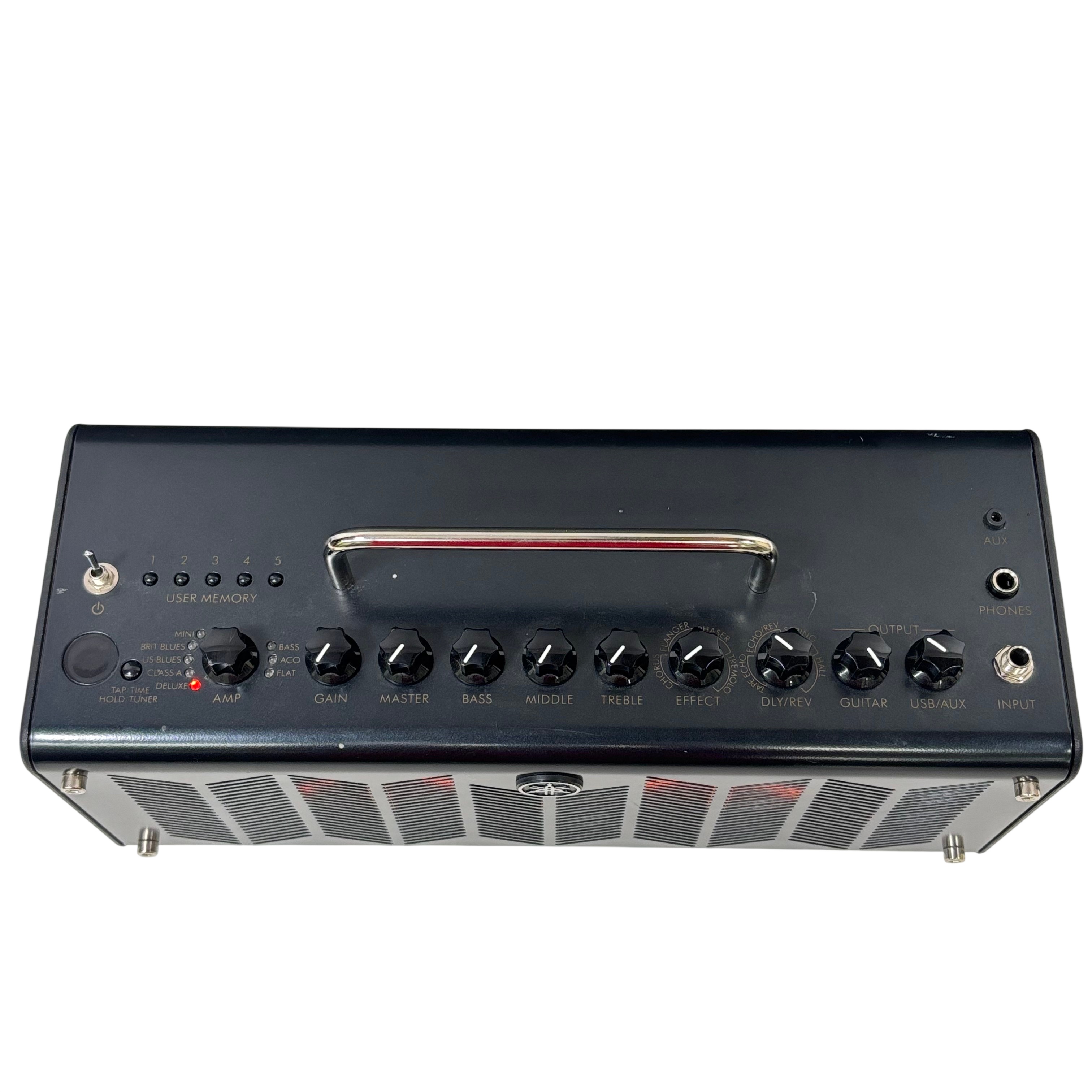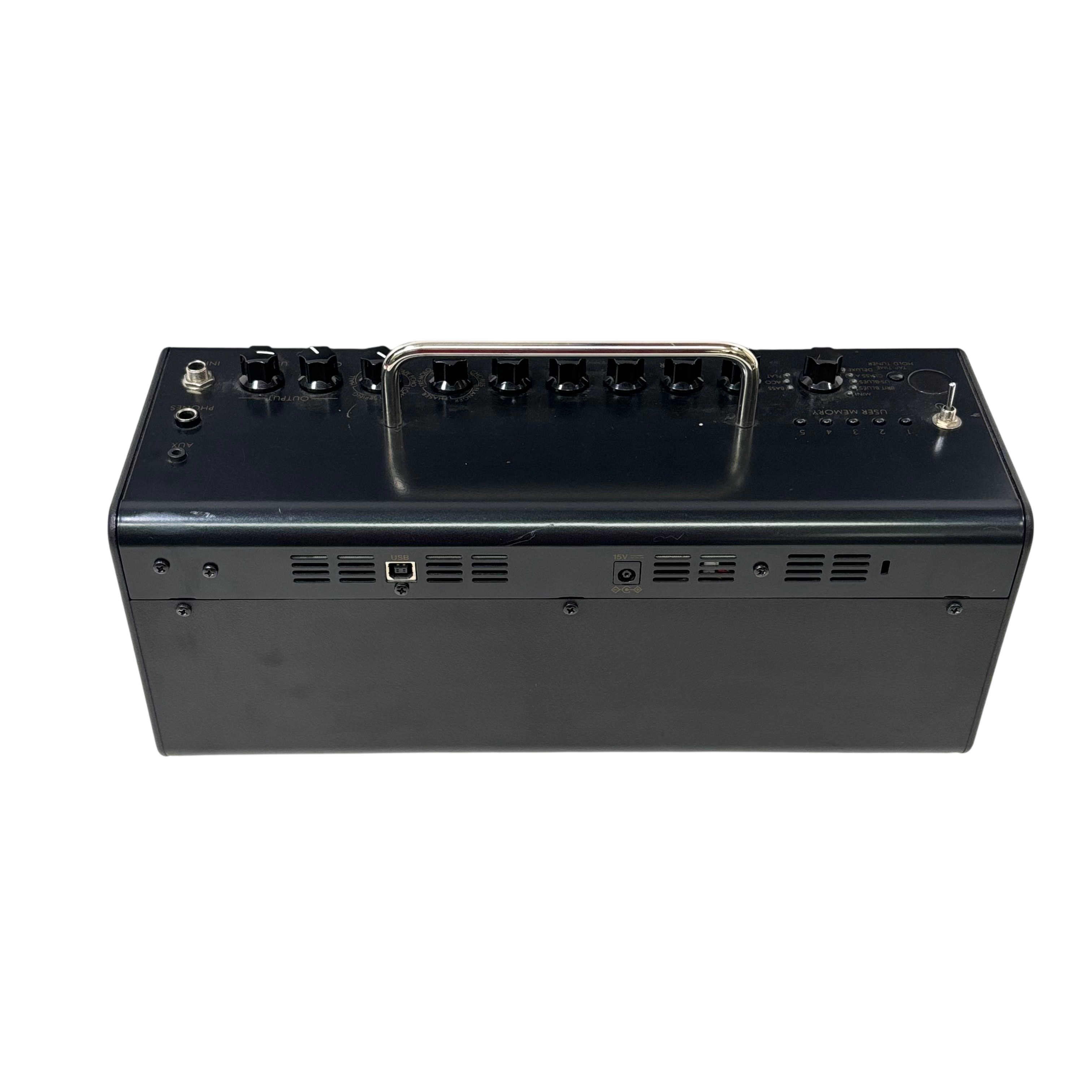 Powered by a 15V AC adapter or 8 AA batteries, this compact amp features multiple tone controls including gain, bass, middle, treble, and effects such as delay and reverb. It also includes USB and AUX inputs for audio playback and a headphone output for silent practice. With user memory presets and a built-in tuner, the THR10C is ideal for guitarists seeking portability and a wide range of tonal options in a sleek, black metal chassis.